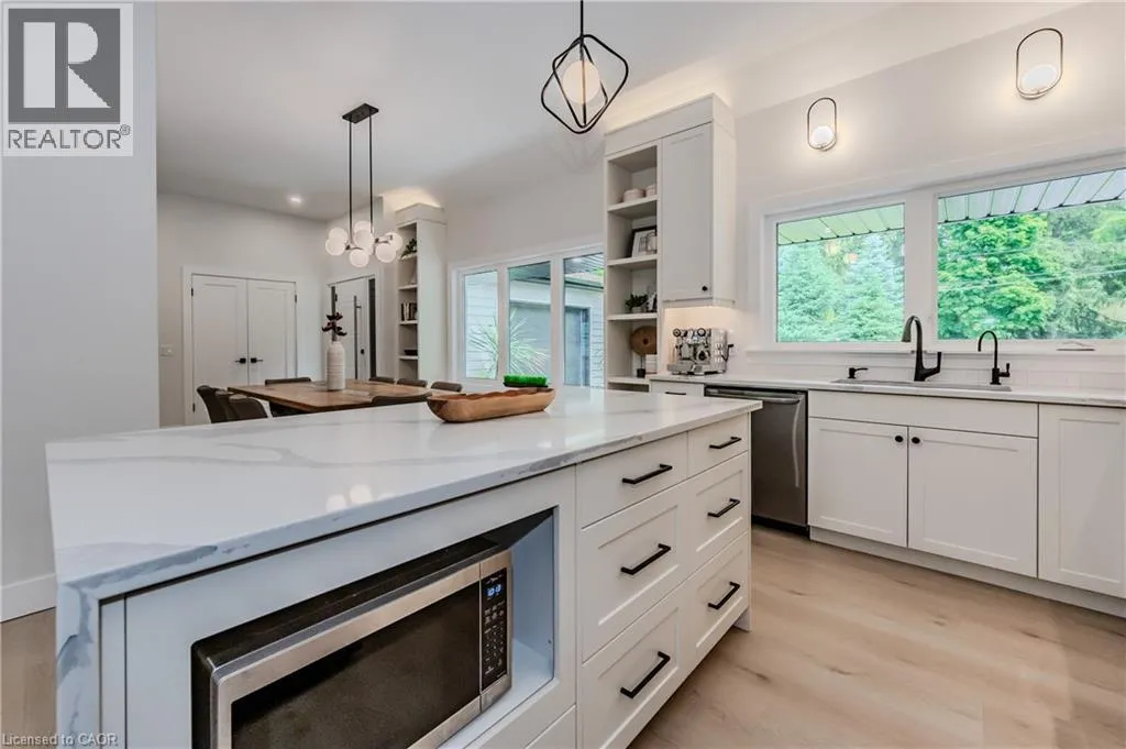 King Street or Allendale Road Rare opportunity to own the perfect multi generational family home on a 1.3acres lot! Country living in the heart of the city! Less than a year old custom addition to the existing home gives you not only an amazing in law suite but all the space you need for the extended family with now over 6100sqft of total finished space, 9 spacious bedrooms and 8 modern bathrooms. The original home was fully renovated to the bones giving you the peace of mind as well as all the quality modern finishes. Breathtaking finishes throughout the full house such as two custom kitchens made for a chef, both with quartz countertops, new appliances and custom shelving. Floor to ceiling windows give the space plenty of natural light. Two main floor laundry rooms were added for your convenience. The bathrooms are exquisite with ceramic tiles, quartz countertops and beautiful pluming fixtures. For your comfort and privacy this home offers 3 primary bedrooms with ensuite and walk-in closets. If extra space is needed there are two separate walk-out basements with rec-rooms, bedrooms and a bathroom each. The private treed lot with a creek in the back and two large covered decks offer you all the space for outdoor entertainment. Brand new well and septic system as well. Location is incredible, with everything so close by, highways, shopping, transport, trails, the Grand river, the hospital and so much more. With so much space and so many features this unique home needs to be seen in order to appreciate its full value! Book a showing now! (id:27476)