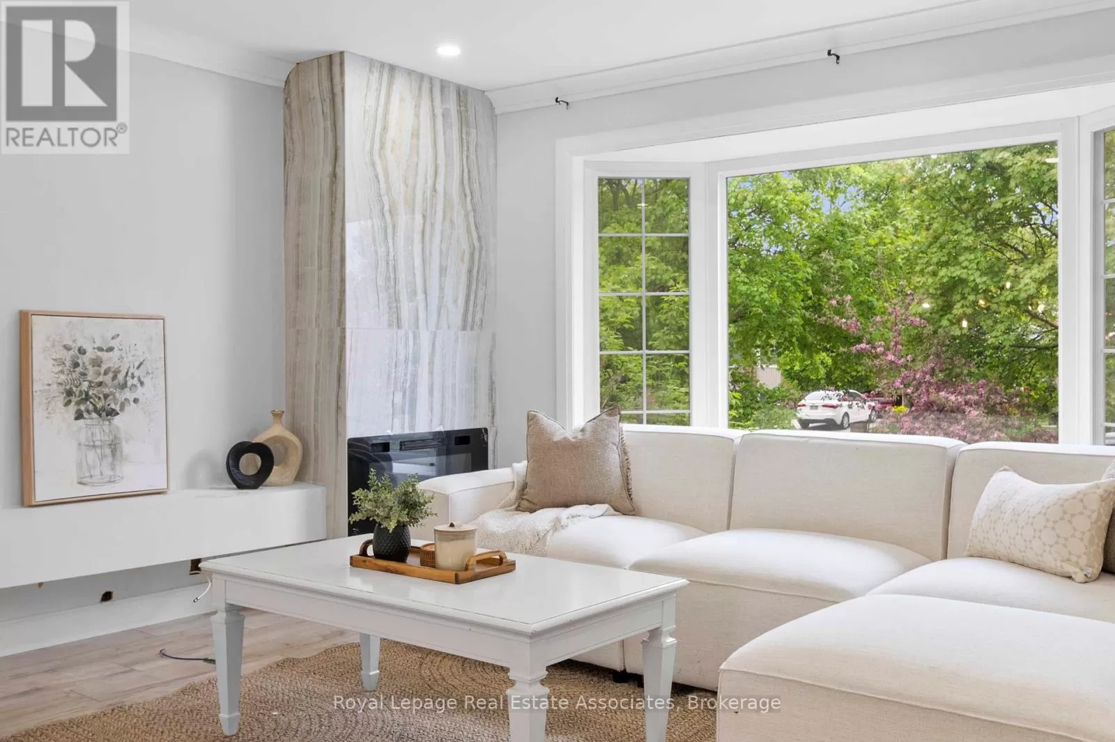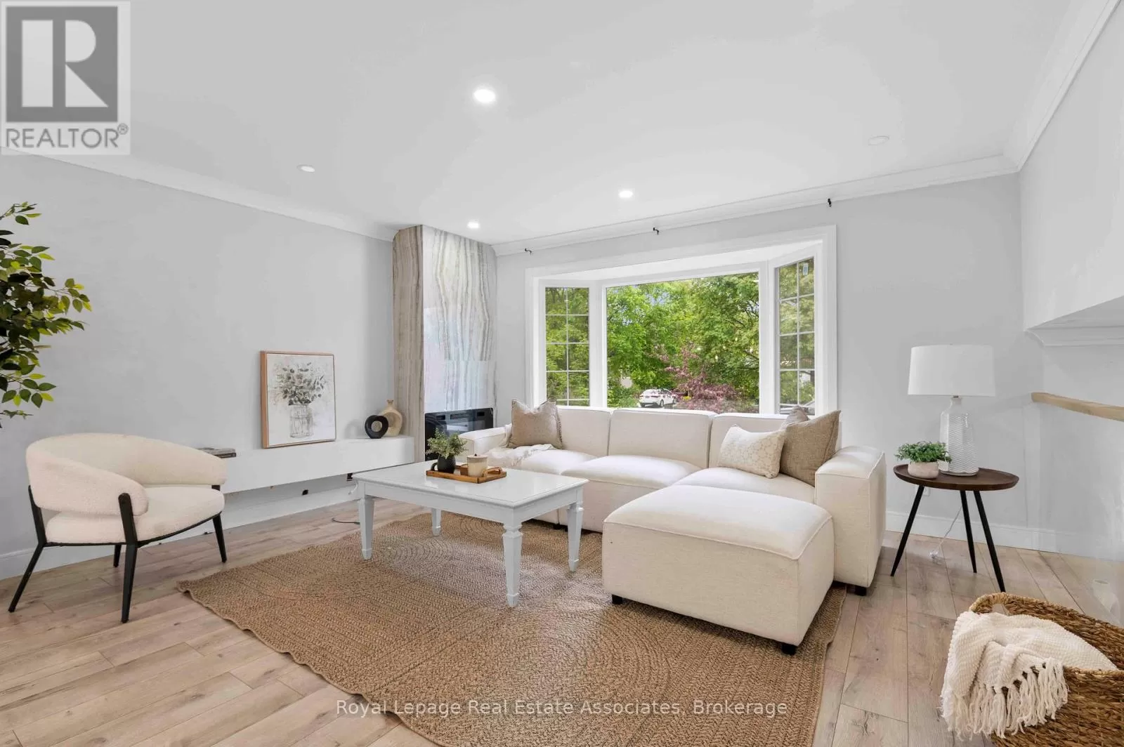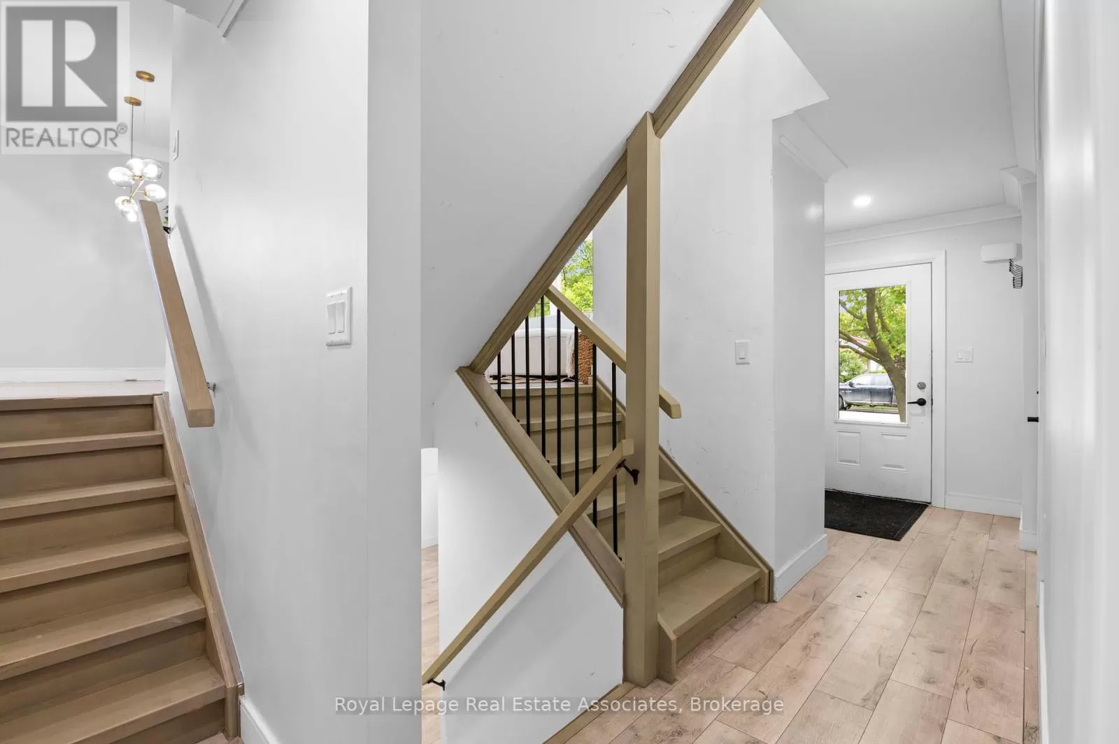 Industrial Rd / Dunbar Rd Welcome to 1236 Avonlea Road, a stunning, carpet-free 4-bedroom, 3-bath home in one of Cambridge's most sought-after areas! This bright and modern home features high-end laminate flooring throughout, an open-concept design, and an abundance of natural light from large windows. The custom kitchen is the heart of the home, showcasing stainless steel appliances, quartz countertops, and a trendy backsplash. The bathrooms offer sleek floating vanities and contemporary finishes, adding a touch of luxury throughout. Elegant crown moulding, upgraded trim, and loads of pot lights create a warm and sophisticated atmosphere. The living room features an electric fireplace with a custom floor-to-ceiling surround, a true focal point for relaxing and entertaining. A fully finished basement with a 3-piece bath adds even more functional living space. Step outside to a fully fenced backyard with mature trees and a garden shed perfect for outdoor enjoyment. Ideally located close to Hwy 401, shopping, schools, parks, and all amenities, this home offers the perfect blend of style, comfort, and convenience. A true must-see! Roof (2021) (id:27476)