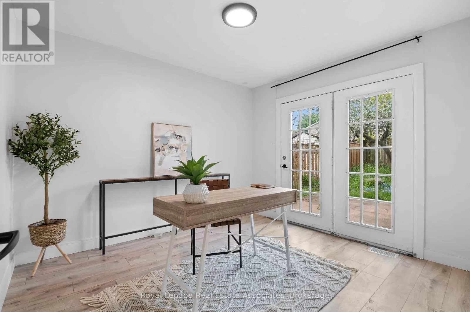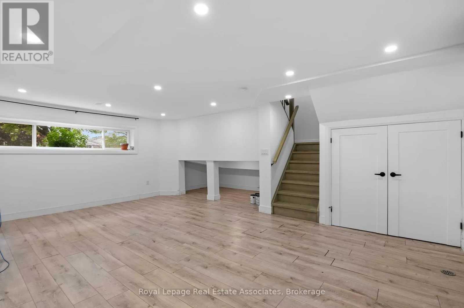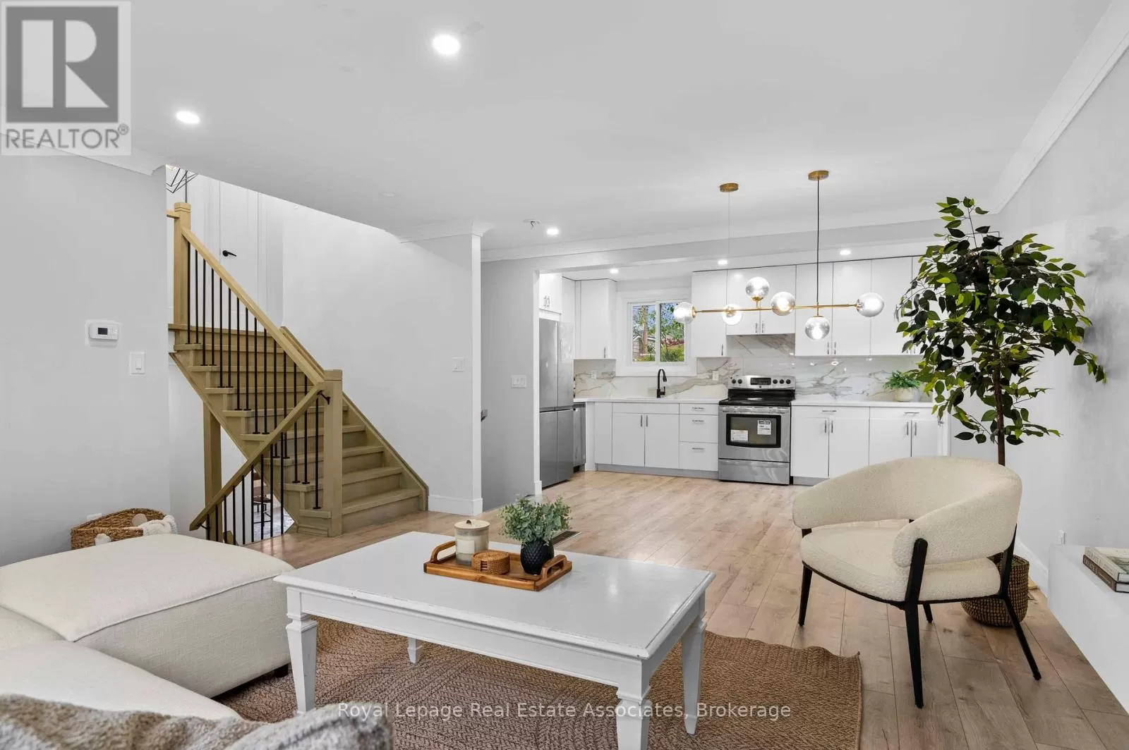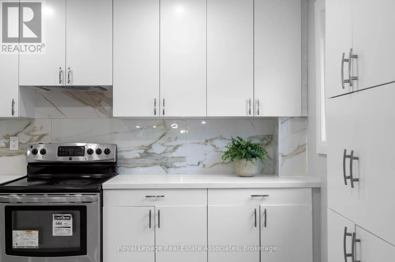 Industrial Rd / Dunbar Rd Welcome to 1236 Avonlea Road, a stunning, carpet-free 4-bedroom, 3-bath home in one of Cambridge's most sought-after areas! This bright and modern home features high-end laminate flooring throughout, an open-concept design, and an abundance of natural light from large windows. The custom kitchen is the heart of the home, showcasing stainless steel appliances, quartz countertops, and a trendy backsplash. The bathrooms offer sleek floating vanities and contemporary finishes, adding a touch of luxury throughout. Elegant crown moulding, upgraded trim, and loads of pot lights create a warm and sophisticated atmosphere. The living room features an electric fireplace with a custom floor-to-ceiling surround, a true focal point for relaxing and entertaining. A fully finished basement with a 3-piece bath adds even more functional living space. Step outside to a fully fenced backyard with mature trees and a garden shed perfect for outdoor enjoyment. Ideally located close to Hwy 401, shopping, schools, parks, and all amenities, this home offers the perfect blend of style, comfort, and convenience. A true must-see! Roof (2021) (id:27476)