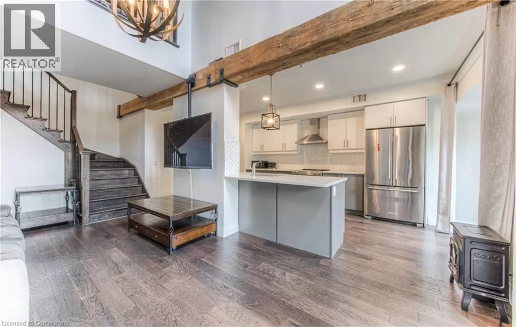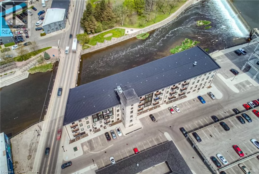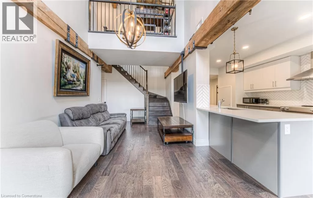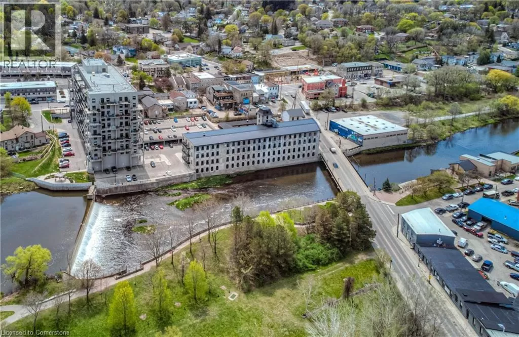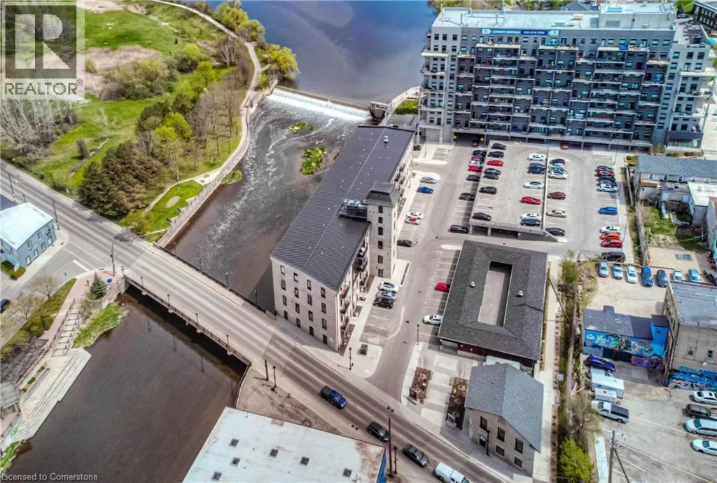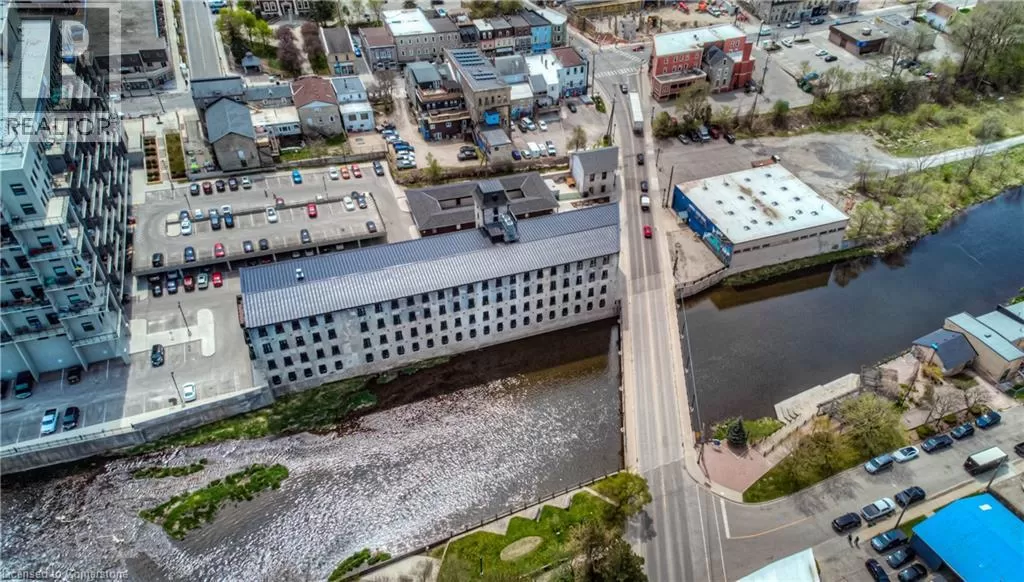TOWNLINE RD, TURN LEFT ON RIVER ROAD, CONTINUE ON RIVER ROAD AS IT TURNS INTO QUEEN ST E, TURN RIGHT ON GUELPH AVE RIVER VIEW & DOUBLE CAR GARAGE! Urban Loft Living Meets Nature in Historic Hespeler Village! Welcome to #107-19 Guelph Ave. This stunning 2-storey Riverbend loft is located in the heart of Hespeler Village, where contemporary design meets serene riverside views. Overlooking the tranquil Speed River, this rare offering features soaring 22-foot ceilings, beautifully engineered hardwood flooring, and a sleek, modern aesthetic that sets it apart from the ordinary. Boasting 2 spacious bedrooms and 2 full bathrooms, this bright light-filled home offers a functional layout perfect for both relaxing and entertaining. Enjoy the outdoors from multiple Juliette balconies, providing fresh air and picture-perfect views of the surrounding nature. The kitchen and living areas are flooded with natural light, enhancing the lofty ambiance and riverfront charm. Additional features include a double car garage, private storage locker, and access to premium building amenities such as a fitness room, dog wash station, bike storage and a private locker for storage. Whether you're an outdoor enthusiast, commuter, or someone looking to enjoy the boutique shops, cafes, and trails of Hespeler Village, this stunning loft has it all. Donât miss your chance to live in one of the area's most coveted loft communities. Modern comfort, natural beauty, and small-town charm â all in one. (id:27476)