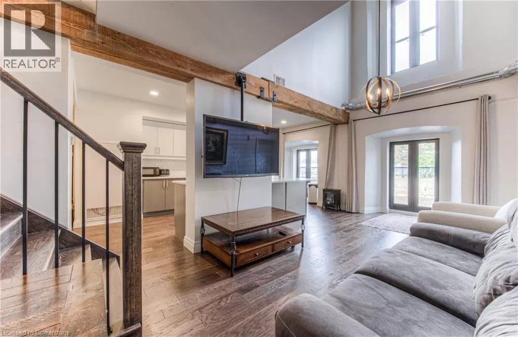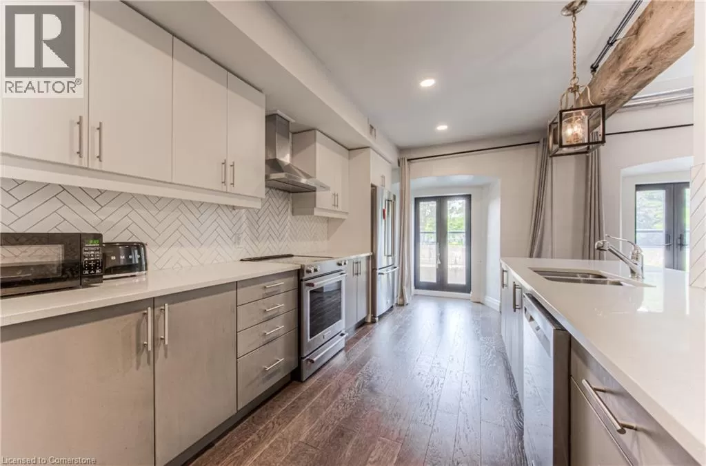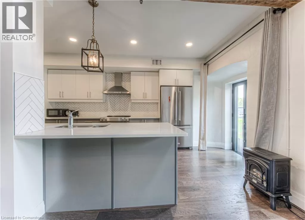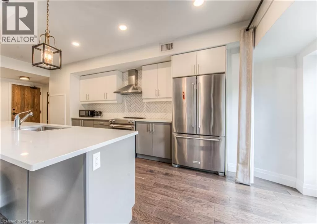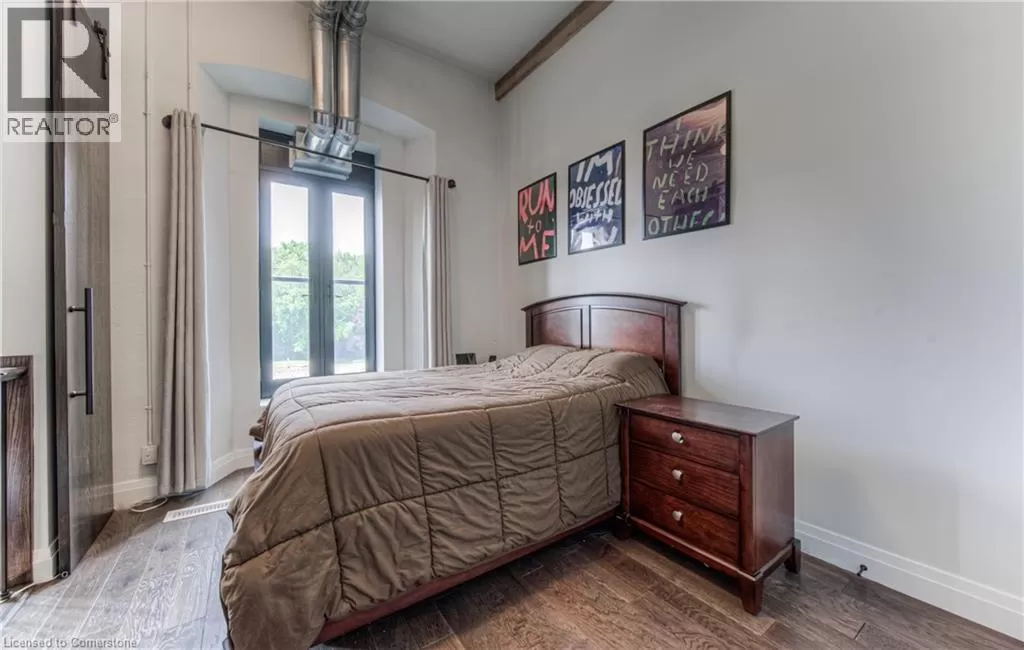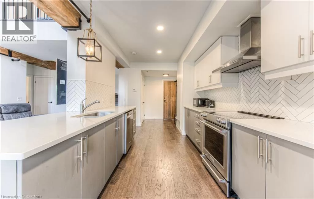 TOWNLINE RD, TURN LEFT ON RIVER ROAD, CONTINUE ON RIVER ROAD AS IT TURNS INTO QUEEN ST E, TURN RIGHT ON GUELPH AVE RIVER VIEW & DOUBLE CAR GARAGE! Urban Loft Living Meets Nature in Historic Hespeler Village! Welcome to #107-19 Guelph Ave. This stunning 2-storey Riverbend loft is located in the heart of Hespeler Village, where contemporary design meets serene riverside views. Overlooking the tranquil Speed River, this rare offering features soaring 22-foot ceilings, beautifully engineered hardwood flooring, and a sleek, modern aesthetic that sets it apart from the ordinary. Boasting 2 spacious bedrooms and 2 full bathrooms, this bright light-filled home offers a functional layout perfect for both relaxing and entertaining. Enjoy the outdoors from multiple Juliette balconies, providing fresh air and picture-perfect views of the surrounding nature. The kitchen and living areas are flooded with natural light, enhancing the lofty ambiance and riverfront charm. Additional features include a double car garage, private storage locker, and access to premium building amenities such as a fitness room, dog wash station, bike storage and a private locker for storage. Whether you're an outdoor enthusiast, commuter, or someone looking to enjoy the boutique shops, cafes, and trails of Hespeler Village, this stunning loft has it all. Donât miss your chance to live in one of the area's most coveted loft communities. Modern comfort, natural beauty, and small-town charm â all in one. (id:27476)