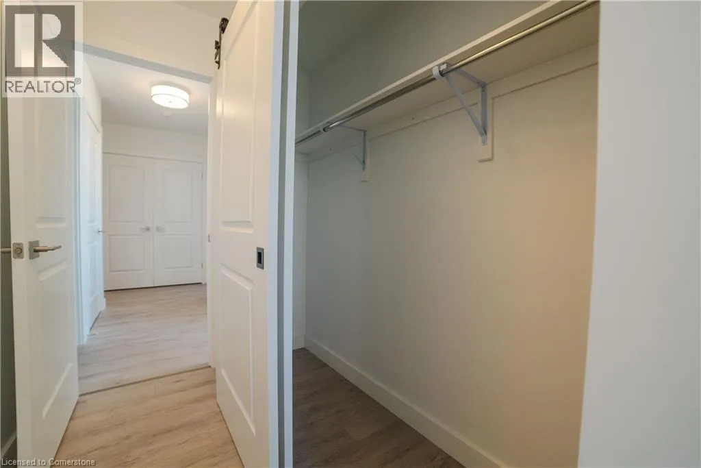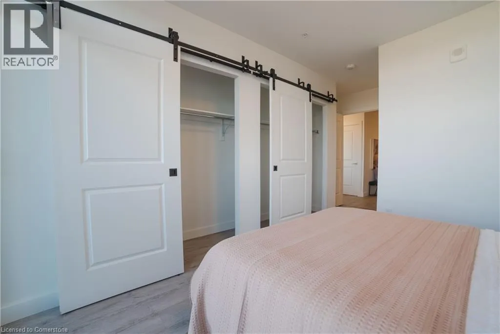 St Andrews St to Glebe St Located in the heart of historic downtown Galt, this beautiful condo is part of the vibrant Gaslight Districtâa new center for residential, commercial, retail, dining, art, and culture. Here, life, work, and leisure come together to create an unparalleled living experience. This impressive unit has nine-foot painted ceilings, wide-plank light flooring, and premium finishes throughout. The spacious kitchen features modern cabinetry with designer hardware, quartz countertops, a tile backsplash, an oversized island with an under-mount sink and gooseneck faucet, and stainless steel appliances. The open-concept design flows seamlessly from the kitchen into a generous living and dining area, ideal for entertaining. Floor-to-ceiling windows and access to a large balcony let natural light flood the space. The primary suite offers his & her closets, glass doors leading to the balcony, and a luxurious four-piece ensuite with dual sinks and a walk-in shower. A second bedroom with floor-to-ceiling windows, a four-piece bath with a tub and shower combo, and in-suite laundry complete this premium unit. This condo also includes two parking spaces for your convenience. Residents enjoy access to an array of amenities, including a welcoming lobby with seating, secure video-monitored entry, a fitness area with a spacious yoga and Pilates studio, a games room with billiards, ping-pong, and a large TV, a catering kitchen, a private dining room, and a cozy library. The lounge opens onto a spacious outdoor terrace overlooking Gaslight Square, featuring multiple seating areas, pergolas, fire pits, and a BBQ area for outdoor relaxation. (id:27476)