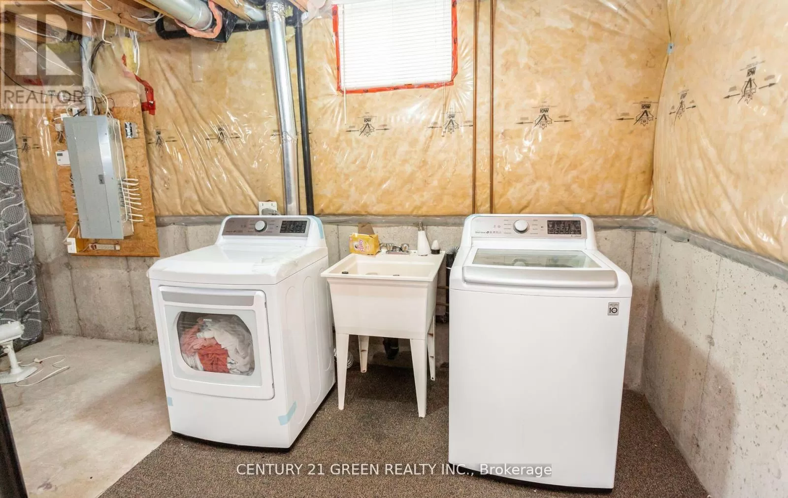 Branchton / Lillywood Charming 2-storey Detached Home with Modern Upgrades. Welcome to this beautiful 4-Bedroom, 3-Bathroom full brick home, offering both style and functionality. With a double car garage and private driveway, this home has ample space for your family's needs. The included fridge, washer, dryer, pot lights, and water softener ensure comfort and convenience right from the start. Renovated to perfection, the home now boasts a spacious, open-concept hallway that creates a welcoming and airy atmosphere. The large windows in the basement flood the space with natural light, and with a secondary laundry room and rough-in for an additional bathroom, this home offers incredible potential for future expansion. (id:27476)