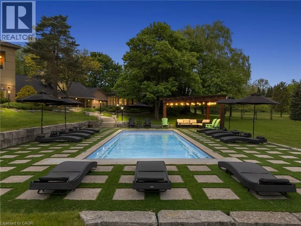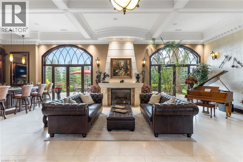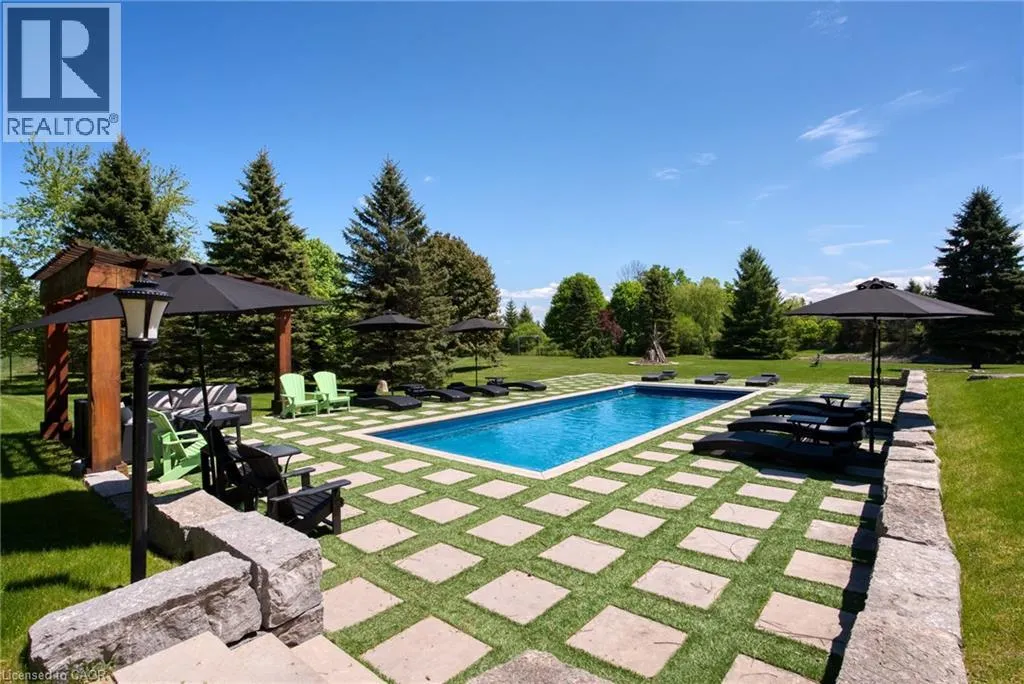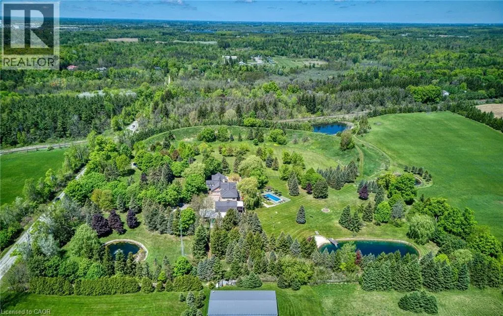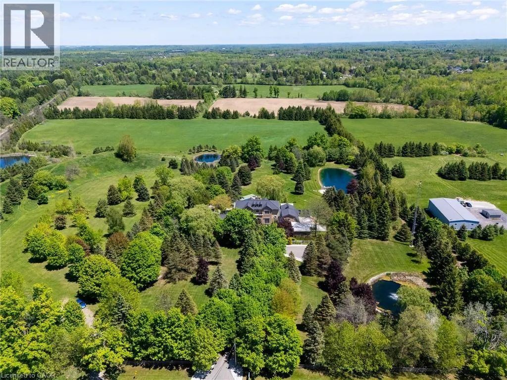 GORE RD/TOWNLINE RD A STORYBOOK ESTATE, BUILT FOR A LIFE WELL-LIVED. 1927 Shellard Side Road, Cambridge | 28.5 Acres of Private Luxury. Tucked away on a breathtaking 28.5-acre canvas of rolling greenery, private ponds, and forest-lined edges lies a residence that feels like it was lifted from the pages of a fairytale. From the moment you pass through the gated entrance, a winding drive leads you to a majestic home where luxury, privacy, and serenity converge. Step inside and youâre greeted by soaring ceilings, rich architectural detail, and sun-soaked spaces designed for both grand entertaining and intimate family living. The heart of the homeâa magnificent great roomâanchors a layout that flows seamlessly into formal dining, a stunning chefâs kitchen, custom bar, sunroom, and even a private theatre. Whether youâre unwinding fireside, enjoying a movie, or hosting an evening soiree, every room offers a sense of elegance and ease. The gym, games loft, and guest wing create space for everyoneâwhile the primary suite is a retreat all its own, complete with a marble fireplace, spa-inspired ensuite, and private balcony overlooking the grounds. Outside, your personal resort awaits: a heated saltwater pool surrounded by stone patios, a sparkling man-made lake with a beach and waterfall, and multiple pondsâall wrapped in absolute privacy. A commercial-grade mechanical system, 3-bay garage, and even free Wi-Fi from the on-site communication tower (Megawire) offer effortless functionality. Additional features include a private fitness trail, home propane generator with automatic transfer switch, and a gated entry with intercom. This is more than a home. Itâs a sanctuary. For those with vision, the expansive grounds may offer future potential for lot severanceâadding long-term flexibility to this once-in-a-lifetime opportunity. (id:27476)