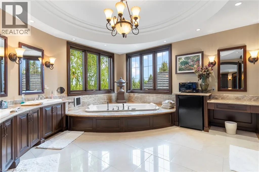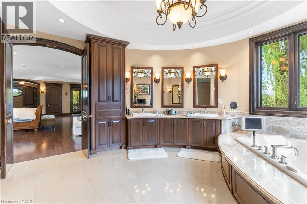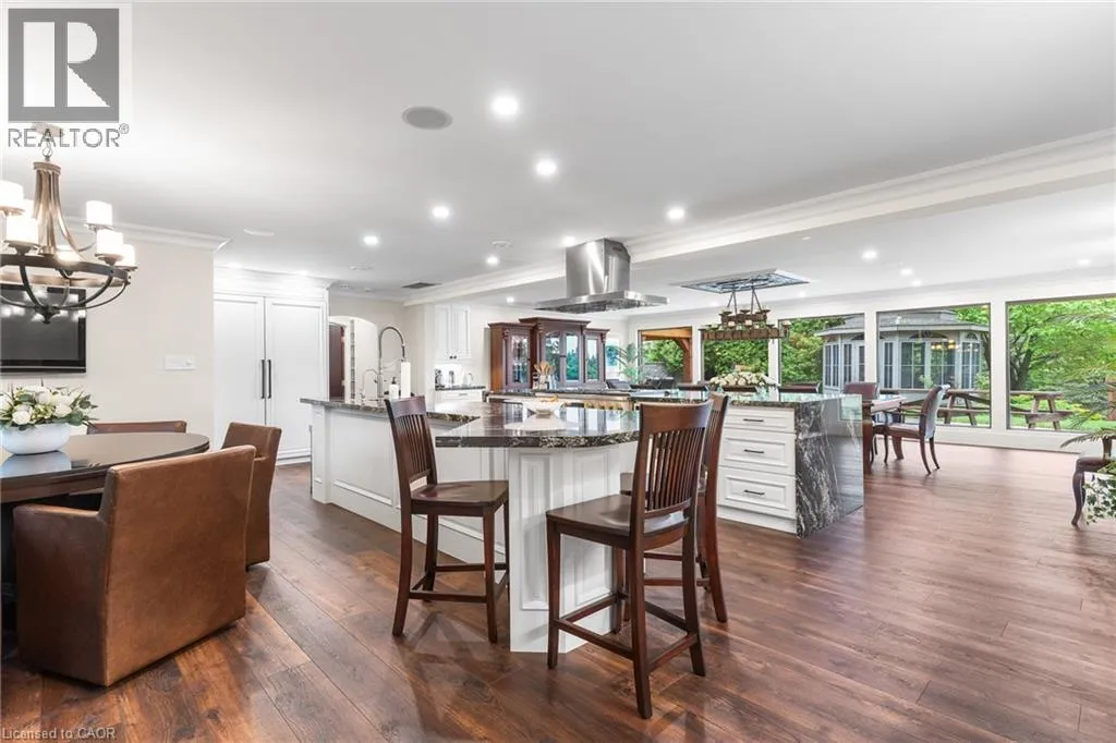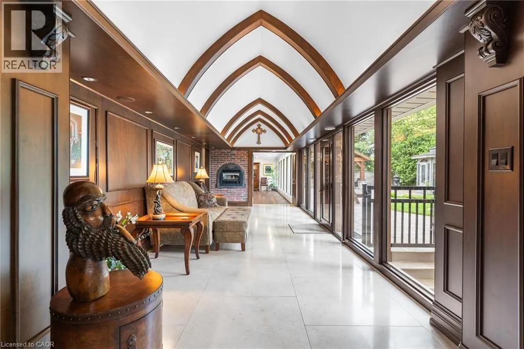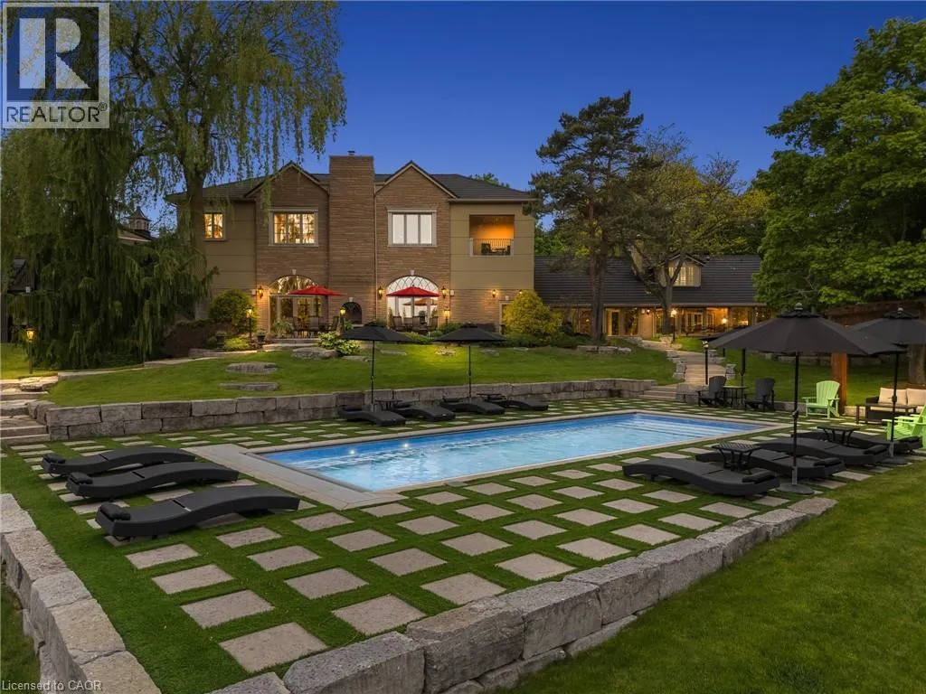 GORE RD/TOWNLINE RD A STORYBOOK ESTATE, BUILT FOR A LIFE WELL-LIVED. 1927 Shellard Side Road, Cambridge | 28.5 Acres of Private Luxury. Tucked away on a breathtaking 28.5-acre canvas of rolling greenery, private ponds, and forest-lined edges lies a residence that feels like it was lifted from the pages of a fairytale. From the moment you pass through the gated entrance, a winding drive leads you to a majestic home where luxury, privacy, and serenity converge. Step inside and youâre greeted by soaring ceilings, rich architectural detail, and sun-soaked spaces designed for both grand entertaining and intimate family living. The heart of the homeâa magnificent great roomâanchors a layout that flows seamlessly into formal dining, a stunning chefâs kitchen, custom bar, sunroom, and even a private theatre. Whether youâre unwinding fireside, enjoying a movie, or hosting an evening soiree, every room offers a sense of elegance and ease. The gym, games loft, and guest wing create space for everyoneâwhile the primary suite is a retreat all its own, complete with a marble fireplace, spa-inspired ensuite, and private balcony overlooking the grounds. Outside, your personal resort awaits: a heated saltwater pool surrounded by stone patios, a sparkling man-made lake with a beach and waterfall, and multiple pondsâall wrapped in absolute privacy. A commercial-grade mechanical system, 3-bay garage, and even free Wi-Fi from the on-site communication tower (Megawire) offer effortless functionality. Additional features include a private fitness trail, home propane generator with automatic transfer switch, and a gated entry with intercom. This is more than a home. Itâs a sanctuary. For those with vision, the expansive grounds may offer future potential for lot severanceâadding long-term flexibility to this once-in-a-lifetime opportunity. (id:27476)