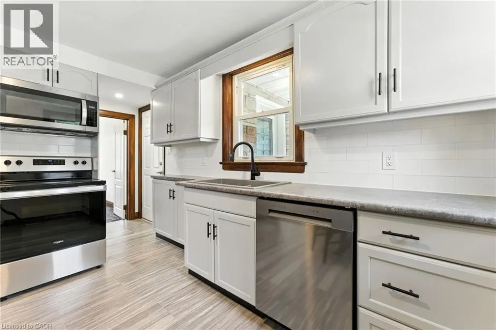 Dundas St N Elgin St N Pollock Ave Welcome to 117 Pollock Avenue in East Galt, Cambridgeâa duplex offering a fantastic opportunity for multi-generational living or investment. The spacious main floor unit features 4 bedrooms, 2 bathrooms, an eat-in kitchen, laundry, and a bright living area, while the lower-level apartment offers 1 bedroom, its own kitchen, laundry, and separate entrance for privacy and income potential. Set on a 69.6 ft x 66 ft lot with parking for 6 vehicles, this home includes a new 200-amp service, forced air gas heating with A/C, and comes with 2 fridges, 2 stoves, 2 washers, 2 dryers, a tool shed, and more. Conveniently located near shopping, highways, public transit, parks, schools, Cambridge Centre, and the hospital, this turn-key property is move-in ready perfect for homeowners or investors alike. In total, the building offers 5 bedrooms, 3 bathrooms, and 2 kitchens with over 2,000 SQFT of finished space. (id:27476)