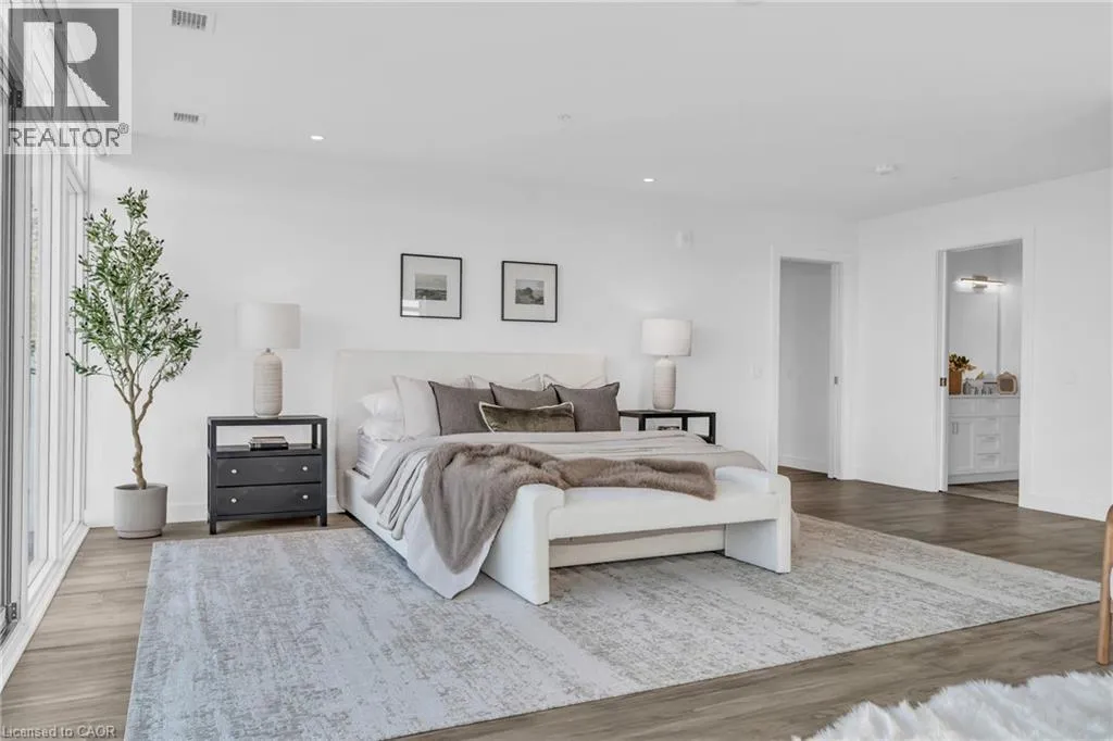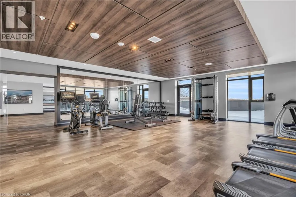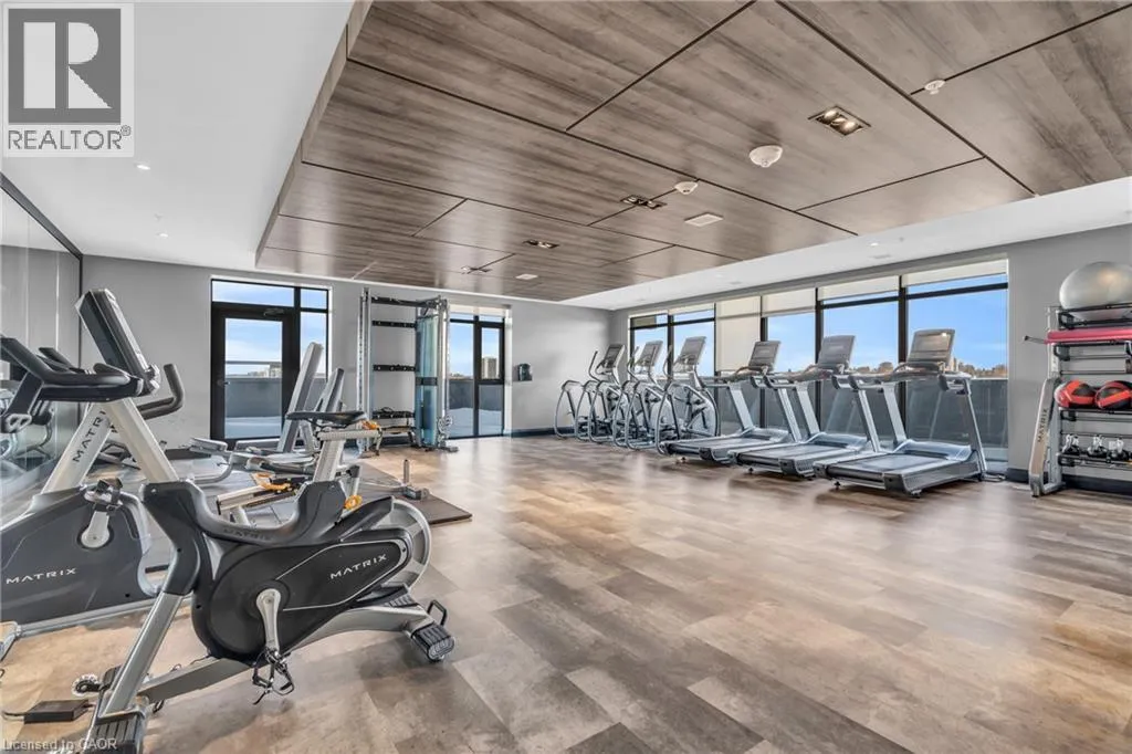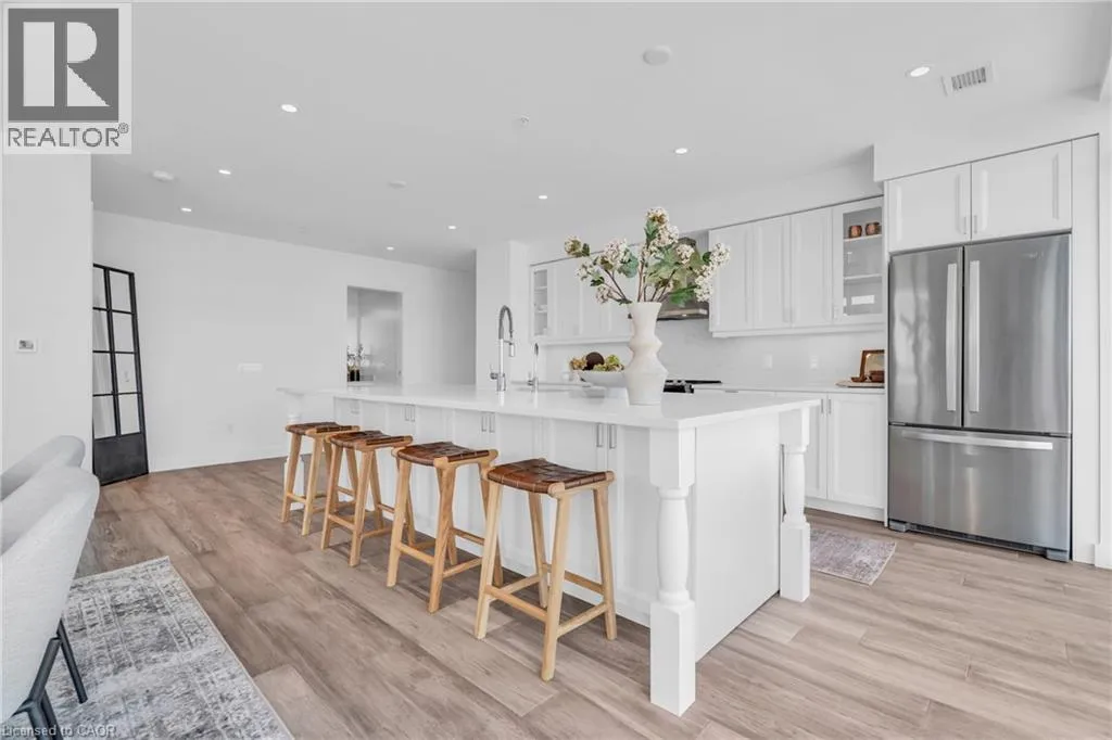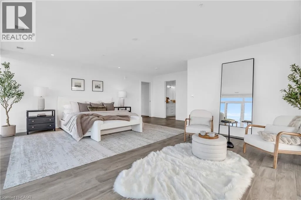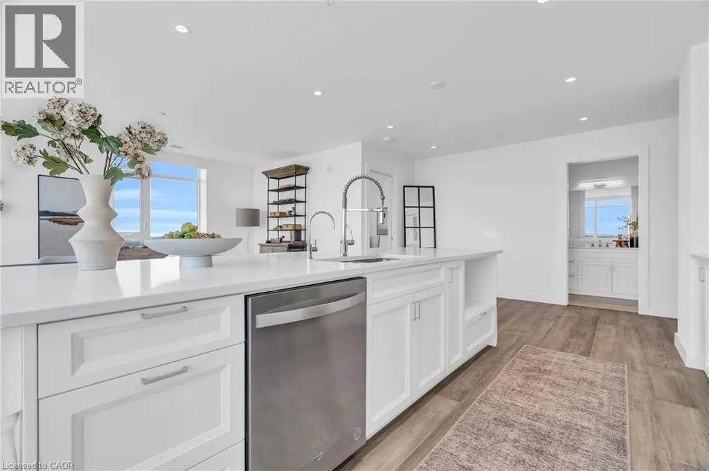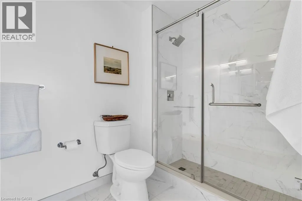 St. Andrews St to Glebe St Luxury Penthouse Living in the Heart of the Gaslight District! An extraordinary 2,300 sq. ft. residence created by seamlessly combining two expansive units. Spanning the entire side of the building, this one-of-a-kind three-bedroom, three-bathroom home offers breathtaking panoramic views of historic downtown Cambridge and the Grand River. Step into a grand foyer that opens into a sun-drenched, open-concept living space. Floor-to-ceiling windows bathe the home in natural light, while engineered hardwood floors add warmth and sophistication. The thoughtful layout includes pocket doors in every bedroom, maximizing both space and functionality. At the heart of the home is a chefs dream kitchen, fully upgraded with quartz countertops and backsplash, an oversized island, and premium finishes. Designed for both style and efficiency, this space is perfect for intimate dinners or lavish gatherings. The primary suite is a private retreat, complete with a spacious walk-in closet/dressing area with custom organizers and a large window. The spa-like ensuite boasts a walk-in glass shower and dual sinks, while sliding glass doors provide direct access to the penthouses expansive 100-ft. terrace. The second bedroom features floor-to-ceiling windows, a wall-to-wall closet, and its own private three-piece ensuite. A third generous bedroom currently configured as an office/den offers additional flexibility. This extraordinary residence also features a wraparound balcony accessible from every room, offering spectacular sunrise and sunset views over the city skyline and Grand River. Additional features include two underground parking spaces (one with an EV charging station), two private storage lockers, and access to state-of-the-art amenities: a rooftop terrace, private dining room, fitness center, yoga & Pilates studio, and an elegant lobby. (id:27476)