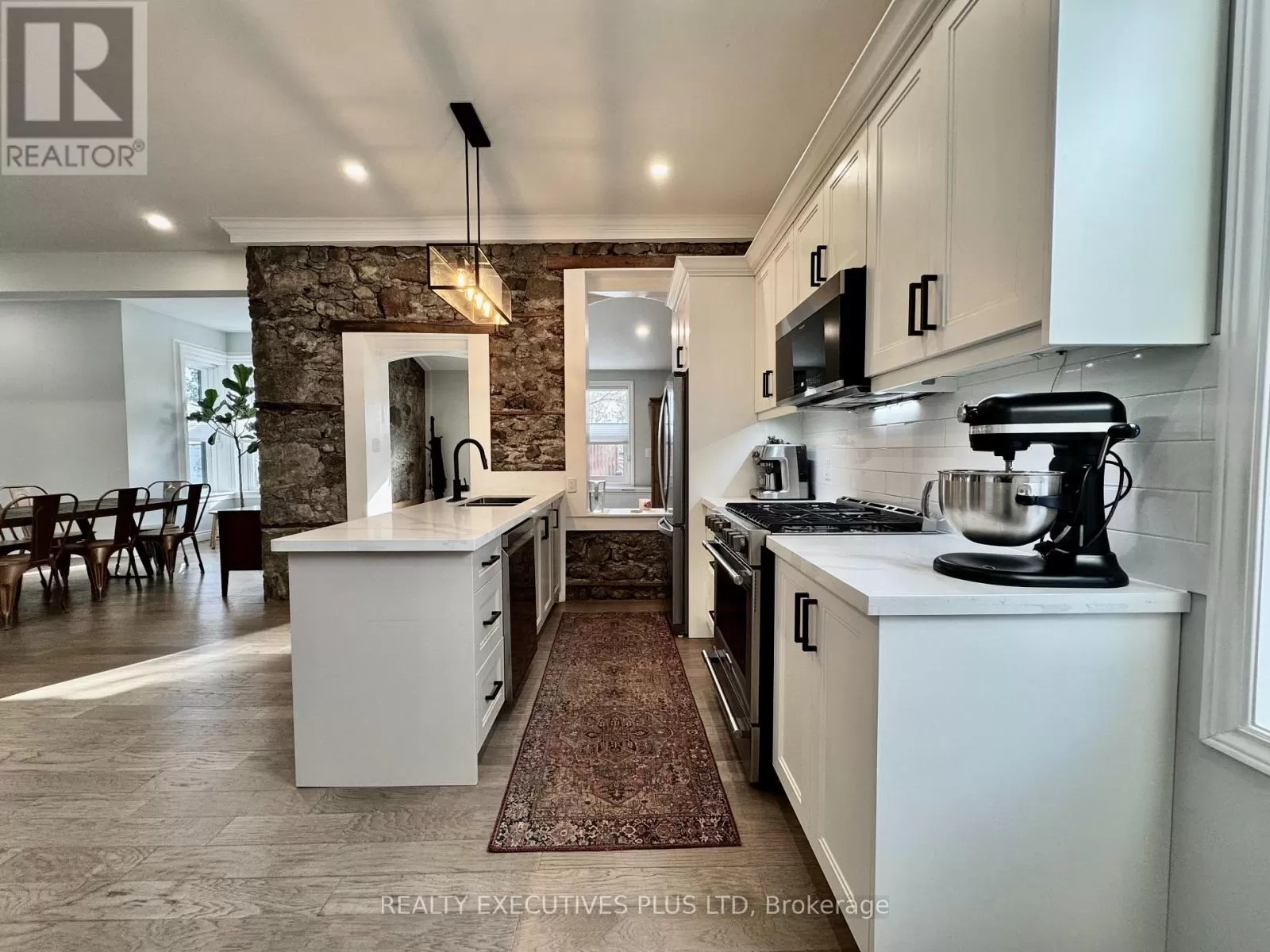 Cross Streets: Dundas St North and Main St. ** Directions: Elgin St N and Main Street. This exceptional property, built around 1889, masterfully blends the grandeur of its High Victorian Gothic design with modern updates and luxurious amenities. Fully renovated in 2020, the home boasts new electrical systems, flooring, upgraded windows and doors, a new roof, plumbing, and state-of-the-art kitchen and bathroom appliances. The original stone exterior has been carefully preserved, allowing the home to retain its timeless charm while offering a sleek, contemporary interior. One of the standout features of this unique home is the stone craftsmanship, which continues inside and enhances the character of the living spaces. The interior is further highlighted by a custom-designed bungaloft layout, ensuring both style and comfort throughout. The backyard is an entertainer's dream, with over $200,000 invested in 2023 transforming the space. It includes a deep, in-ground saltwater pool, professional landscaping, and upgraded composite fencing with a built-in gas BBQ line perfect for hosting gatherings in a private, tranquil setting.The homes thoughtful renovations extend to the roof, which has been spray-foamed for added insulation, ensuring year-round comfort. High 10-foot ceilings create an expansive atmosphere, inviting both relaxation and entertainment in this stunning property. The balance of historical beauty and modern functionality makes this home a truly one-of-a-kind gem. Additional updates include a 200-amp electrical service with a separate 100-amp electrical box in the garage, providing ample power for modern needs. The basement is a low-ceiling unfinished room, housing the furnace, water heater, and electrical panel, offering extra storage space for convenience. This home provides a perfect blend of old-world charm, modern efficiency, and luxurious living in an exceptional setting. **EXTRAS** Water Softener, Hot water tank, furnace (id:27476)