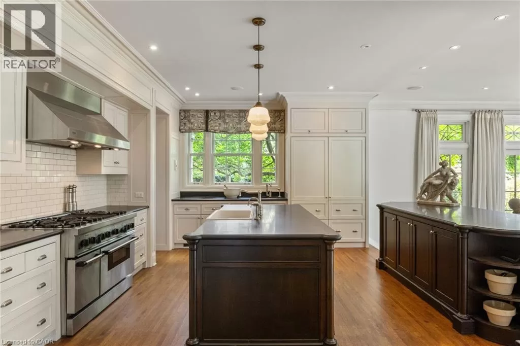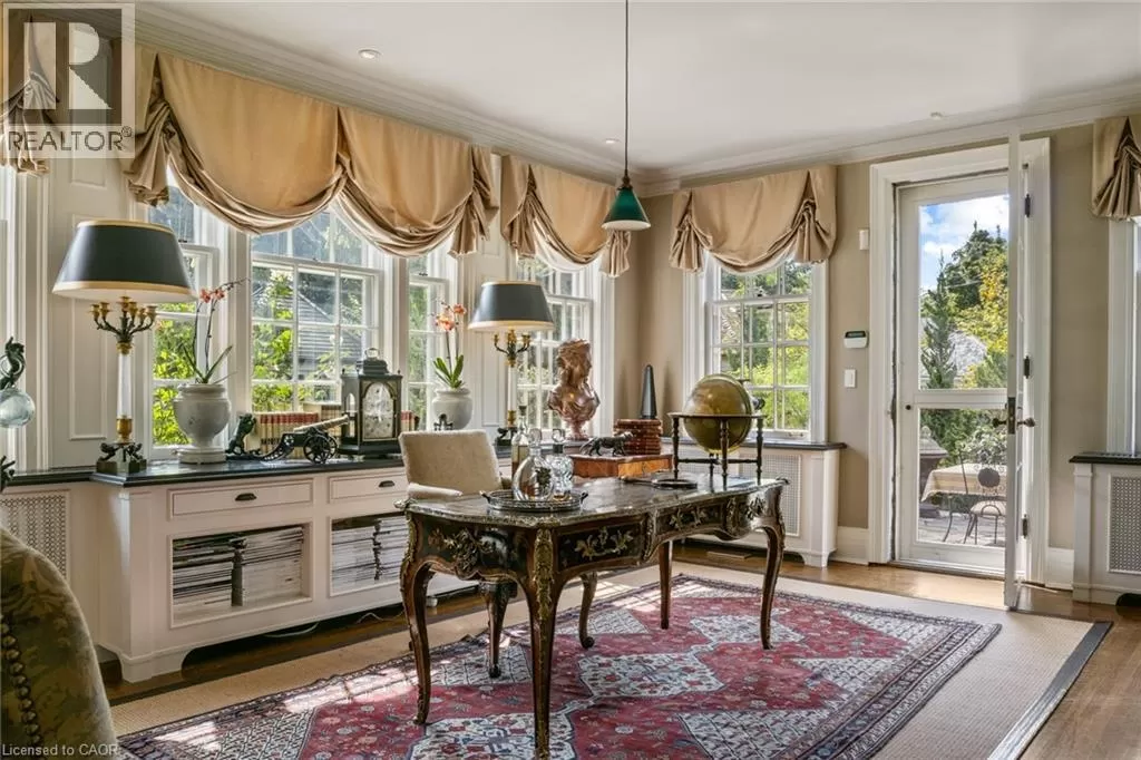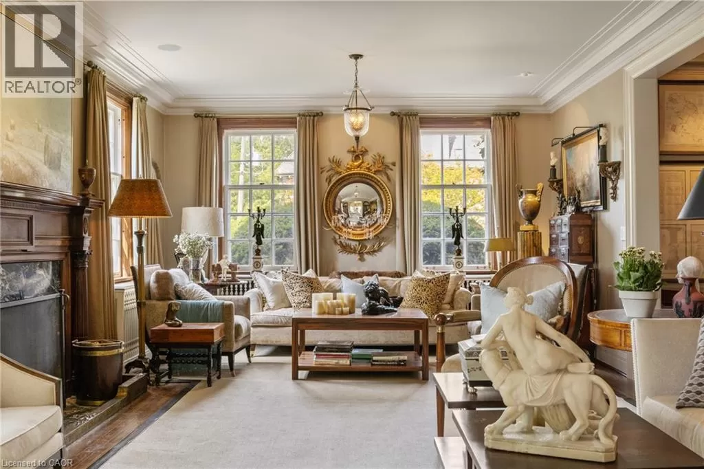 Grand Ave S to Salisbury Welcome to 33 Salisbury Avenue, a rare opportunity to own one of the most elegant and sought after homes in the Dickson Hill area of West Galt. This Georgian classic, built in 1928, has been lovingly cared for by the same family for the past 25 years and features interiors designed by Brian Gluckstein. With timeless architecture and modern conveniences, this residence captures the feeling of Gold Coast Long Island meets Newport Rhode Island. The home stands proudly at the corner of Salisbury and Byng Avenue, framed by formal gardens and mature landscaping. Equipped with smart home technology, the property offers ease of living with modern controls at your fingertips. Inside, the main level features soaring ceilings, rich hardwood flooring, and expansive principal rooms filled with natural light. The kitchen is the centerpiece, offering premium appliances, custom cabinetry, and seamless flow to both casual and formal spaces. A charming breakfast room, butlerâs pantry, and hidden passage to the dining room add to its appeal. The second and third floors offer an array of spacious bedrooms, including a luxurious primary suite with a spa inspired marble ensuite and custom art tapestry surrounding the freestanding tub. Additional bedrooms each feature their own ensuite, providing comfort and privacy for family or guests. Set on just over half an acre, the private backyard is a true retreat. Enjoy the in ground pool, covered side porch, formal gardens, or stroll to the private laneway that leads to a detached two car garage. Whether relaxing quietly or hosting gatherings, this outdoor space is designed for both. This is a once in a lifetime chance to own a piece of Cambridge history in the prestigious Dickson Hill community. (id:27476)