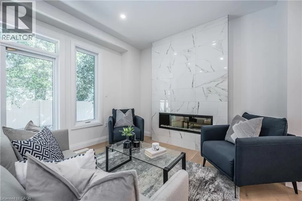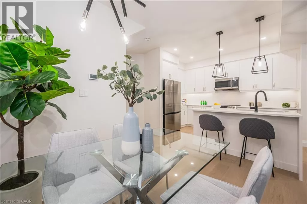 Elgin St N Now available for immediate occupancy, 143 Elgin Street North is a brand new luxury Vineyard Townhome that blends comfort, style, and convenience. Backing onto mature treed greenspace, this home offers rare backyard privacy and peaceful green views. The exterior showcases classic design with stone and brick accents, black-framed windows, and clean architectural lines that give it a polished, timeless look. Inside, the open-concept main floor features 9-foot ceilings, wide-plank flooring, and a kitchen thatâs as functional as it is stylishâcomplete with a waterfall island, quartz countertops, under-cabinet lighting, and a modern tile backsplash. Throughout the home, you'll find thoughtful upgrades that elevate the space, from upgraded lighting to quality finishes and well-planned storage. The living and dining areas connect effortlessly with the kitchen, creating a bright and practical layout for both everyday living and entertaining. Upstairs, the primary suite includes a private ensuite with a glass rainhead shower, and and additional 2 bedrooms and family bath. Right at your doorstep, you'll find Soper Park, offering green space for relaxation, playgrounds for families, and direct access to outdoor enjoyment. For your shopping needs, a variety of grocery stores are within easy reach. Dining out is a breeze with local favourites nearby. Families will appreciate the proximity to several schools, and public transit is just steps away at stops like Alison & Elgin. Plus, Highway 401 is under 10 minutes by car, making commuting simple. This is your chance to enjoy modern design, rare greenspace views, and everyday convenienceâall in a brand new home. (id:27476)