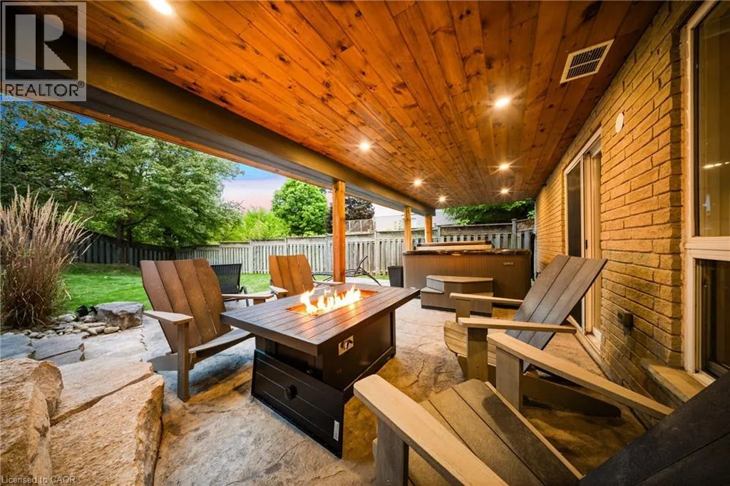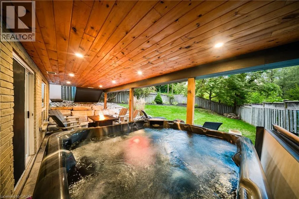 Queen Street E to Melran Drive to Endeavour Drive This turnkey family home in Hespeler is packed with thoughtful upgrades, stylish finishes, and functionality from top to bottom. Inside, this 3+1 bedroom, 3.5-bathroom home offers a fully finished walk-out basement with a full bathroom and an additional bedroom â perfect for guests, teens, or in-law potential. The kitchen has been refreshed with sleek, contemporary updates (2024), while the family room is warmed by a stunning stone accent fireplace that adds texture and charm (2022). Upstairs, the bedroom level features wide plank engineered hardwood flooring throughout (2021), adding warmth and sophistication. Throughout the home, custom Hinkley lighting creates a designer feel, paired with custom shutters and window coverings for a polished finish. Step outside to a backyard built for relaxing and entertaining. A waterproof composite deck spans the back of the home, featuring glass railings (2021), integrated lighting, and a full-length powered awning (2021), so you can enjoy the space in any weather. The fully fenced yard includes a private hot tub and low-maintenance landscaping, all backing onto lush greenspace with no rear neighboursâoffering privacy, tranquility, and an unbeatable view. And when it comes to location, this home delivers. You're just minutes from vibrant Hespeler Village, with local gems like the Hespeler Library, Fashion History Museum, Heritage Centre, and a range of great dining options. The Mill Pond Trail is close by for nature lovers, while nearby schools and parks make it perfect for families. Plus, Highway 401 is just minutes away, offering unbeatable convenience. (id:27476)