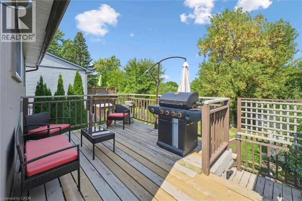Saxony Cir & Sunset Blvd Welcome to this charming and spacious backsplit nestled in the highly desirable Westview neighbourhood of Cambridge â a mature and tranquil community along the scenic Grand River. Enjoy the perfect blend of peaceful living with unmatched convenience, just minutes from major routes, shopping, schools, parks, and other key amenities. Step inside to a split-level entry that opens to a bright and inviting living room, overlooked by a dining area with soaring vaulted ceilings and an abundance of natural light. The newly renovated kitchen offers modern finishes and a walkout to the upper deck â perfect for BBQs and entertaining with easy access to the private backyard. Upstairs, you'll find a massive primary bedroom, a generous second bedroom, and a stylish 4-piece bathroom. The lower level features a spacious Rec Room with walkout access to a stunning new two-tier deck and a deep yard â ideal for kids, pets, and gatherings. A third bedroom, an additional 3-piece bath, and ample storage complete the lower level, offering great flexibility for guests or extended family. This home is move-in ready and ideal for growing families or downsizers alike â a rare opportunity in a coveted neighbourhood! Updates: Garburator, New Deck on lower level, New kitchen with appliances, Washer and Dryer, Furnace (2018), New bathroom vanity (upper) and new flooring (id:27476)