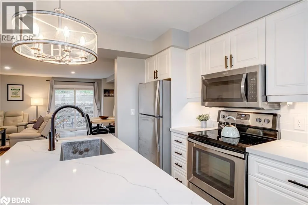 Chalmers St and Champlain Blvd Stylish 3-Bedroom Townhome with Numerous Upgrades. This beautifully maintained home features a functional main floor with a convenient powder room, laundry area, and direct access to the garage. The second level boasts a bright, open-concept living and dining area with upgraded baseboards, modern pot lights, and sliding doors that lead to a private patio perfect for entertaining or relaxing. The kitchen overlooks the living space and offers newer countertops, added cabinetry, and stainless steel appliances. Upstairs, the third floor includes a spacious primary bedroom with a walk-in closet, two additional bedrooms, one currently used as a home office and a modern full bathroom. Stay cool with a brand-new air conditioning unit installed in 2024. Garage and driveway for parking and ample visitor parking. Ideally located close to top-rated schools, parks, restaurants, grocery stores, and a wide array of other amenities. (id:27476)