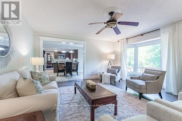 Cross Streets: Grand Ridge Drive / Wadsworth Crescent. ** Directions: Cedar Street / Grand Ridge Drive. Welcome home! This beautiful 4-bedroom executive home is set on a stunning 1/3 acre lot with picturesque pond views. Offering nearly 3,000 sq. ft. of living space plus a partially finished, walk-out basement, with in-law potential, this home combines elegance, function, and lifestyle. The main floor features a spacious layout with separate living and dining rooms, a cozy family room, and a private office that can easily serve as a guest bedroom. The kitchen boasts granite counters, a gas stove, generous cabinetry, and plenty of prep space, flowing seamlessly to the bright breakfast area and backyard. A convenient laundry/mudroom with garage access adds to the thoughtful design. Upstairs, the expansive primary suite includes a walk-in closet and a spa-inspired ensuite with soaker tub and separate shower. Three additional bedrooms are generously sized with ample closet space. With 2.5 baths, this home offers comfort for the whole family. Enjoy outdoor living on the 2-tier deck overlooking your private oasis. The deep lot backs onto a tranquil pond, perfect for fishing in the summer or skating in the winter, an ideal setting for creating lasting family memories. Additional highlights include a double garage with interior access, a steel roof for peace of mind, and excellent storage throughout. Located beside a city-maintained lot that backs onto a soccer field, this home offers both privacy and community amenities. A rare opportunity to own a home where everyday living meets year-round recreation don't miss it! (id:27476)