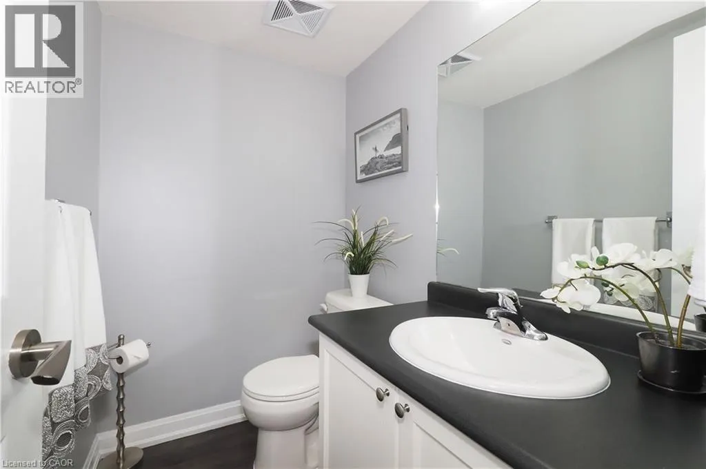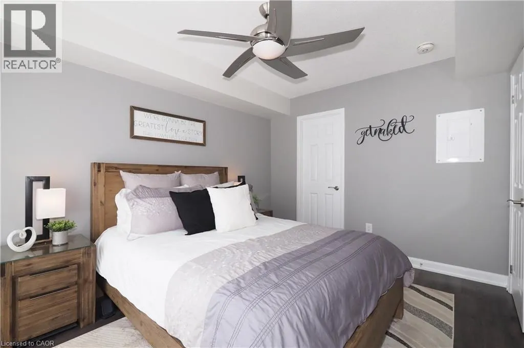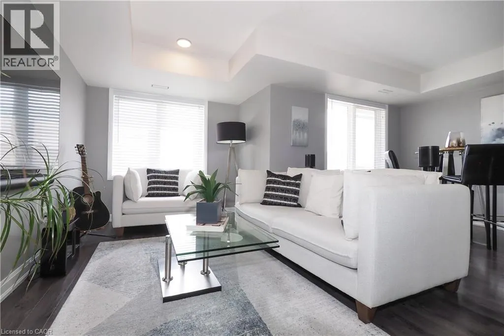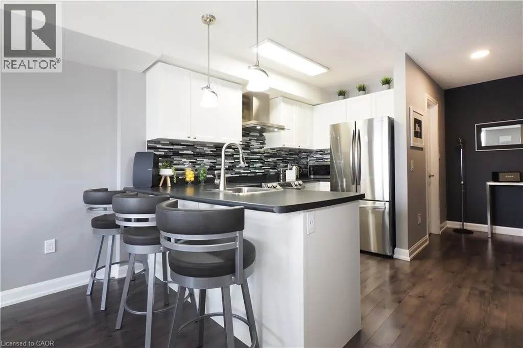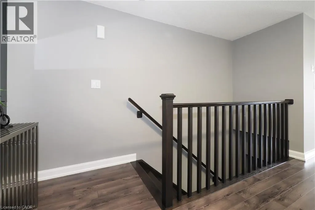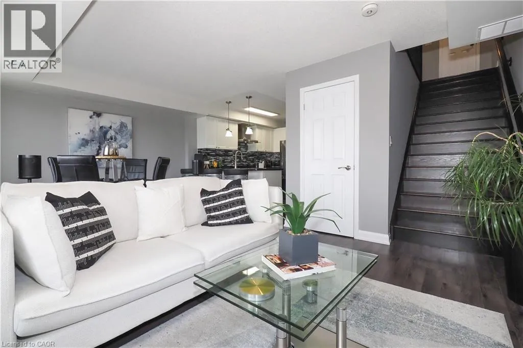 From Hwy 401 North on Hwy 24 straight through the roundabout and turn right on to Fisher Mills Road and first driveway on the right. Welcome to this beautifully cared for two-storey condo located in the vibrant Hespeler area of Cambridge! Offering a modern open-concept layout, this home features sleek finishes, dark wide-plank flooring, and a stylish kitchen with crisp white cabinetry, glass-tile backsplash,stainless steel appliances, and a breakfast bar with pendant lightingâperfect for casual dining or entertaining. Enjoy the sun-filled living and dining space with oversized windows, a cozy upper-level laundry, and two generous bedrooms, including a primary with walk-out balconyâideal for morning coffee or unwinding at sunset. The bathroom is tastefully decorated with a faux granite-style vanity and tile flooring. A dedicated laundry closet with full-sized front-load washer and dryer adds to the convenience. You'll also find a 2 piece bath on the main level. Located just minutes to downtown Hespelerâs shops, cafes, and river trails, and with easy access to Highways 24 & 401âcommuting to Guelph or Kitchener in under 15 minutes is a breeze. Whether you're a first-time buyer, savvy investor, or looking to downsize in style, this turnkey unit checks all the boxes. 2 Bedrooms, 1 Bath, Upper-level Laundry, Walk-Out Balcony, Parking Included, Minutes to Hwy 401 & 24, Close to Parks, Trails & Hespeler Village Don't miss your chance to live in one of Cambridgeâs most charming and connected communities. (id:27476)