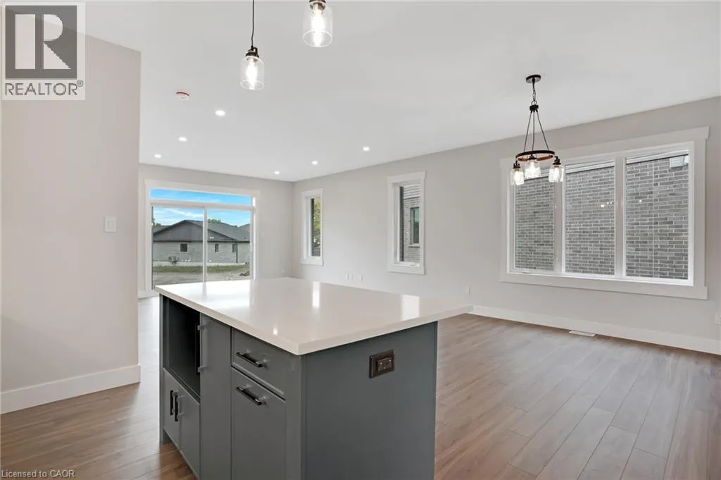 Newman Dr to Moon Cres Welcome to 24 Moon Crescent, Cambridge â a beautifully designed home located in the desirable Westwood Village Preserve community. Set on a unique pie-shaped lot, this newly built property is move-in ready! Featuring 4 bedrooms, 3.5 bathrooms, and multiple upgrades throughout, this home blends modern comfort with thoughtful design. The bright and airy open-concept layout seamlessly connects the kitchen, living, and dining areas â perfect for both everyday living and entertaining. The upgraded contemporary kitchen will feature sleek finishes and generous counter space, truly becoming the heart of the home. A versatile main floor bedroom offers flexibility for guests, a home office, or multigenerational living. Upstairs, youâll find three spacious bedrooms and a cozy family room. The primary suite includes a private ensuite and a walk-in closet, while each additional bedroom offers ample closet space. The unfinished basement provides a blank canvas for your future plans â whether you envision a home gym, media room, or extra living space, the possibilities are endless. Located in a vibrant and family-friendly neighbourhood close to schools, parks, and shopping, 24 Moon Crescent is ready to welcome you home. (id:27476)