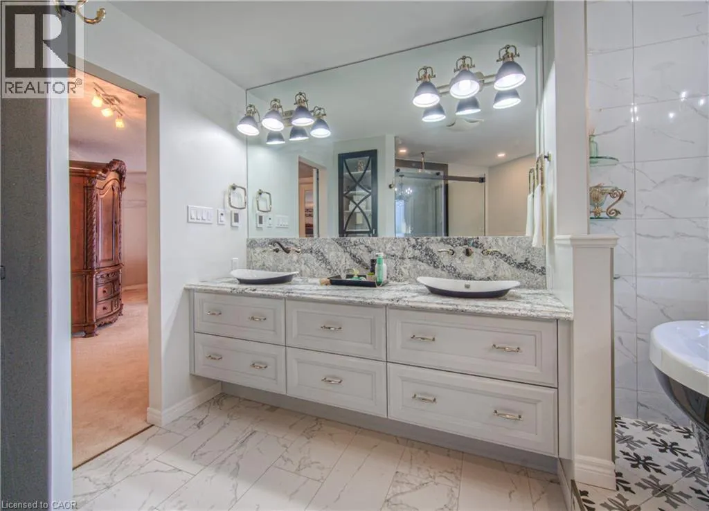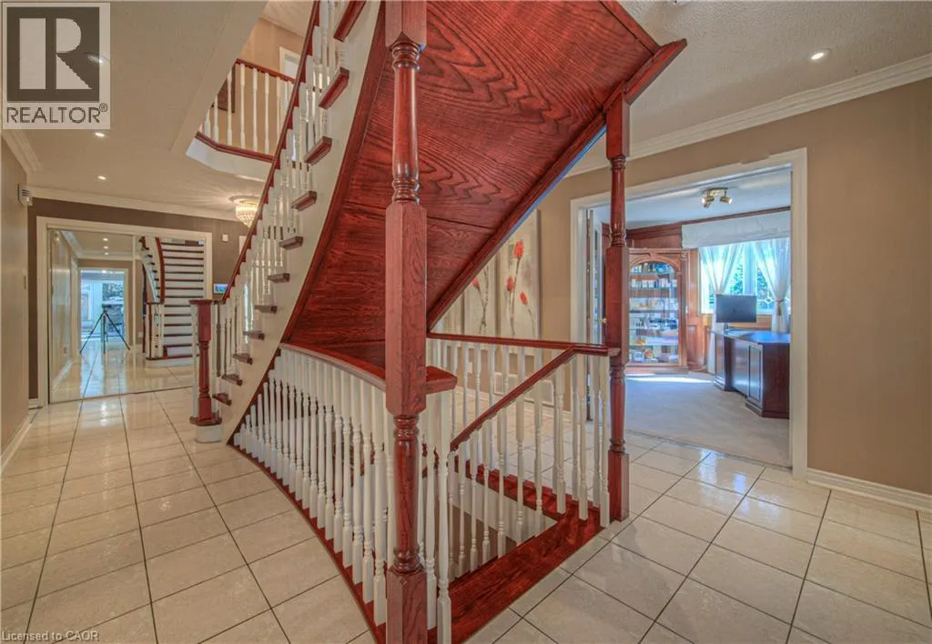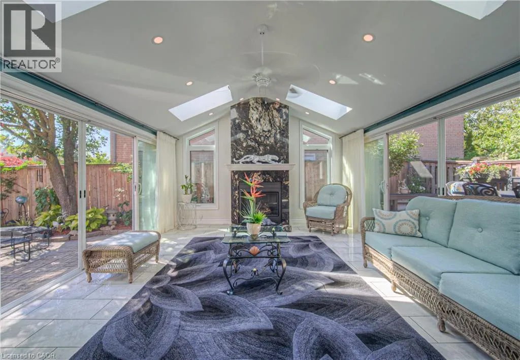 Burnett Ave to Peregrine to Osprey Crt Former Model home occupied by loving original owners! Absolutely stunning home with In-law or Teenager's suite on a private side of the home with walk-in closet and full bath! Meticulously maintained Feng Shui oriented home with a Heated Sunroom and a Stunning staircase built to size in the home! You will be charmed by the elegance and charm of this home with extensive Crown molding, Hardwood, Wrought iron special designed mirrors & cabinetry, Extensive Granite & Marble as soon as you step into this home that just keeps going on and on. The home spans over 5,000 sqft of living space with 5 bedrooms, 3.5 bathrooms, amazing Sunroom with gas fireplace and heated marble flooring open to both sides of the yard with sliders, 4 bedrooms on second level with 3 full baths, Master bedroom with two Walk-in closets or make one into Nursery plus a Spa like ensuite with a Soaker tub, Glass shower, Heated towel bar, His & Hers sinks, marble heated floors; Fully finished basement with oversized L-shape Rec room with gas fireplace, Exercise room, extra pantry/wine cellar. The main floor has an elegant office with wood paneling, Formal dining room with a beautiful one piece special design mirror, Living room/working room for home business, Family room/Den with a cozy gas fireplace, modern Chef's kitchen with marble countertops with top of the line appliances! The yard is fully fenced, has mature trees and is full of beautiful perennials. The home was fully renovated in 2018-19 Kitchen, Basement, Sunroom, Mudroom, Spa Ensuite, Powerless Kinetico water softener with torking system, RO, Eaves Guard, All new potlights, All windows, Front door. Other updates include: Roof 2012, AC 2017, Central Vacuum, Furnace & Hot water heater Nov 2024, Gas hook up for BBQ. Double garage plus the interlock driveway can park 6 cars! Just minutes from 401, Shopping, Schools, Trails, This home is a rare find that offers a perfect blend of luxury and elegant living style in a family oriented neighborhood. (id:27476)