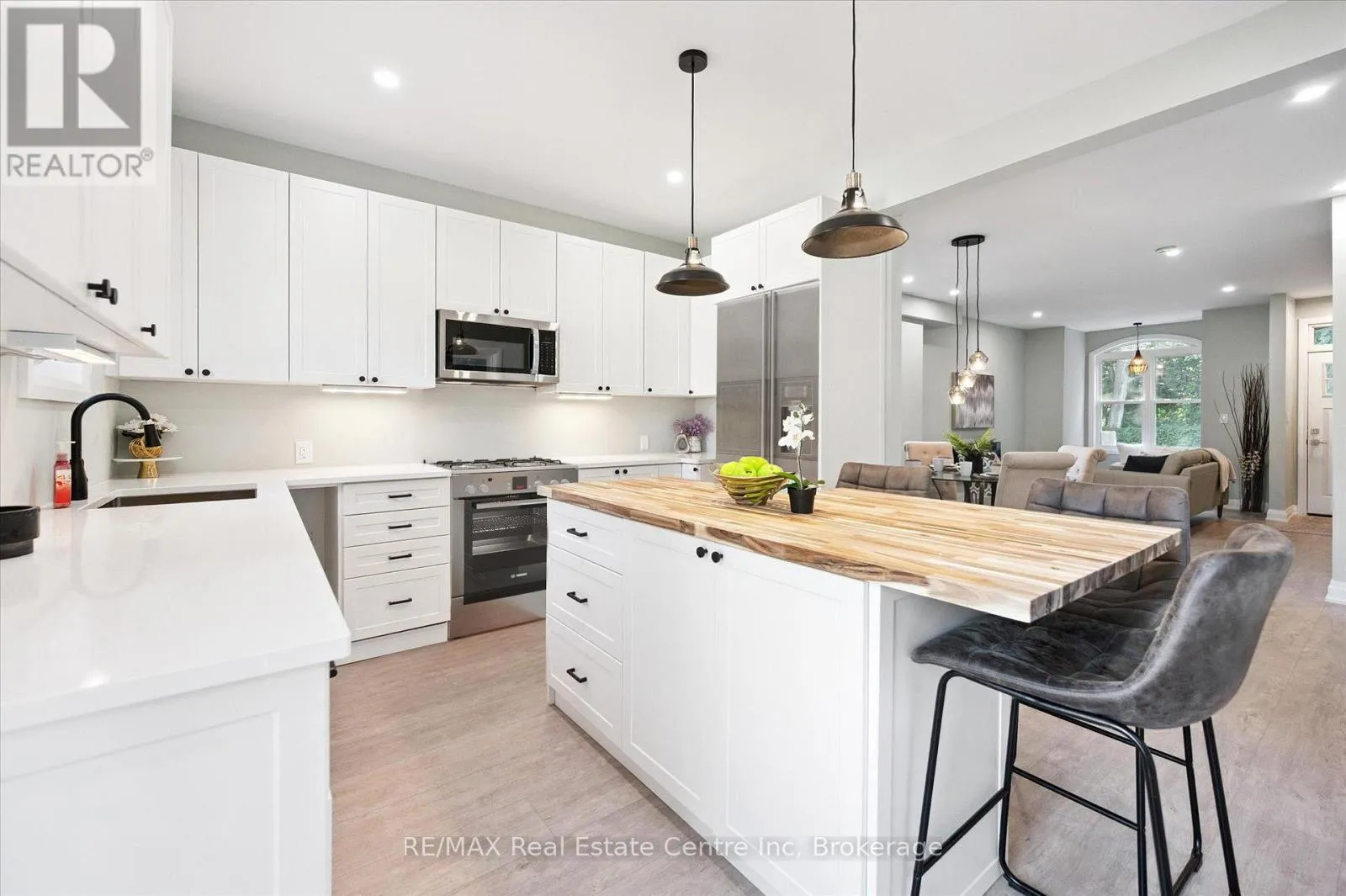 McNaughton St Welcome to your dream home at 68 Spruce St, nestled in heart of historic Galt & short stroll from scenic Grand River! This completely gutted (with only the original exterior brick remaining) & fully renovated gem offers best of both worlds-timeless charm & modern comfort W/brand-new plumbing, electrical, high-efficiency windows & HVAC systems for peace of mind for yrs to come. Step into open-concept living & dining area bathed in natural light from arched picture window. Scratch-resistant vinyl plank flooring ties the space together while 30 stylish pot lighting throughout enhances every room & creates bright atmosphere-perfect for relaxing W/family or hosting friends. Kitchen W/white cabinetry, quartz counters & centre island W/warm butcher block complete W/pendant lighting & overhang seating for casual dining. Step out directly to backyard from kitchen creating ideal indoor-outdoor flow. Elegant oak staircase leads upstairs to 3 bdrms including generous primary suite W/dual windows. Upper-level 4pc bath W/porcelain tile floors, sleek vanity & tiled tub/shower. Downstairs the partially finished bsmt expands living W/finished 3pc bath, heated marble floors & laundry room. Bright rec room is fully drywalled & painted-left without flooring so new owners can customize it to suit their needs. Wet bar R/I for kitchenette is in place. This level is ideal for future in-law suite or mtg helper setup. Located in sought-after Galt neighbourhood enjoy the convenience of being steps to Soper Park with trails, splash pad & disc golf. Walking distance to downtown shops, dining, cafés & Farmers' Market. This is more than a home-it's a lifestyle! Move in & enjoy new everything in one of Cambridge's most charming & connected communities. Limited-Time Offer! Secure your new home with 1-yr lease & enjoy exclusive incentive: 1 mth free rent during the final 6 mths of your lease term! Perfect opportunity to settle into comfortable well-maintained space while saving on your living costs. (id:27476)