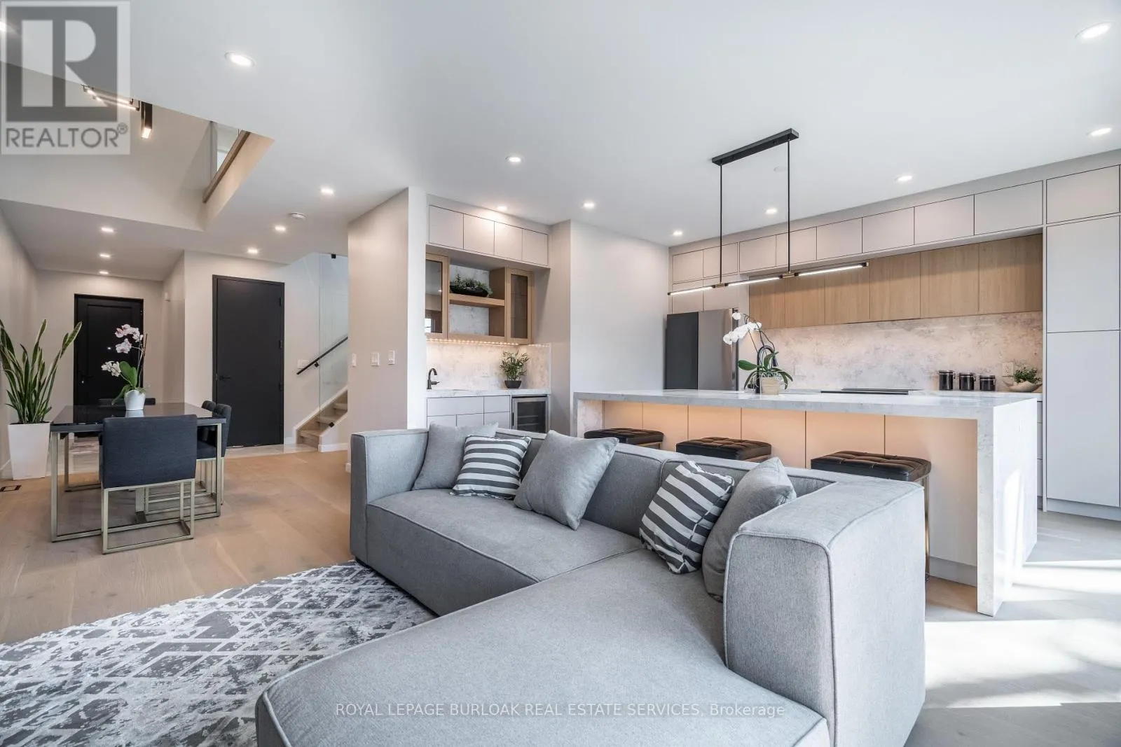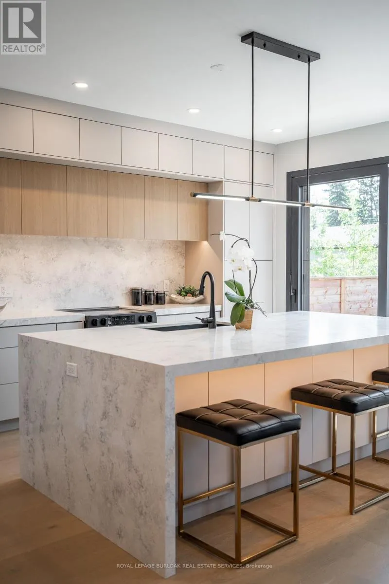 Oak Street and Lincoln Avenue Remarkable legal duplex offering 3,535 sq. ft. of high-end living with two self-contained units! The main unit spans three levels with 4 spacious bedrooms, 3 full bathrooms plus a powder room, a chef-inspired kitchen with quartz waterfall island, custom coffee bar with beverage fridge, and a stunning third-floor retreat featuring a stunning kitchenette with Brazilian granite and two rooftop terraces. Premium finishes include 8-inch European oak hardwood floors (no carpet), European tilt-and-turn windows, frameless glass railings, solid wood doors with brass hardware, imported tile, and 9-ft smooth ceilings. The completely separate lower-level apartment is fully registered with the city, separately metered, and features a private entrance, 9-ft ceilings, full kitchen, 3-piece bath, laundry rough-ins, and superior insulation, ideal for an income-generating suite or multi-generation living. Outdoors, enjoy a zero-maintenance backyard with composite decking and pet-friendly turf. Situated close to amenities, transit, and schools, this rare offering combines luxury, versatility, and long-term value. (id:27476)