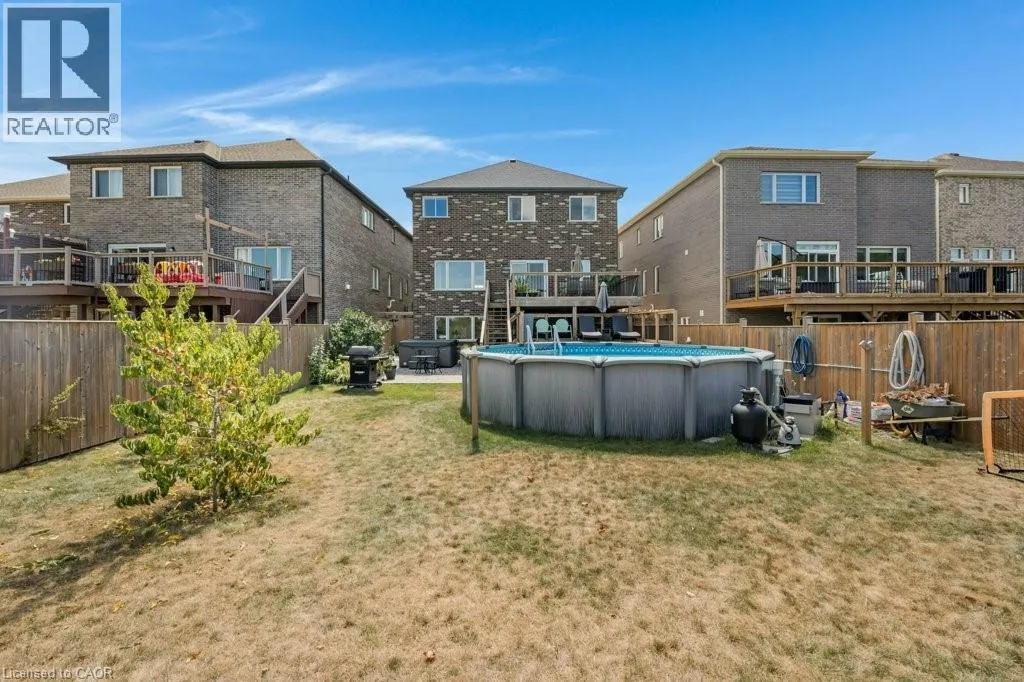 Heading west on Cedar St., turn right onto Kent St. Go to the end of Kent St and turn left onto Salisbury Av. Then take the first right onto Freure Dr. The house will be on the right, further down Freure Dr. Donât miss this stunning 2,900 sq ft family home, perfectly situated next to Lynn Freure Park and playground! Set on a generous 157-foot deep lot, this beautifully maintained property offers a rare combination of space, style, and versatility. The fully fenced backyard is ideal for entertaining and family fun, featuring a heated above-ground salt water pool, mature fruit trees, and a spacious patio with paver stones, a true outdoor oasis. Inside, the open-concept living room, dining room, and kitchen are filled with natural light and upgraded with porcelain tile, hardwood flooring, and pot lighting throughout. Enjoy picturesque views of the open farmland behind the home, offering a serene and private setting. The kitchen is both elegant and functional, with white cabinetry, quartz countertops, stainless steel appliances, and a center island, plus a walkout to the upper balcony, which steps down to the backyard. The main floor also features a flexible office or den, perfect for working from home or as an extra guest space. Upstairs, a bright and spacious family room with three large windows offers the perfect playroom or relaxation area. You'll also find three generously sized bedrooms, each with walk-in closets. The primary suite includes a luxurious 5-piece ensuite with tile flooring, a glass shower, soaker tub, and dual sinks. A second full bathroom and convenient upstairs laundry complete this level. The walkout basement offers even more living space with a large rec room, patio door access to the yard, and a 2-piece bath. Plus, thereâs a separate-entry, self-contained 1-bedroom apartment featuring its own kitchen, 3-piece bath, living room, and bedroom, all with stylish luxury vinyl plank flooring, ideal for in-laws, guests, or potential rental income. The apartment is currently vacant and move-in ready. (id:27476)