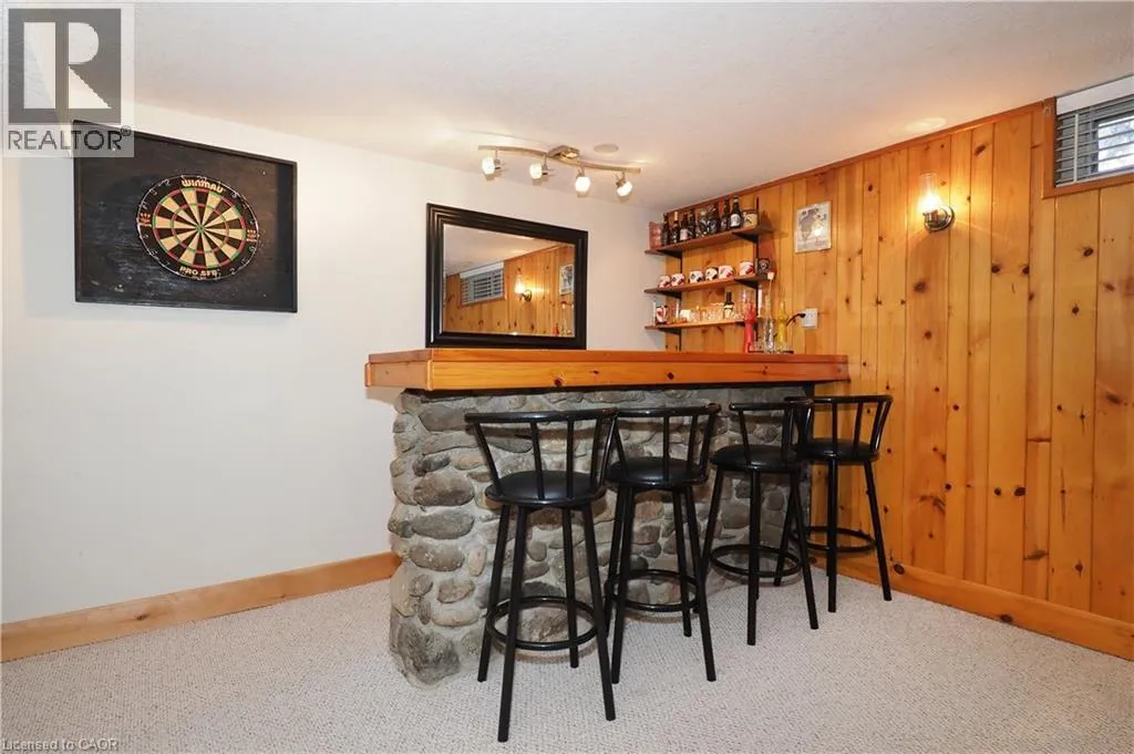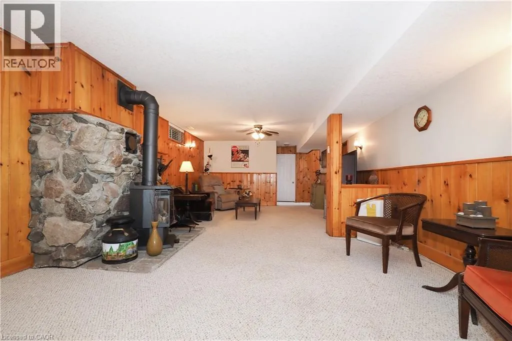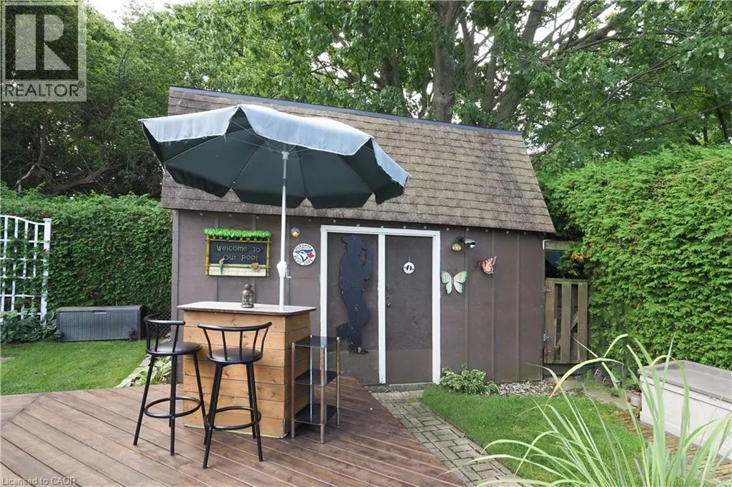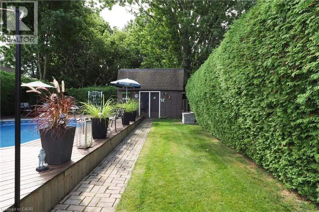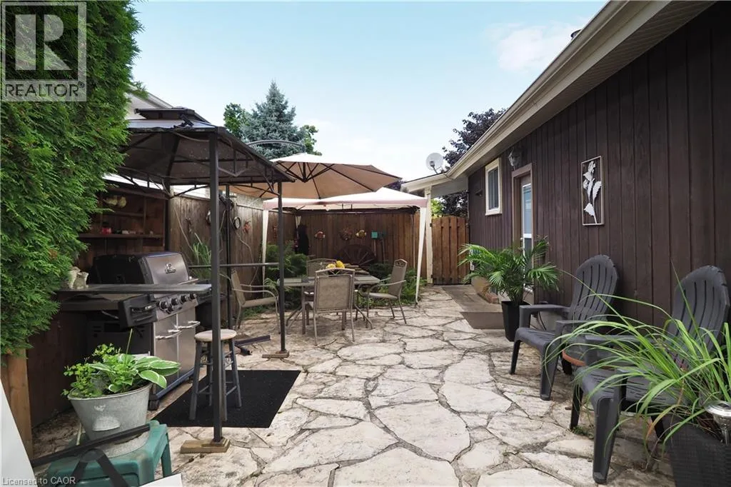 Guelph Ave to Milton AVe Welcome to this well-maintained bungalow located in the desirable Silver Heights neighbourhood of Hespeler, Cambridge. Ideally situated within walking distance to Silverheights Public School and St. Gabriel Catholic School, and just a short walk to Victoria Park, this home offers a convenient lifestyle with quick access to Guelph, Kitchener, and Highway 401. The exterior features beautiful landscaping, a carport that could easily be enclosed as a single garage, and paved parking for up to five vehicles. Inside, the main level offers a comfortable and practical layout. The eat-in kitchen is equipped with plenty of oak cabinetry, along with a fridge and stove and built in microwave, providing ample storage and workspace. The living room features an electric fireplace, laminate flooring, and a large picture window that fills the space with natural light. Three well-sized bedrooms complete the main floor, with the primary bedroom offering patio door access to the rear yardâperfect for enjoying your morning coffee outdoors. The finished lower level provides additional living space with a spacious recreation room, gas fireplace, and bar areaâideal for entertaining or relaxing with family and friends. A 3-piece bathroom and a bonus room offer flexible options for a guest room, bedroom, office, gym, or hobby space. The private backyard is deep and thoughtfully designed for both relaxation and enjoyment. It includes a heated sunken onground pool with a surrounding deck, a flagstone patio, a fish pond with waterfall, and two large storage sheds, all framed by mature landscaping and fencing for privacy. The gas furnace and central air are about 1 year old so that is something you don't have to budget for. This property is a wonderful combination of comfort, space, and location. Donât miss your opportunity to make this lovely home yoursâbook your private showing today. (id:27476)