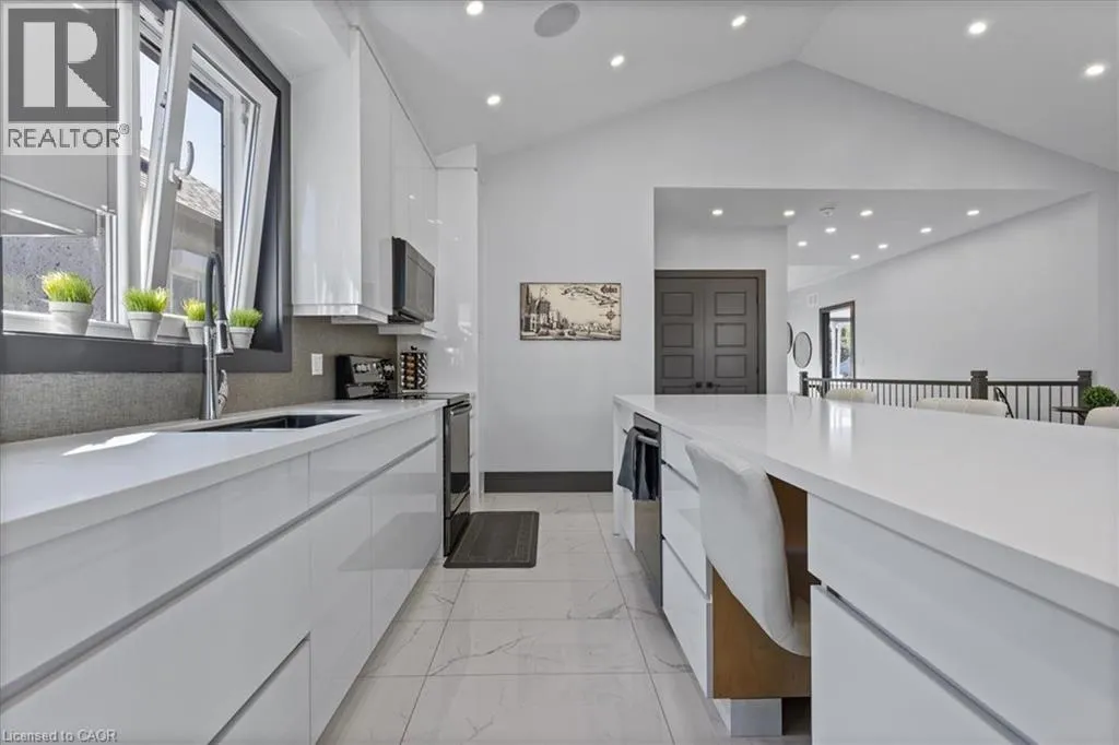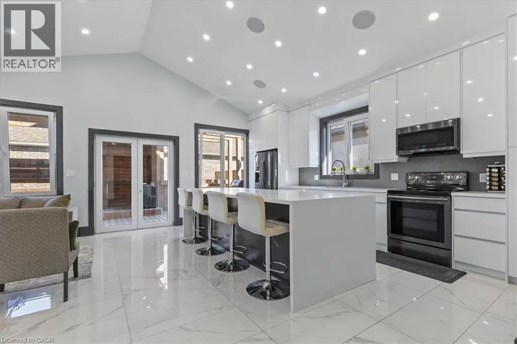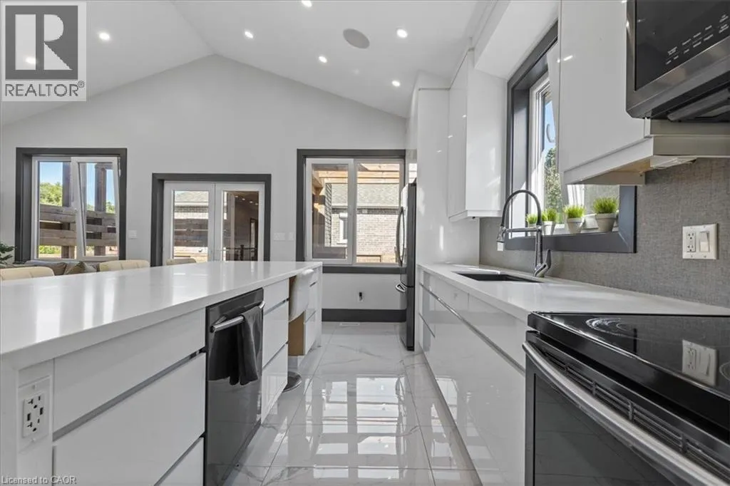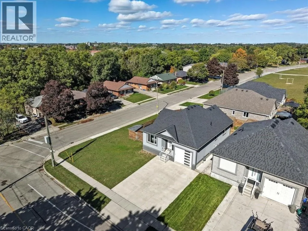 King Street East to Montrose Street North Custom built 2019 bungalow! Located in Preston North, walking distance to St Michael Catholic School, this home offers tons of structural and cosmetic updates. With over 2500 sq feet of total living space and 9â ceilings heights on each level, the home offers capacity and useability; also featured on the main level are vaulted and coffered ceiling accents. The kitchen is a modern design and offers capacity with style, featuring a four person island with waterfall countertops and stainless steel appliances. It sits adjacent to the family room, in the open space along the back of the home. The focal point is a stunning contemporary feature wall with electric fireplace insert. Smart home features are integrated throughout, including over 160 LED pot lights with diming capacity, multi zone surround sound system, and programable thermostat. The balance of the main level consists of the primary suite with walkin closet and 4 pc luxury ensuite complete with body jets and rainfall glass shower, 4 pc main bathroom, second bedroom, and laundry mud room with direct access to the garage. A hardwood staircase leads to the fully finished basement offering an oversized recreation room with wet bar rough in, 4 pc bathroom, two bedrooms, one with 3 pc ensuite. The home is carpet free with porcelain and engineered flooring throughout. For maximum comfort, an in-floor heating system organized in multiple zones spans the entire home, making sure you eliminate cold basement floors. The home is also thermally superior and safe, not only is it completely cladded in stucco, providing for a higher than required R value, it also features high quality European tilt and turn windows and doors with robust locking mechanisms and electronic exterior shutters, giving you the ability to completely shut out light during daytime if desired. The house sits on a larger corner lot with a fully fenced yard, backyard deck, and double concrete driveway. A home you need to see in person to fully appreciate! (id:27476)