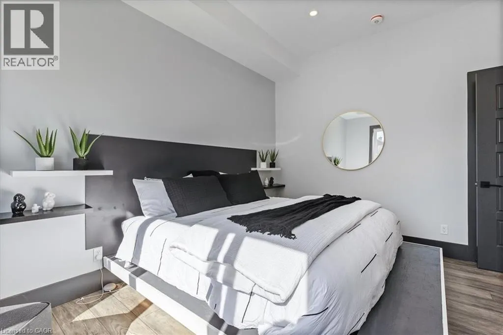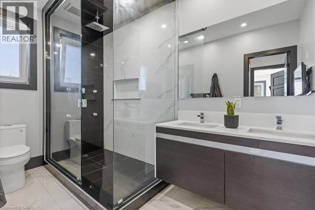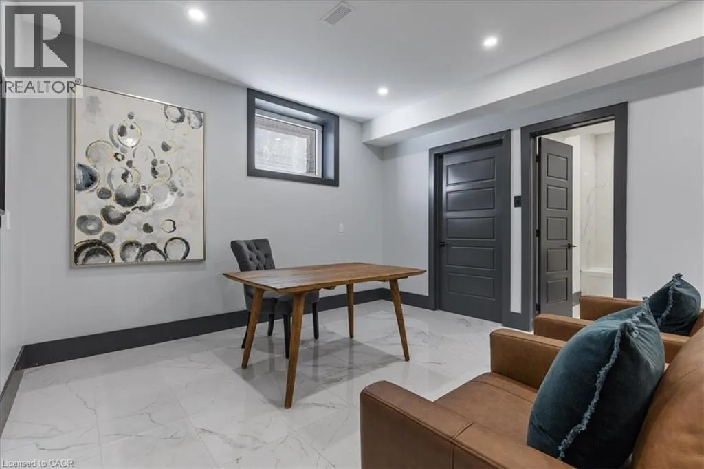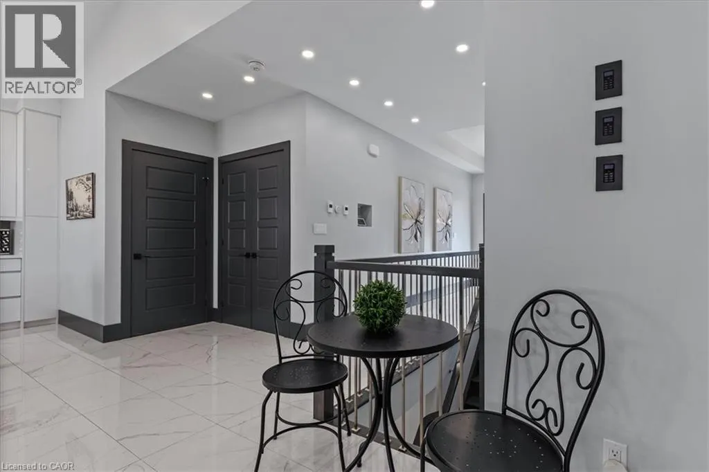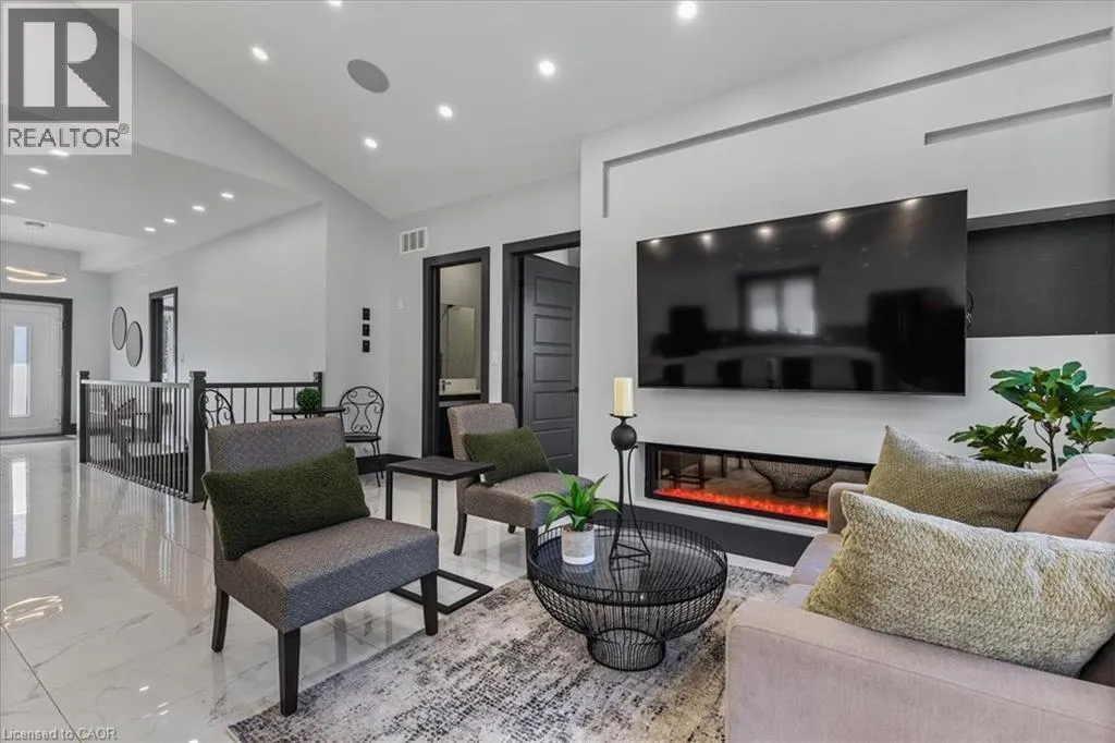 King Street East to Montrose Street North Custom built 2019 bungalow! Located in Preston North, walking distance to St Michael Catholic School, this home offers tons of structural and cosmetic updates. With over 2500 sq feet of total living space and 9â ceilings heights on each level, the home offers capacity and useability; also featured on the main level are vaulted and coffered ceiling accents. The kitchen is a modern design and offers capacity with style, featuring a four person island with waterfall countertops and stainless steel appliances. It sits adjacent to the family room, in the open space along the back of the home. The focal point is a stunning contemporary feature wall with electric fireplace insert. Smart home features are integrated throughout, including over 160 LED pot lights with diming capacity, multi zone surround sound system, and programable thermostat. The balance of the main level consists of the primary suite with walkin closet and 4 pc luxury ensuite complete with body jets and rainfall glass shower, 4 pc main bathroom, second bedroom, and laundry mud room with direct access to the garage. A hardwood staircase leads to the fully finished basement offering an oversized recreation room with wet bar rough in, 4 pc bathroom, two bedrooms, one with 3 pc ensuite. The home is carpet free with porcelain and engineered flooring throughout. For maximum comfort, an in-floor heating system organized in multiple zones spans the entire home, making sure you eliminate cold basement floors. The home is also thermally superior and safe, not only is it completely cladded in stucco, providing for a higher than required R value, it also features high quality European tilt and turn windows and doors with robust locking mechanisms and electronic exterior shutters, giving you the ability to completely shut out light during daytime if desired. The house sits on a larger corner lot with a fully fenced yard, backyard deck, and double concrete driveway. A home you need to see in person to fully appreciate! (id:27476)