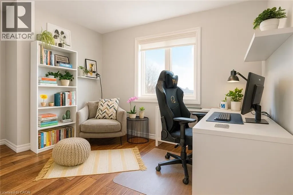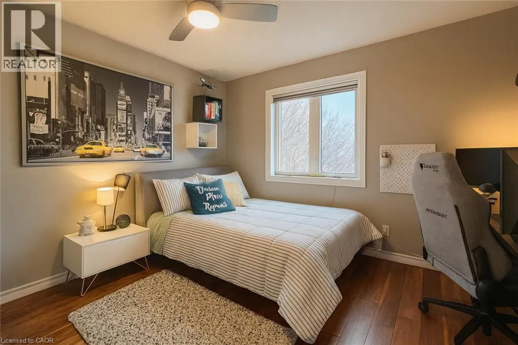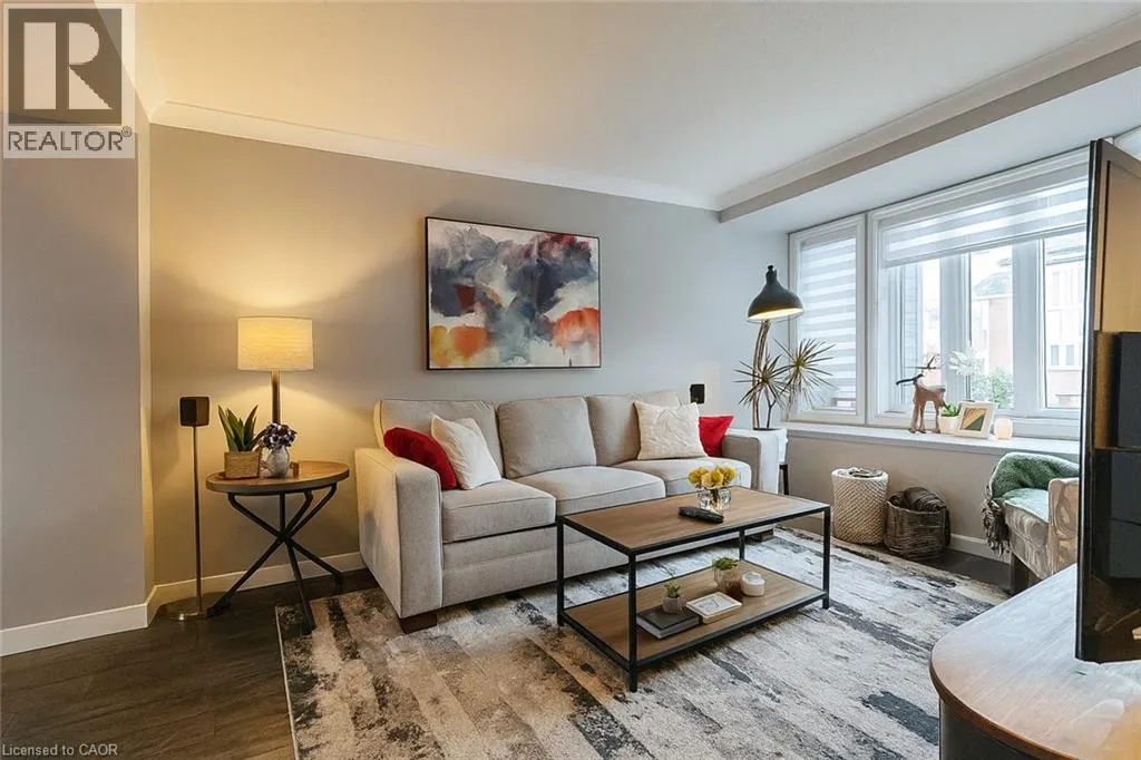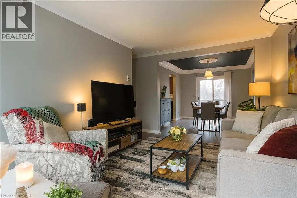 King Street East turn onto Bishop Street South Welcome to this wonderful end-unit townhome offering a spacious and functional layout, perfect for family living. The large, renovated kitchen features stainless steel appliances and ample counter spaceâideal for cooking and entertaining. All rooms are generously sized and carpet-free, with engineered hardwood flooring throughout. The finished basement opens to a lush green space in the backyard, providing a peaceful setting for relaxation. This home includes 3 bedrooms, 2 bathrooms, and 3 balconies, allowing for plenty of natural light and fresh air. The high-efficiency furnace and air conditioning system were updated just a few years ago, providing comfort and energy savings year-round. The beautifully maintained front garden and private backyard create the perfect outdoor space for barbecues or enjoying a quiet evening. Parking is convenient with an attached single-car garage (with inside access) and a private drivewayâoffering space for two vehicles. Additional storage areas can be found near the staircase, utility room, and garage. Visitor parking is just a few steps away, making it easy to host friends and family. This home is part of a well-managed condominium that includes lawn care and snow removal in common areas. Residents also enjoy exclusive access to scenic trails along the Grand River, providing a private and serene natural retreat right in the community. Located in a quiet neighbourhood close to excellent schools, shopping, highways, and hospitals, this spacious and well-maintained home truly has it all. Donât miss your opportunity to make it yours! (id:27476)