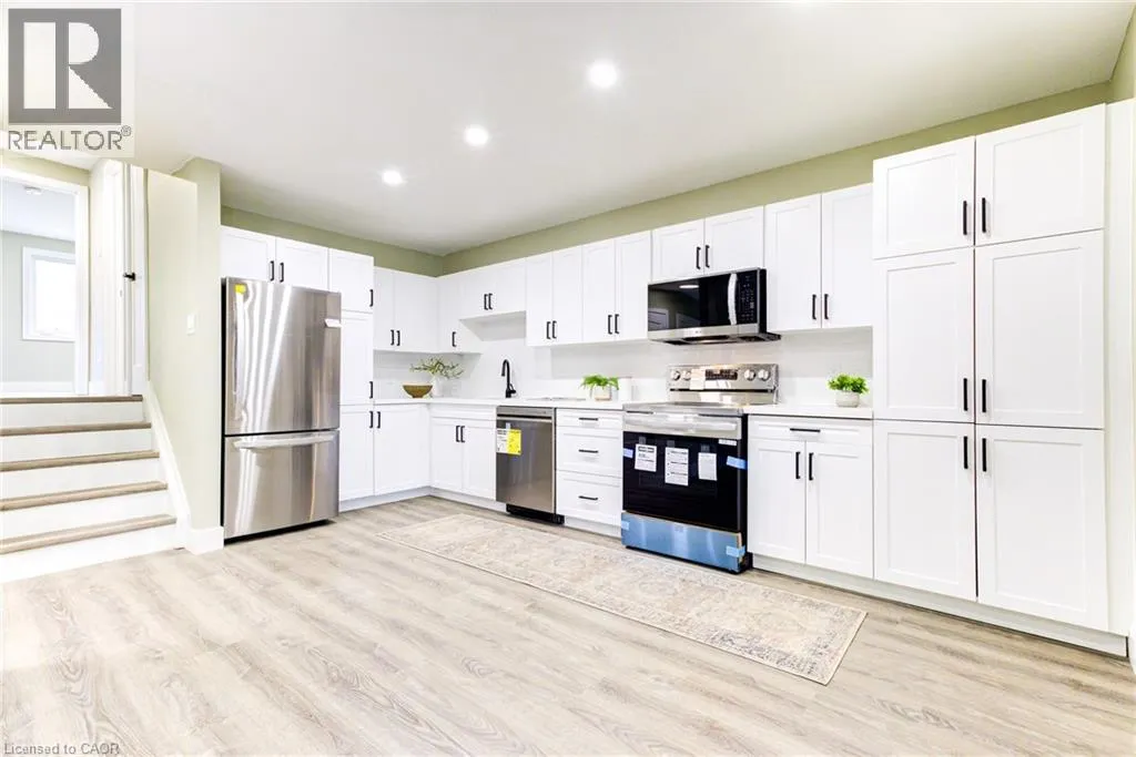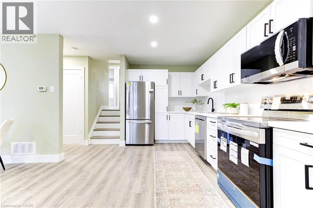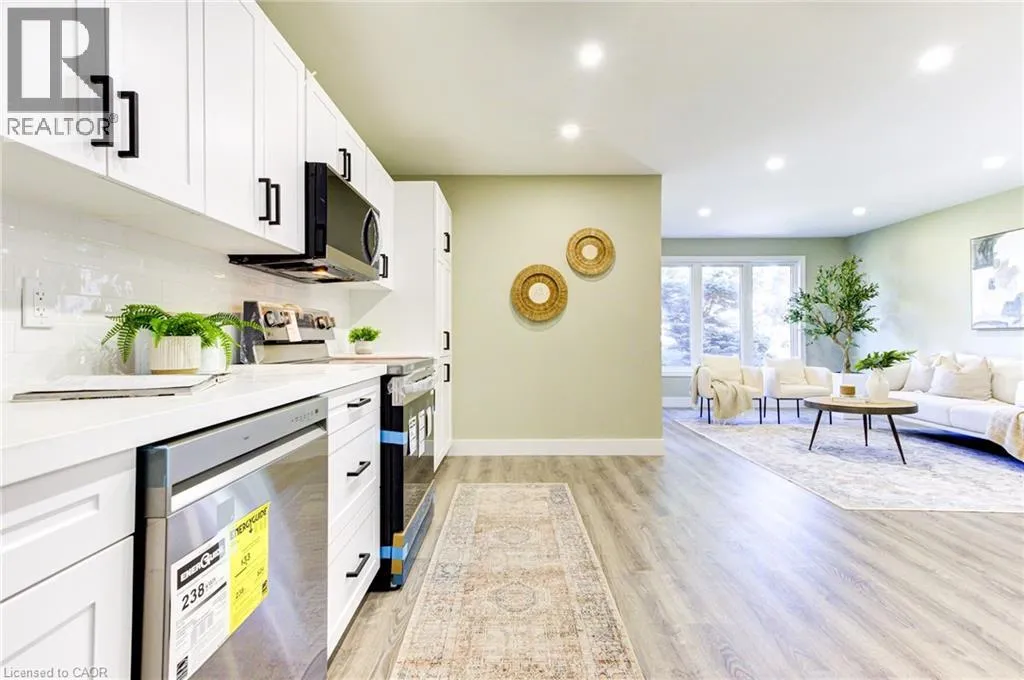 George St N to Sunset Blvd BETTER THAN NEW!! Fully finished and completely updated, this gorgeous back-split semi-detach is sitting on a huge 207ft deep lot in a quiet, mature West Galt neighborhood. Featuring a bright, open concept floor plan with 3 beds and extensive recent updates including kitchen with quartz counters and ceramic back splash, 4 pcs bath, all interior doors + hardware + trim, all new flooring, 5 new appliances, furnace (2025), air conditioner (2025), water softener and freshly painted through-out. Needing extra living space? The finished lower level offers a spacious rec room with new windows, laundry area and a large crawl space thatâs perfect for storing those occasionally needed seasonal items. Outside youâll enjoy the privacy of the huge treed yard with patio, shed and no direct rear neighbors. You shouldnât have any problems with parking as the long paved drive comfortably fits 3 vehicles. Perfect for the first time buyer and growing family alike, this beautifully updated home is located in a sought after, family friendly neighborhood just minutes to schools, shopping, parks, public transit, the historic downtown Galt District and the scenic nature trails of the mighty Grand River. Be sure to add 235 Sunset Blvd to your must see list today. (id:27476)