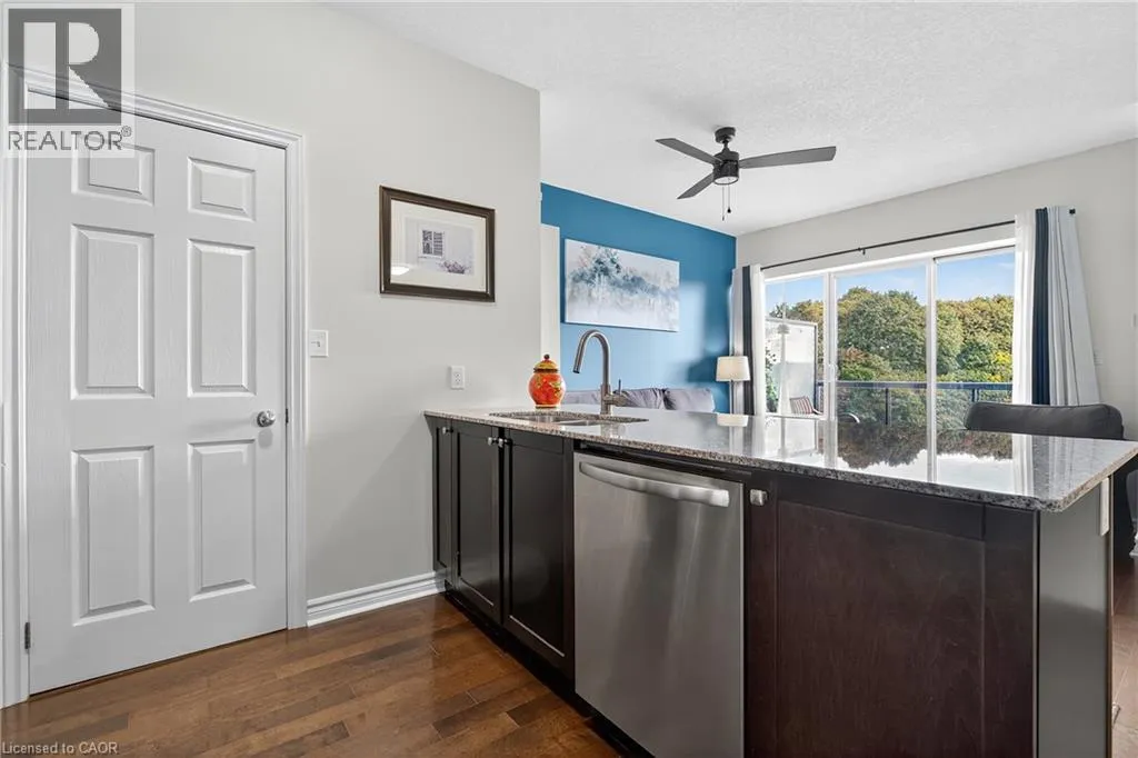 HESPELER ROAD FANTASTIC HOME FOR SALE AT WATERSCAPE ON THE GRAND RIVER! This charming 2-bedroom condo perfectly positioned along the Grand River and just moments from historic Downtown Galt. Park your car in the secure underground garage and step into a lifestyle where everything is within walking distance â scenic riverfront trails, boutique shops, fine dining, the Dunfield Theatre, outdoor patios, and more. Designed for modern living, the open-concept layout is ideal for entertaining. Large sliding doors lead to a private, covered balcony, offering peaceful views and an extended outdoor living space. The bright kitchen features ample cabinetry, stainless steel appliances, and granite countertops, while the convenience of in-suite laundry makes daily living effortless. This well-maintained building offers secure entry, an owned parking space, and a dedicated storage locker. Residents also enjoy access to a fitness room and a stunning rooftop patio complete with gas BBQs â the perfect spot to unwind or host guests while taking in the view. Live the urban riverside lifestyle just steps from the Cambridge Mill â whether you're indulging in a gourmet meal or enjoying a quiet walk along the water. Book your private tour today and experience the best of Cambridge condo living! (id:27476)