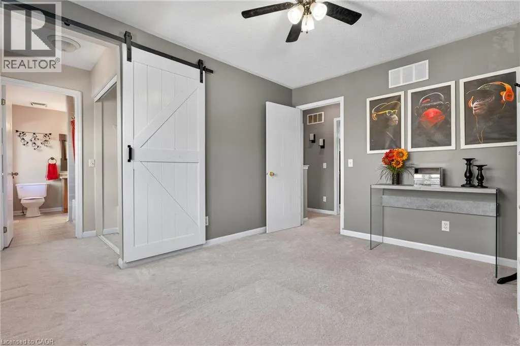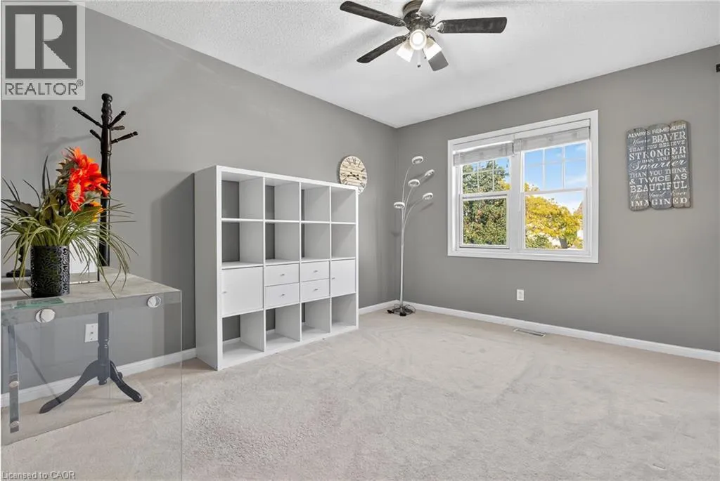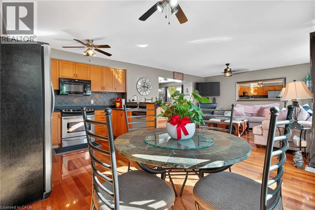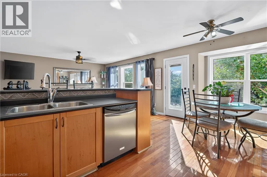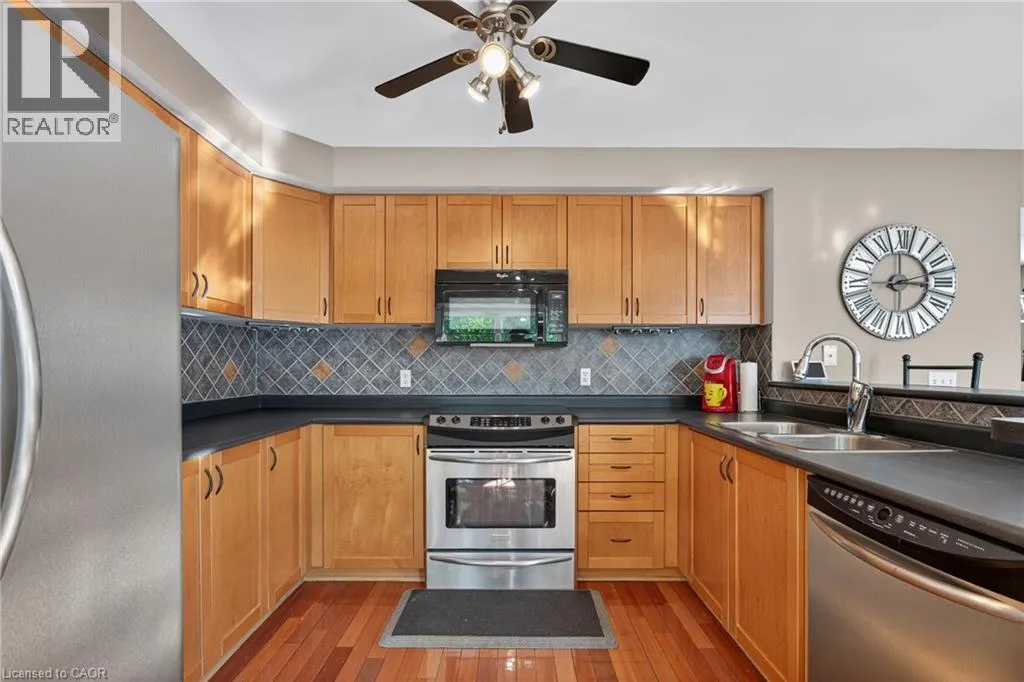 From Townline RD, take Coulthard Blvd to Arthur Fach Drive to Baggs Crescent The perfect layout for family life and entertaining! This beautiful Cambridge home features a spacious eat-in kitchen that flows seamlessly into the family room. Both spaces offer direct access to a large, private deck and backyard â making indoor/outdoor living a breeze. Picture hosting BBQs, watching the kids play, and relaxing in your own private yard. Plus a separate formal dining room. From the moment you walk in, youâll notice the thoughtful layout â a large front closet for shoes and coats, a convenient 2-piece bathroom, and inside entry from the single-car garage. Upstairs, the primary bedroom is your retreat, complete with a walk-in closet, soaker tub, and separate shower. The two additional bedrooms share a connecting bathroom, and the second-floor laundry makes life that much easier. Enjoy peace of mind with a new roof (2020), upgraded A/C (2022), patio door and rear windows (2022), plus new vinyl and aluminum board-and-batten detailing on the back northwest corner (2022). Located just minutes from Hwy 401 & Townline, this home is ideal for commuters and close to schools, shopping, golf courses, parks, arenas, grocery stores, and the mall â everything you need right at your fingertips. Donât miss this one â it truly has it all! (id:27476)