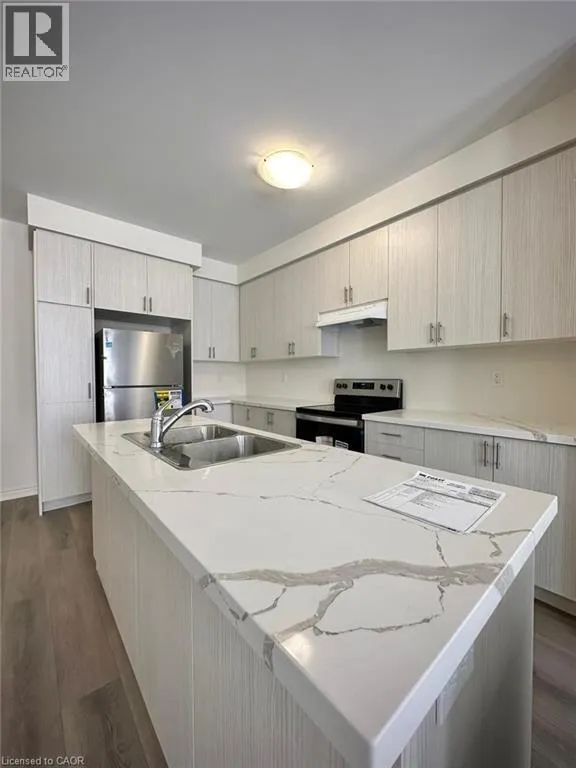 Dundas St & Atwater Dr Welcome to 10 Lidstone Street, Cambridge! Be the first to live in this brand-new townhouse, available for lease in a vibrant, family-friendly community. Offering 3 spacious bedrooms and 3 bathrooms, this home blends modern style with everyday comfort. The carpet-free main floor features elegant hardwood flooring and a sleek, contemporary kitchen with stainless steel appliances, quartz countertops, and a large islandâperfect for cooking, dining, or entertaining. From the living area, step out to a private outdoor space thatâs ideal for relaxing or hosting friends. Upstairs, the primary bedroom boasts a walk-in closet and a luxurious 5-piece ensuite. Two additional bedrooms share a bright 4-piece bathroom, and convenient upper-level laundry adds ease to your daily routine. With an attached garage, driveway parking, and quick access to highways, parks, schools, and shopping, this home offers both comfort and convenience. Donât miss the chance to make this beautiful, never-lived-in property your new home book a showing today! (id:27476)