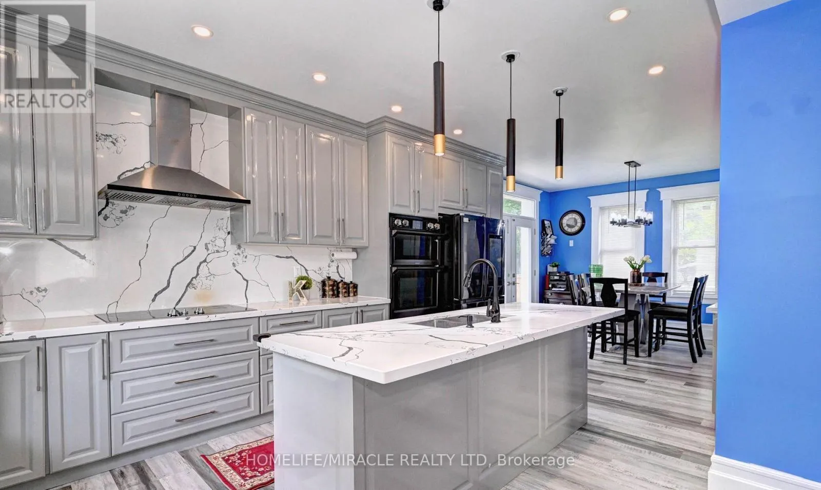 HAMILTON STREET & CHURCH A Magnificent Home Out Of Designer's Magazine On A Huge Lot Of 66 X 165 Feet !! More Than 130K Spent On High End Renovation. It has newer steel tiled roof with opening skylights, all newer doors and windows, spray foam insulation throughout the shell of the home, sound proofing on each floor, fully drywalled and painted on all 4 levels, new flooring throughout, 200A service and electrical all ESA approved, extensive pot lighting, all new ABS and PEX plumbing, new bathroom fixtures including a steam shower with jets in the primary bathroom and claw bathtub in the main bathroom, newer furnace/central air/hot water tank, repointed stone and brickwork. All the work that has been completed to date was done with City Permits which are stamped and engineered approved. The finish basement with 4 large windows has a 3pc in bathroom. Newly made detached garage with remote opener. Finished Basement With Separate Private Entrance. Also A Great Location For Those Looking For Quick Access To Hwy 401. Within Walking Distance Of Schools, Shopping. (id:27476)