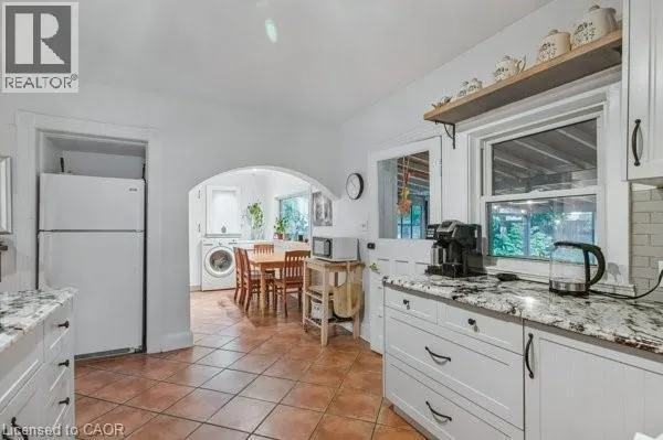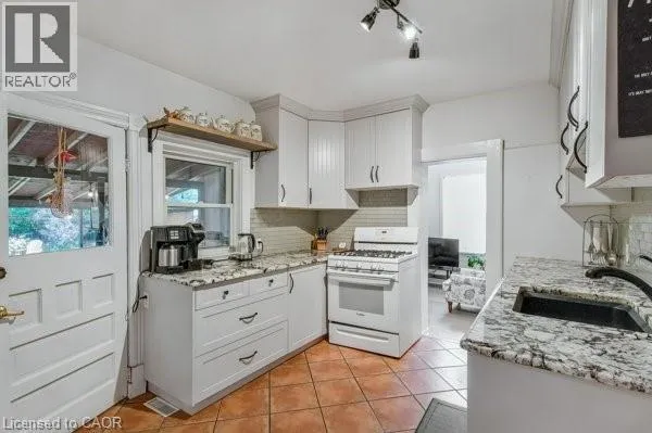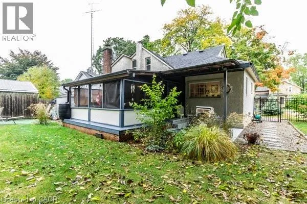GLENMORRIS Nestled on a quiet tree-lined street in one of West Galtâs mature neighbourhoods, this charming bungalow offers a beautiful blend of character, comfort, and potential. Perfectly positioned near shopping, schools, and everyday amenities, this home provides both convenience and a sense of retreat. Inside, the main floor showcases a bright and spacious living and dining area with timeless hardwood flooring, complemented by an inviting eat-in kitchen featuring granite countertops and a cozy breakfast nook. Three well-sized bedrooms and a warm family room centered around a wood-burning fireplace create the ideal setting for both relaxation and gatherings. Step through to the screened-in porch, a serene spot to unwind and enjoy quiet afternoons or evenings outdoors. The unfinished loft presents an exciting opportunity to expand and personalize, while the lower level provides abundant storage or potential for future living space. Outside, the beautifully landscaped backyard is a true highlight on an oversized, private oasis surrounded by mature trees. Whether hosting summer get-togethers or enjoying peaceful evenings by the fire, this space captures the feeling of a cottage escape right in the city. With its inviting interior, expansive lot, and exceptional West Galt location, this is a rare opportunity to own a home that combines timeless charm with endless possibilities. (id:27476)