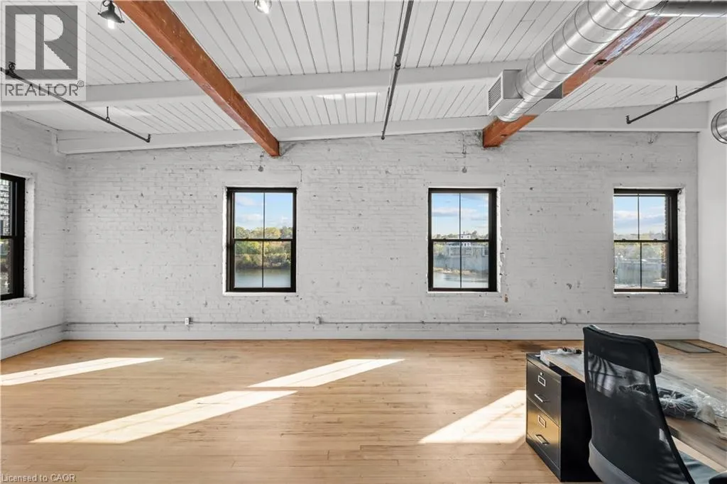 North of Park Hill Road on George Street Bright, open loft office located on the Grand River, across from the Cambridge Mill. Features ample natural light, views of the Grand River, easy access to walking trails and ample parking. A combination of open office space and private offices. Just 10 minutes from Highway 401 and steps from downtown amenities. Suite comes with access to a shared kitchen Soon to open Willibald Pizza is located on the ground floor; ideal for lunch and treating your staff or clients. Join the growing community of Downtown Galt (id:27476)