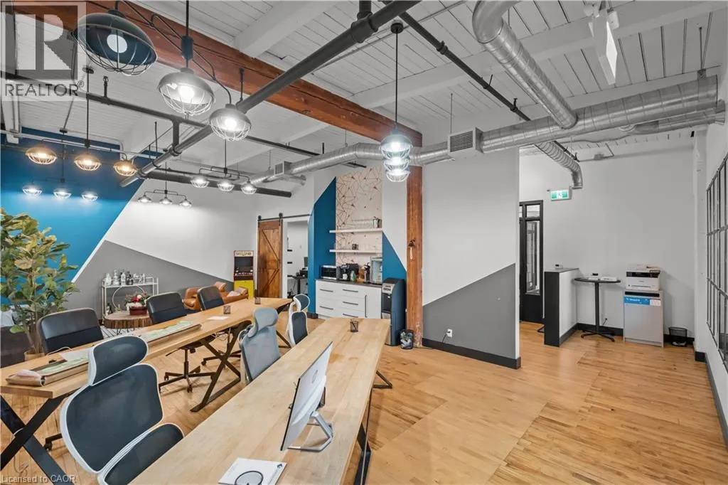 North of Park Hill Road on George Street Brick and beam loft office located on the Grand River, across from the Cambridge Mill. Located in a historic building, easy access to walking trails and ample parking. Just 10 minutes from Highway 401 and steps from downtown amenities. Suite comes with access to a shared kitchen. Soon to open Willibald Pizza is located on the ground floor; ideal for lunch and treating your staff or clients. Join the growing community of Downtown Galt. (id:27476)