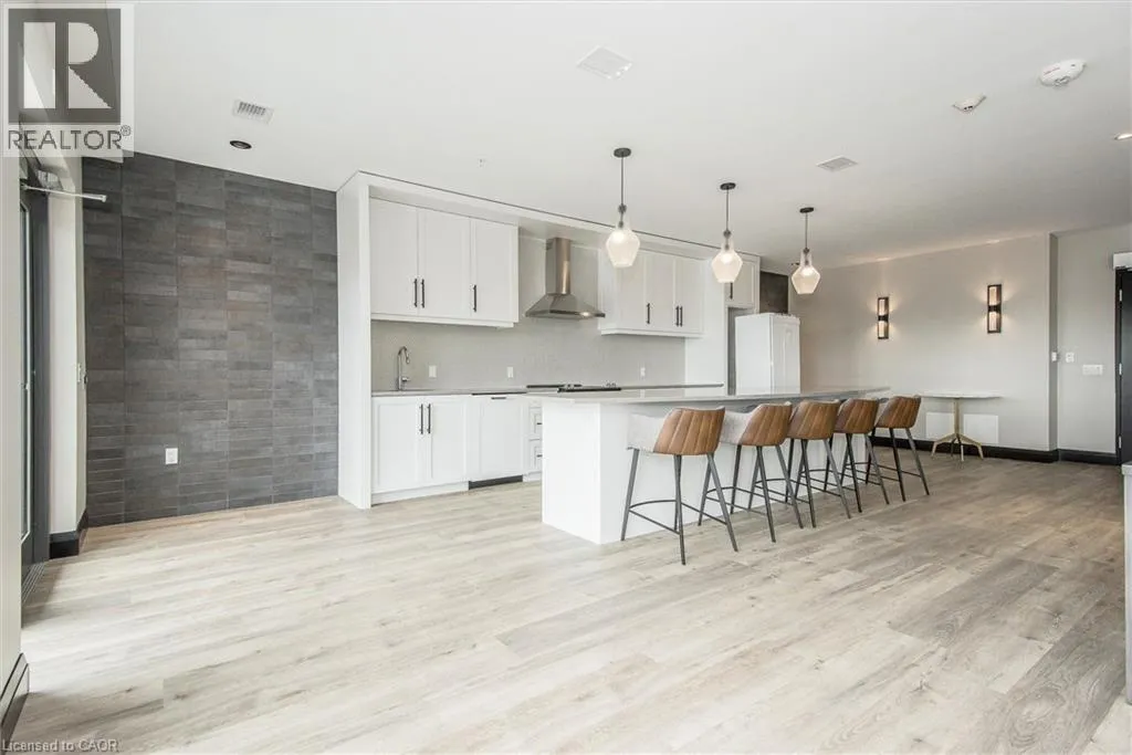 Grand Avenue A True Gem in The Gaslight District! Discover this lovely 2-bedroom, 2-bathroom corner condo just steps from the Grand River, offering spectacular treed views of West Galt. With 9-foot ceilings, laminate flooring, and an open-concept layout, this home combines style with comfort. The spacious living room flows into a modern kitchen featuring sleek white cabinetry, quartz countertops, upgraded stainless steel appliances, and a large island perfect for cooking and entertaining. Enjoy direct access to the full-width balcony from both the living room and the primary suite. The primary bedroom includes two closets and a spa-like 4-piece ensuite with double sinks and a walk-in shower. A second bedroom, full 4-piece bath, and convenient in-suite laundry complete the space. One parking spot is included. Being a corner unit not only do you get extra windows, but you get a fantastic view of both the North and West sides of the building. Residents enjoy exceptional amenities: numerous lounges, games room with billiards and ping pong, a state-of-the-art fitness and yoga studio, stylish party room with bar, co-working spaces, and multiple outdoor terraces overlooking Gaslight Square, complete with fire pits, pergolas, and BBQs. Step outside to enjoy the vibrant lifestyleâwalk the Grand River trails or explore downtownâs cafes, shops, and the weekend Farmerâs Market. Experience the best of The Gaslight District- with events and fabulous restaurants! Book your private showing today! (id:27476)