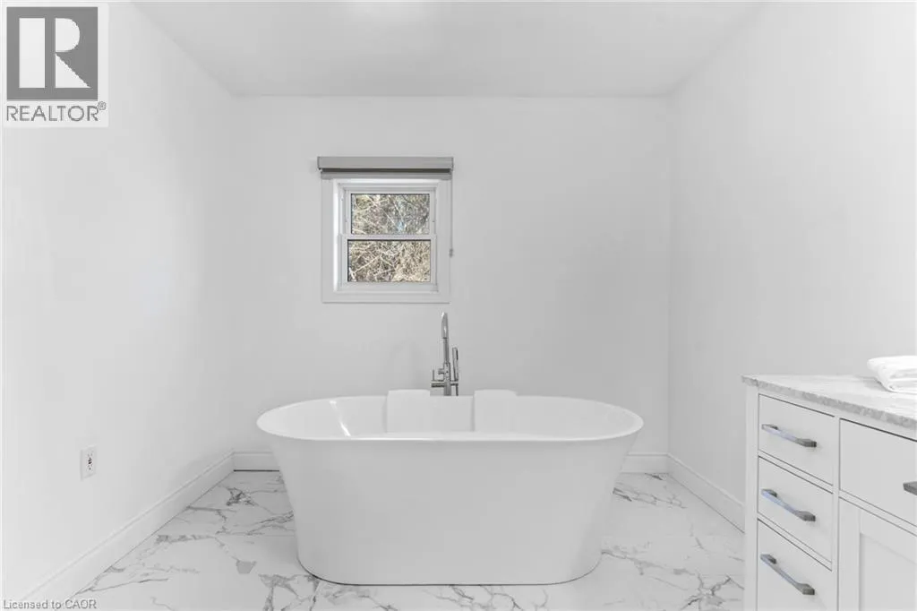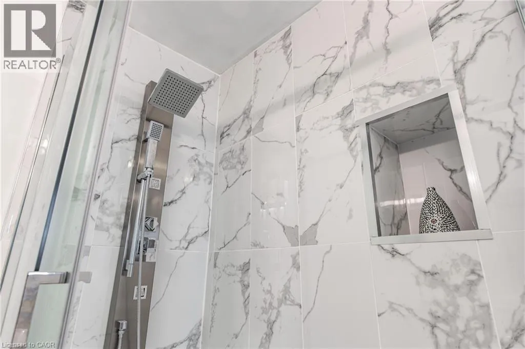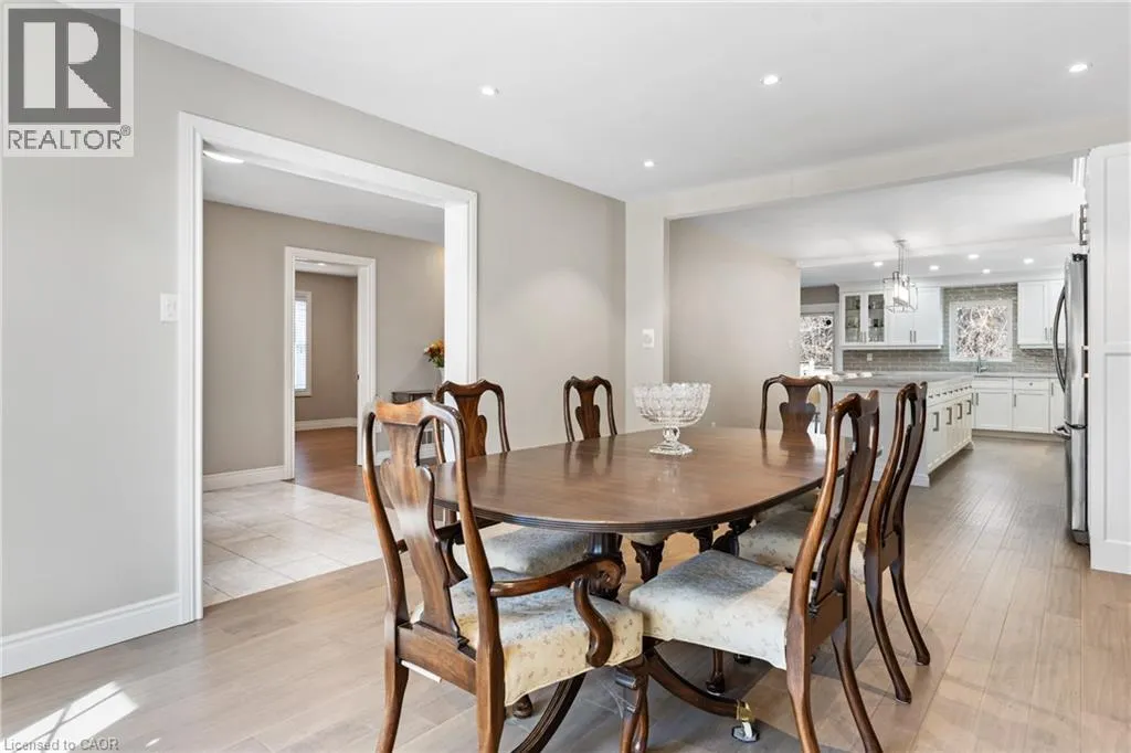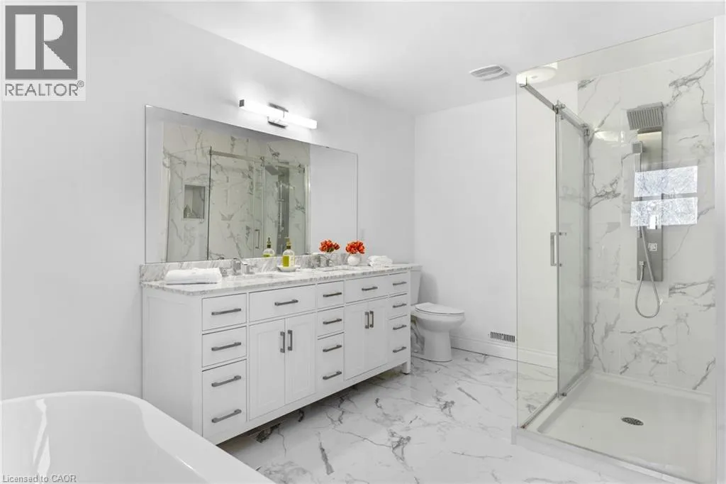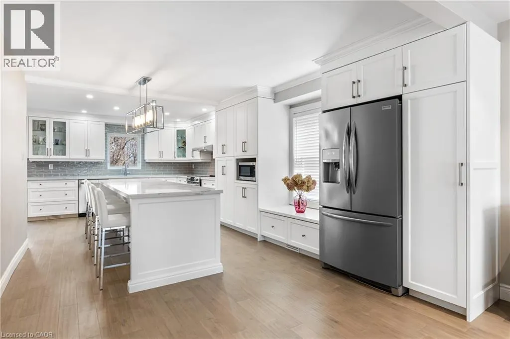 Myers Rd to Lisbon Pines to Santa maria Drive With almost 4ooo sqft of usable space, you will have plenty of room for the entire family. This home has had an amazing transformation that was completed in 2022 with every detail on point. As soon as you enter the front door you will quickly be impressed. On the main floor there is a powder room, laundry with entry to the garage, a door to the side yard and an office space which could also be used as a guest bedroom. Now the show stopper, the rest of the main floor is open concept! There are no walls between the family room, kitchen and dinning room. The kitchen was custom designed by Barzotti. Beautifully crafted and includes a giant 10-foot island that easily sits 6 people, quartz counter tops, stainless-steel appliances. Upstairs: Massive primary bedroom with ensuite (soaker tub, glass shower, double sinks), a large walk-in closet, 3 more large bedrooms and a full washroom. Downstairs: two bonus rooms, rec room, kitchenette and full washroom, large storage room and cold room. Backyard: gorgeous stone patio approximately 560 sqft (2023), and a shed. Private yard with no back neighbors, a gate at the back fence to take walks through the forest which leads to Santa Maria Park. Great location. Close to schools, shopping, parks, river trails, and quick access to 401 or 403. (id:27476)