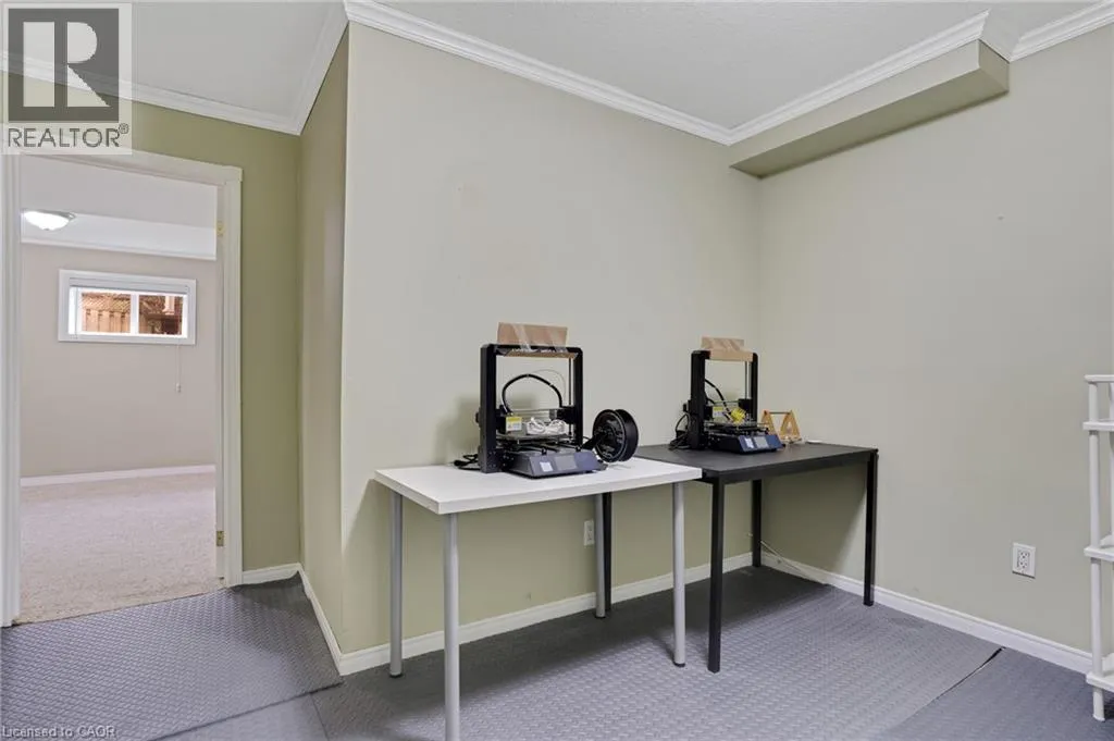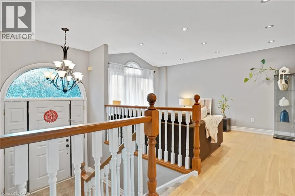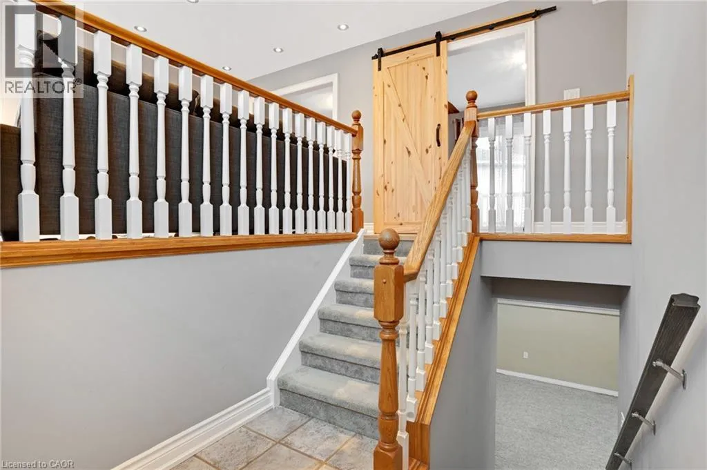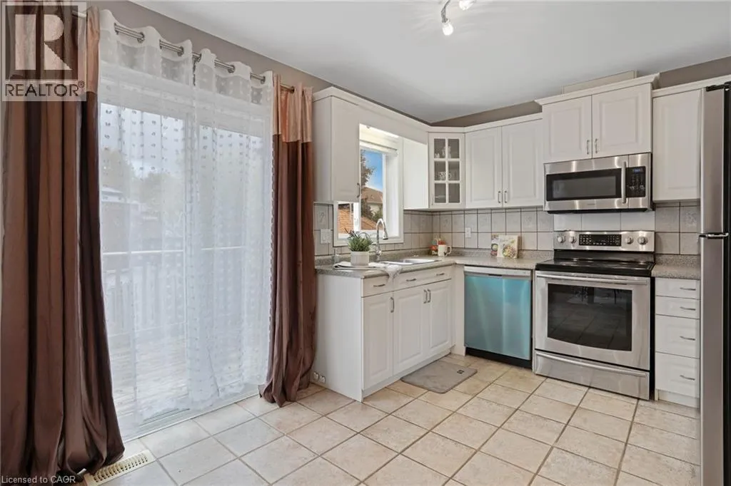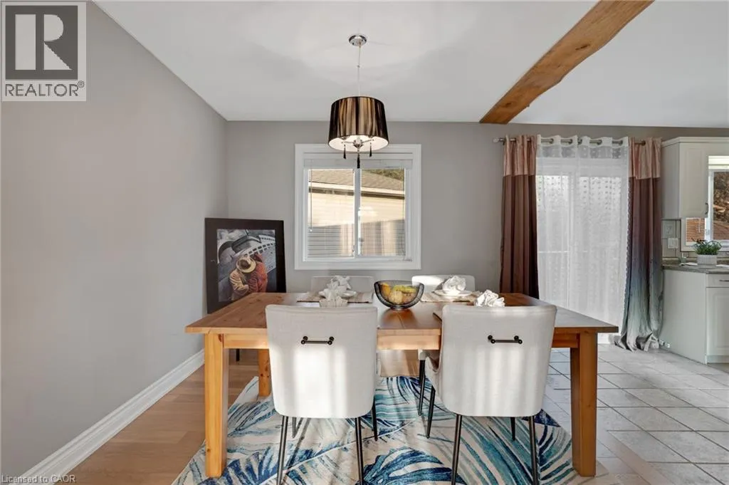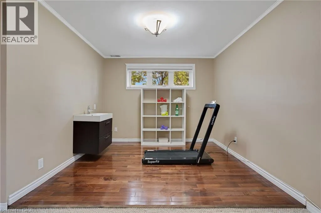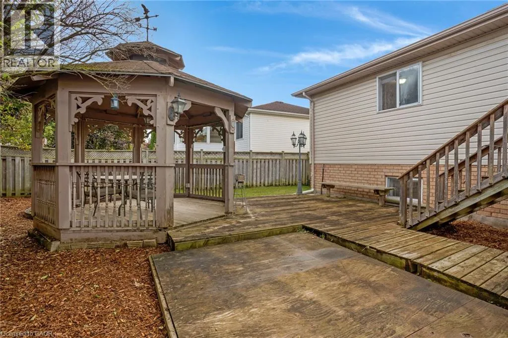 Grand Ridge Drive to Stirling MacGregor This 3-bedroom, 2-bathroom raised bungalow with in-law potential offers plenty of living space, a 2-car garage, and a large fenced-in yard. The main floor features updated engineered hardwood throughout the living room, dining room, hall, and bedrooms. The bright kitchen has a sliding door to the back deck and is open to the dining room. The primary bedroom is large and includes double closets. Two more good-sized bedrooms and a 4-piece main bathroom with skylight complete the level. The finished basement is spacious and filled with natural light, and offers a great opportunity to create a in-law setup or rental unit. There is a large rec room with a gas fireplace, an exercise area (previously set up as a bar), a huge 4-piece bathroom, a bonus workshop, and a laundry/utility room. Outside, youâll enjoy the fully fenced yard with lots of space, a deck, a gazebo, and a shed. Directly across the street is a playground and baseball diamondâperfect for families. Located in the desirable St. Andrews/Southwood neighbourhood of Cambridge, this home offers tree-lined streets, great schools, and a strong sense of community. With quick access to parks, shopping, and nearby commuter routes, itâs an ideal place for both families and professionalsâdonât miss your chance to make it yours and book your showing today! (id:27476)