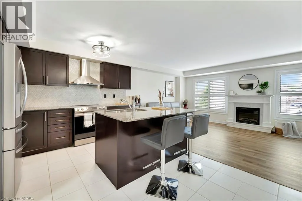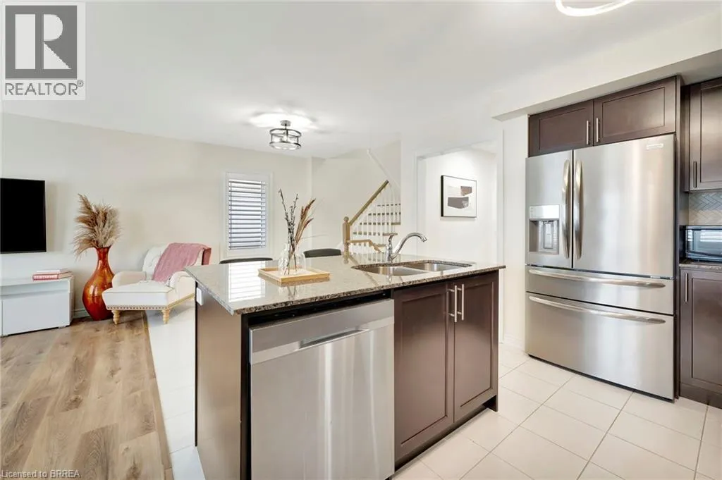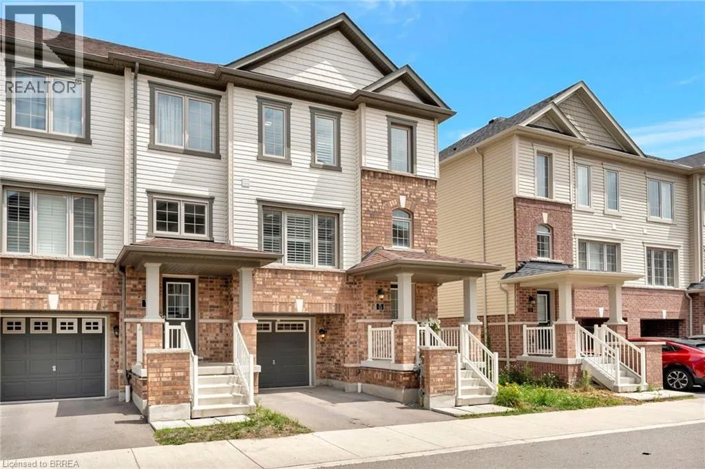 Fountain Street South to Linden Drive Welcome to 10-755 Linden Drive, an incredible end unit townhouse in one of Cambridges most desirable and convenient neighbourhoods. Built in 2020, this home combines modern design, thoughtful upgrades, and a functional layout ideal for all. Spanning over 3 storeys, this home offers 2021 sqft of finished living space, with 4 bedrooms and 3 bathrooms. The open-concept main floor showcases a stylish kitchen with granite countertops, upgraded backsplash and range hood, and refreshed cabinetry. New flooring throughout most of the home and updated interior light fixtures add to the sleek, contemporary feel. In addition to the spacious kitchen with island, the main floor offers a formal dining area, powder room, and large living room flooded with natural light. Upstairs, the incredible primary bedroom includes a private 4-piece en-suite bathroom and generous walk-in closet. Two additional well-appointed bedrooms, a 4 piece bathroom, and laundry are on this upper level. The lower level provides interior access to the garage, and a fully finished 4th bedroom with a sliding glass door walk-out to a fully fenced backyard. The backyard features an additional side-gate access, and is perfect for outdoor entertaining or family living. Conveniently located just minutes to Highway 401 and 7/8, Conestoga College, shopping, restaurants, public transit, and all major amenities, this home offers the perfect blend of comfort and connectivity. Don't miss this opportunity to own a move-in-ready townhouse in a growing Cambridge community! (id:27476)