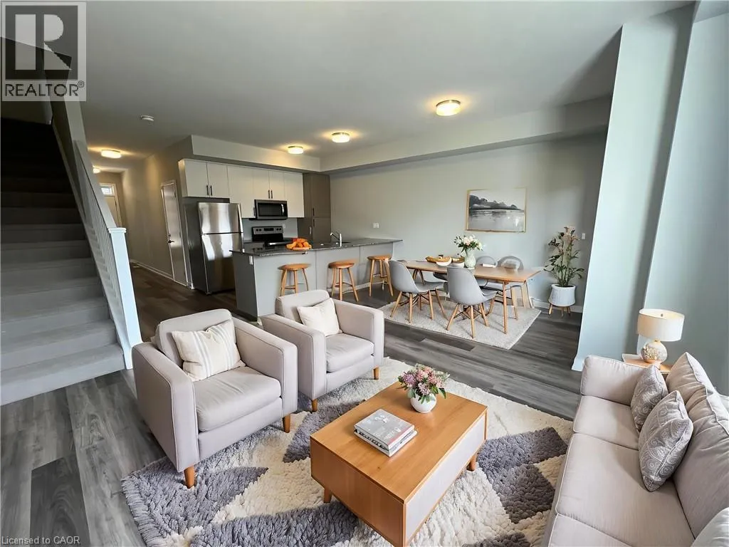 QUEEN STREET E/TOWNLINE ROAD MODERN LIVING IN NATUREâS SERENITY! This exclusive community, overlooking the serene Speed River, presents modern townhomes exquisitely designed. This Cedar model boasts granite countertops, luxury vinyl plank flooring throughout, stainless steel appliances, and scenic balcony views from the spacious living/dining room. With 3 bedrooms and 2.5 bathrooms, including a primary suite featuring a contemporary glass-enclosed shower, the Cedar model offers a blend of luxury and comfort. Spanning over 1400 square feet, this home includes an unfinished walk-out basement. Nestled in the heart of Hespeler, just steps away from Hespeler Village, residents can indulge in the offerings of artisan bakeries, shops, and craft breweries. Embrace an active lifestyle with nearby scenic cycling trails, such as those near Forbes Park and the Mill Pond Trail leading to Ellacott Lookout. Only minutes away from the 401, ensuring easy access to major transportation routes. The tenant pays utilities including water, hot water heater, gas, tenant insurance, and hydro. Available Jan 1st. PHOTOS are staged. (id:27476)