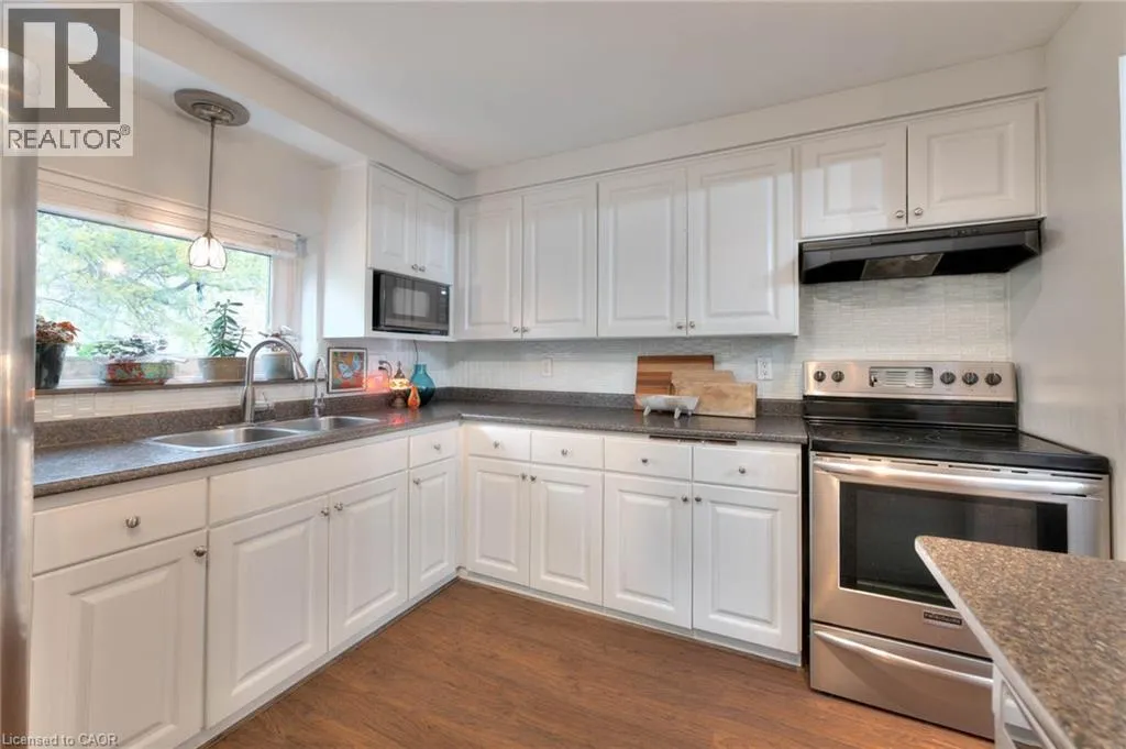 Franklin St. to Glamis Rd. A Charming Row Townhouse in a Prime Location - Welcome to a beautifully maintained row townhouse that perfectly blends comfort, style, and convenience. Nestled in a vibrant and family-friendly neighborhood, this home offers an ideal setting for first-time buyers, downsizers, or anyone seeking low-maintenance urban living. Features: 3 Spacious Bedrooms with ample closet space and natural light, 1.5 bathrooms, open-concept main floor with a bright living and dining area - perfect for entertaining, bright kitchen with stainless steel appliances, and plenty of counter space, private fenced backyard deck ideal for summer BBQs or morning coffee, designated parking spot - only steps from the unit, ample visitor parking, and a finished basement offering a great size laundry room, half bath, storage space and a versatile space for a home office, gym, or media room. Make note of recent updates; painted throughout the entire unit (September 2021), new flooring on stairs leading upstairs and the second level along with new banister and railings (Sept 2021), installed sliding mirrored doors in the primary bedroom (October 2022), installed new light fixture in dining room (October 2022), new furnace and AC unit (purchased in March 2024), refreshed kitchen and bathroom cabinets with paint and new hardware (October 2022), repainted second bedroom (October 2025). Community Highlights: Steps from parks, schools, and walking trails, close to shopping centers, restaurants, and public transit, and easy access to major highways for commuters. This row townhouse is a rare find that combines modern living with a warm, community-oriented atmosphere. Whether you're starting a new chapter or looking for a smart investment, this home checks all the boxes. (id:27476)