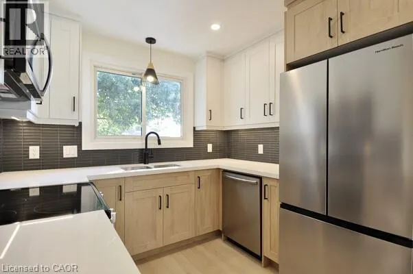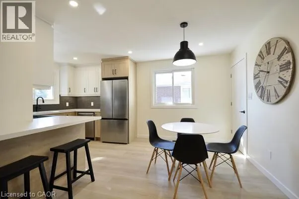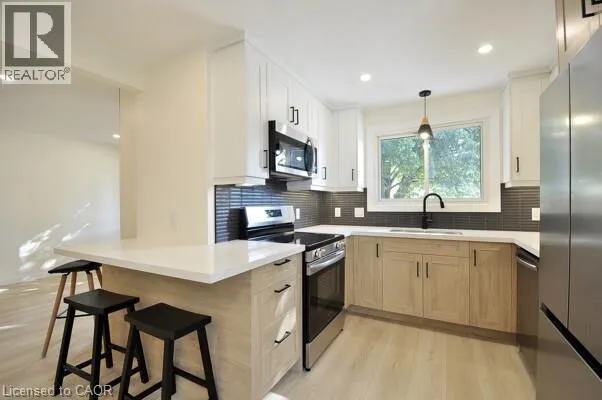 Moffat Dr Scandinavian style Backsplit is ready for your next stage in life. Located is East Galt this home has a condo inspired feel but with land to enjoy. With 3 bed 2 bath and countless upgrades. Custom two tone kitchen with quartz countertops undermount led lighting , 4 new SS appliances. New doors paint and trim. High end vinyl flooring throughout. Bright Clean basement with new 3 piece bathroom and Wet bar to enjoy. Parking for three and newly sided shed. (id:27476)