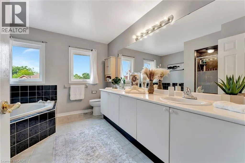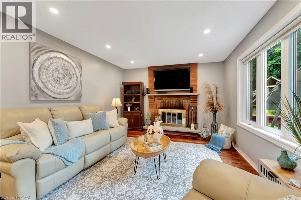 FRANKLIN/HILBORN Welcome to 72 Hilborn Avenue â a meticulously cared-for, all-brick home located in one of Cambridgeâs most sought-after communities. This bright and airy property features an adaptable floor plan with four spacious bedrooms, three full bathrooms, and a main-floor powder room â perfectly suited for families or those who love to host guests. Enter through elegant French doors into an inviting foyer that leads to a thoughtfully designed main level, which includes a formal living room with an electric fireplace, a separate dining area, a cozy family room warmed by a wood-burning fireplace, and a dedicated office ideal for remote work. The updated kitchen boasts stainless steel appliances, ceramic flooring, abundant cabinetry, and a charming breakfast nook with access to the backyard deck an ideal spot for morning coffee or evening relaxation. Upstairs, the primary bedroom features a delightful reading nook, two generous walk-in closets, and a stunning five-piece ensuite bathroom with a soaker tub. Three additional large bedrooms offer ample natural light and storage, completing the upper floor. The fully finished basement expands the living space with a spacious recreation area, a remodeled three-piece bathroom, a bonus room suited for wellness or creative pursuits, and plentiful storage throughout. Outdoors, the property backs onto the tranquil Shades Mill Conservation Area, providing ultimate privacy with no rear neighbors. The fenced, tree-lined yard is a private sanctuary, featuring an above-ground pool, an expansive deck perfect for dining or lounging, and extensive garden space for green-thumb enthusiasts. Additional highlights include a double-car garage, a four-car concrete driveway, and close proximity to excellent schools, parks, walking trails, shopping hubs, and convenient highway access. Seize the opportunity to own this exceptional home nestled in a serene, nature-rich environment â ideal for creating lasting memories with loved ones. (id:27476)