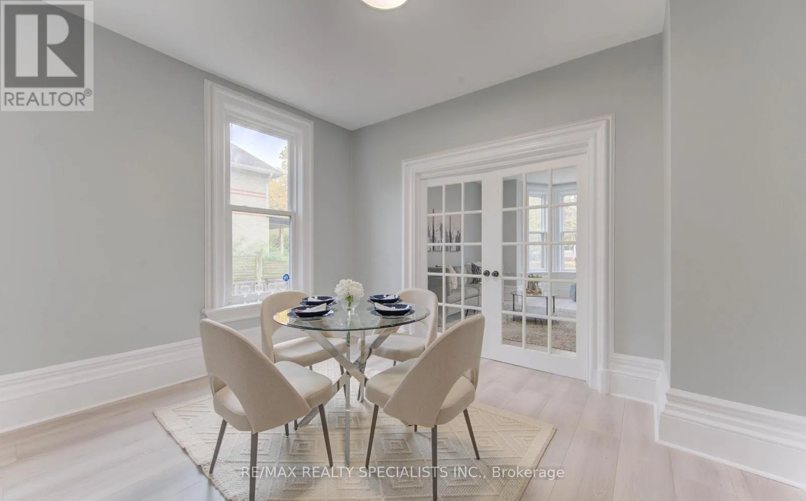 Main St/Cathay/Pollock Discover the perfect blend of historic charm and modern upgrades in this beautifully refreshed century home, ideally situated on a premium corner lot near downtown Cambridge. Recently updated from top to bottom-inside and out-with fresh paint, new flooring, modern lighting, and upgraded bathrooms, this property offers exceptional versatility for both residential and commercial use. The main floor, previously used as a doctor's office and a paving company's office for several years, features three separate entrances, 10' ceilings, and three spacious rooms, along with a 3-piece bath and a kitchen-ideal for professionals such as lawyers, chiropractors, hairdressers, or doctors looking to operate a business from home. The upper-level apartment showcases stunning Brazilian hardwood floors, a marble-accented 3-piece bath, a spacious bedroom, open-concept living/dining area, and an eat-in kitchen with a gas range and a built-in island with sink. From the kitchen, step out to a freshly painted deck with a gazebo, perfect for relaxing or hosting BBQs. Outside, enjoy ample parking with a triple-wide paved driveway on one side and an extra-deep (over 70 ft) single driveway(unpaved) on the other. Located just minutes from Cambridge's downtown core, with access to city offices, shops, and restaurants, this property truly offers a live-and-work-from-home opportunity you don't want to miss! Note : This Property have 3 Separate Entrances to house and 2 Separate Civic Address as well : 22 Cathay St & 55 Pollock Ave, Cambridge. (id:27476)