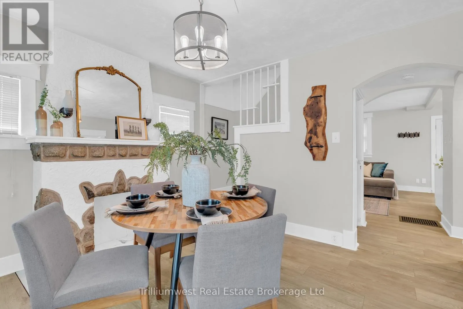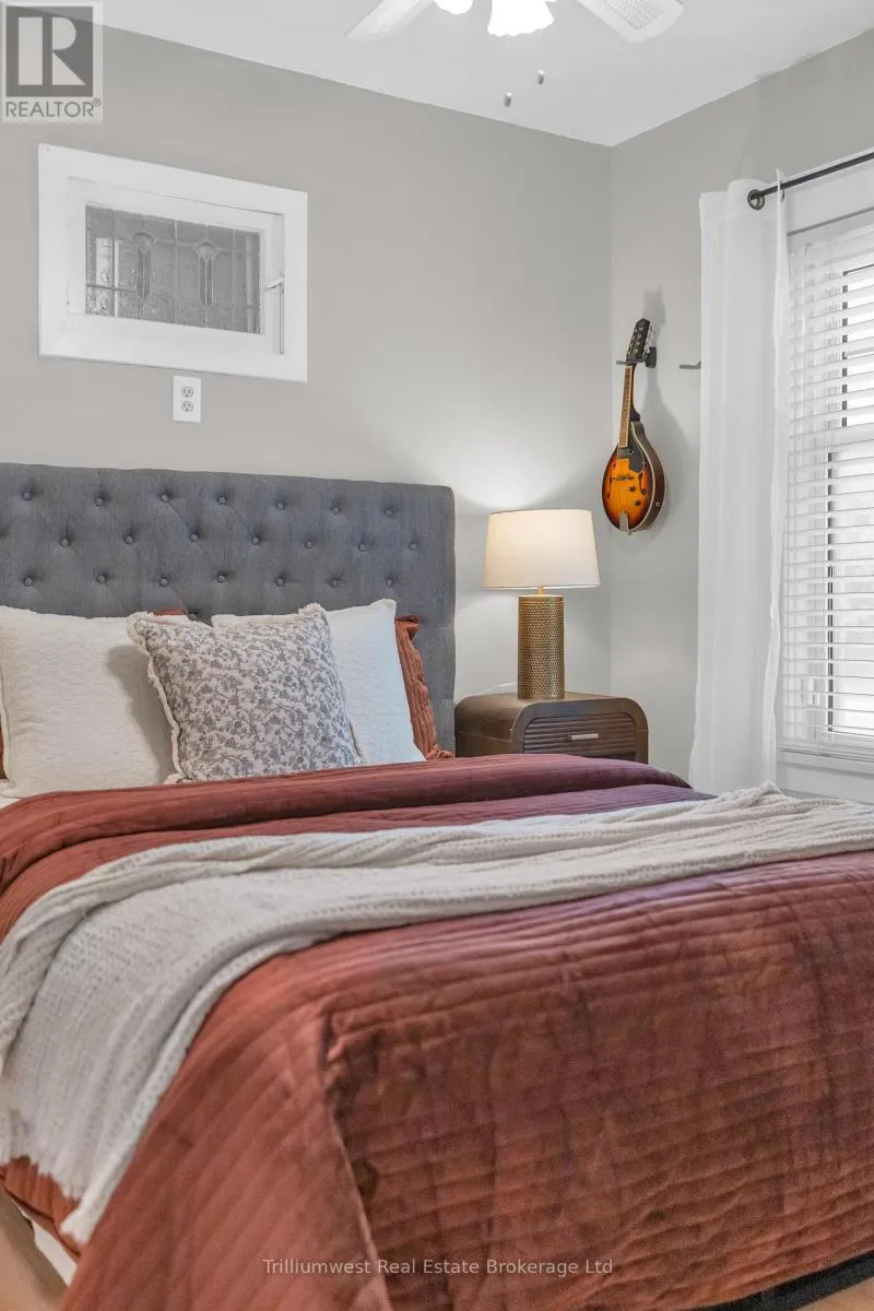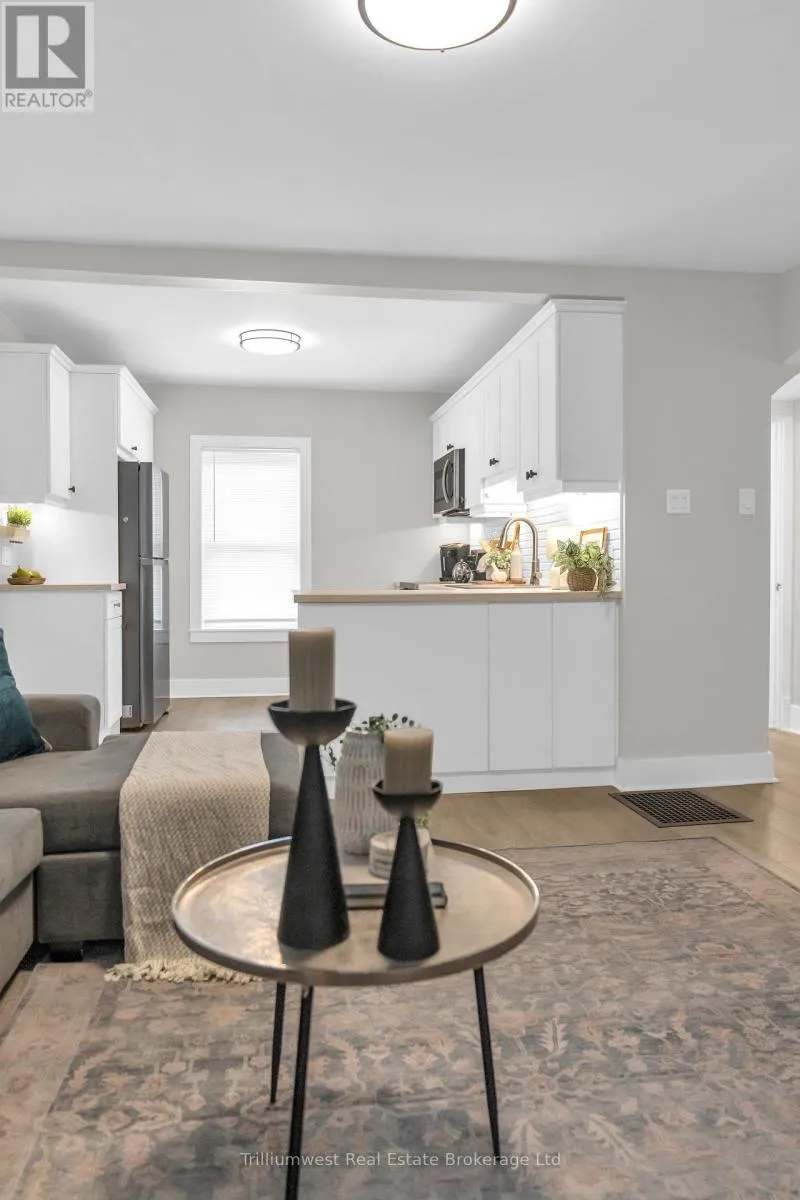 Cross Streets: Beverly St and Dundas St N. ** Directions: Hwy 24 to Dundas St N. This beautifully updated cottage-style home in desirable East Galt seamlessly blends timeless character with contemporary finishes. The inviting exterior showcases modern stucco paired with expertly crafted stonework, setting the tone for what awaits inside. Step onto the spacious covered front porch and enter a home where every detail has been thoughtfully updated. The stunning fireplace in the front room echoes the homes exterior, featuring a unique stucco and stone façade with a vintage electric log insertadding both warmth and charm. This versatile space can serve as a formal dining area or a cozy sitting room. Elegant arched doorways and new laminate flooring lead to an open-concept living room and an updated kitchen complete with white cabinetry, stainless appliances, ample storage, under-cabinet lighting, a built-in fridge, beveled subway tile backsplash, and a Silgranit sink. Just off the kitchen, a new rear deck provides ideal space for outdoor dining and entertaining. The main floor also includes a spacious bedroom with a large window and a stunning modern farmhouse bathroom featuring a wood-accented ceiling, subway tile tub surround with dark grout, and a sleek vanity with an integrated sink. Upstairs, you'll find two additional well-appointed bedrooms with stylish accent walls and ample storage. The basementwith a separate entranceoffers potential for an in-law suite, income property, or extended living space. Situated on a generous 132-foot deep lot, the property offers parking for 8+ vehicles, plus an oversized two-car garage/workshop with electricalperfect for hobbyists or trades. The new fully fenced backyard includes a custom rolling gate, a new deck with privacy screens, and plenty of room for entertaining or play. Additional upgrades include newer windows, furnace, electrical, and plumbing making this home truly move-in ready. Ideally located near parks, trails, schools, and major amenities, this is East Galt living at its finest (id:27476)