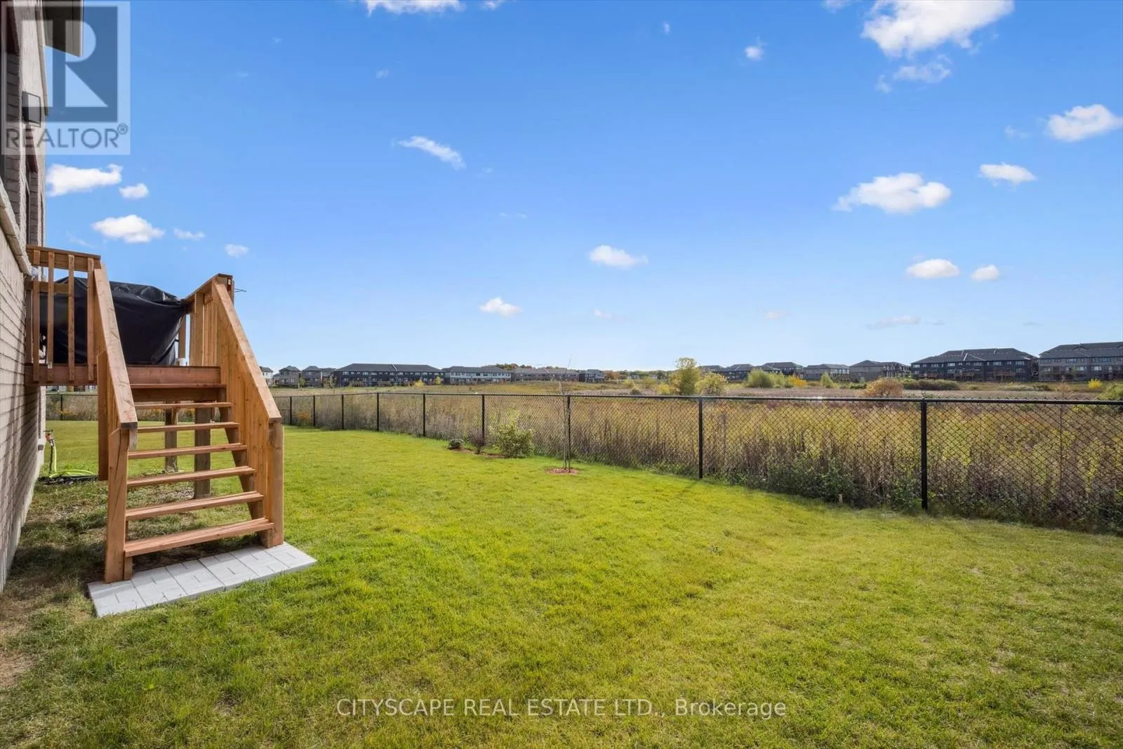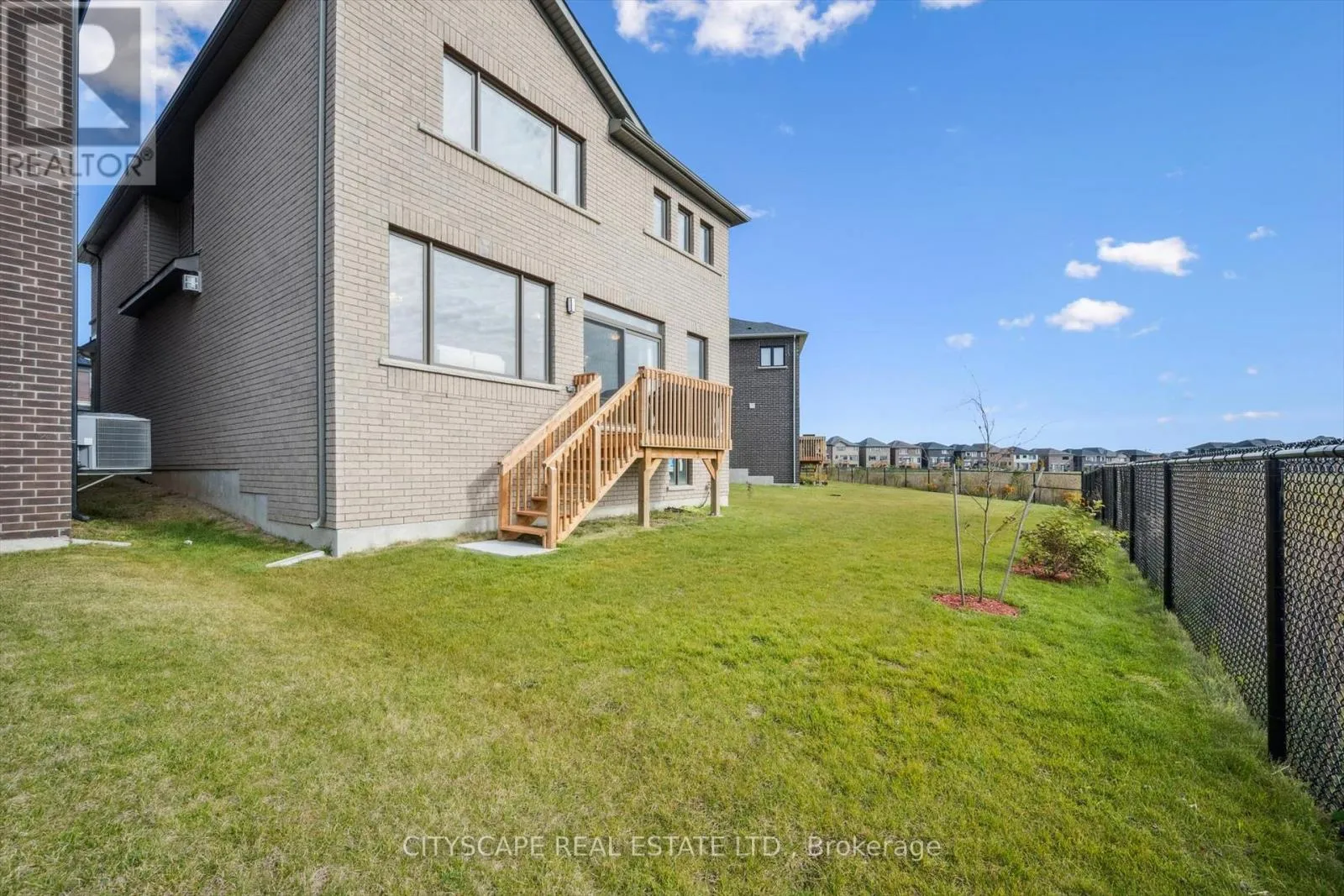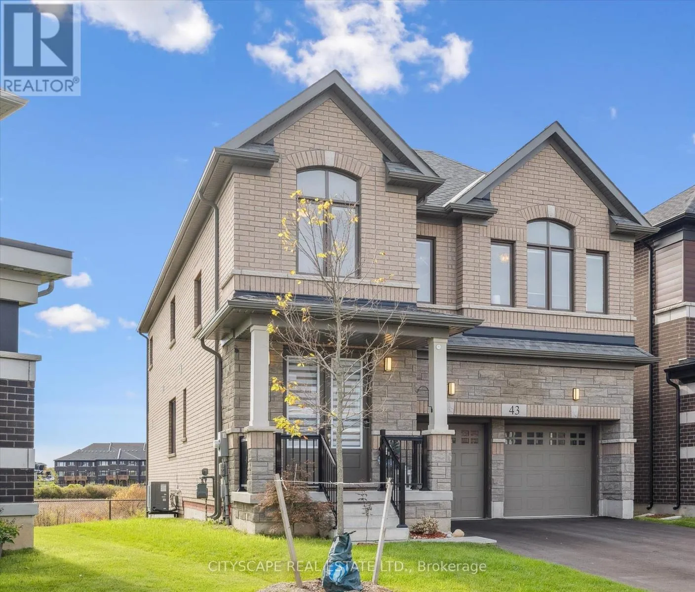 Newman Drive This exquisite, nearly new two-year-old detached residence showcases exceptional craftsmanship, thoughtful upgrades, and modern elegance throughout. Meticulously maintained, the 5-bedroom home is perfectly positioned on a premium pond-backing lot in one of Cambridge's most sought-after neighbourhoods. The property features an oversized backyard that opens directly onto tranquil green space, offering breathtaking permanent views and ultimate privacy. Step inside to a bright, open-concept main floor designed for contemporary family living. The inviting living room features a cozy fireplace and large windows that flood the space with natural light, creating a warm and welcoming ambience. The main level also includes a spacious library, a formal dining area, and a Selba designer kitchen - a true chef's delight - complete with a large island, quartz counter tops, upgraded backslash, Bosch gas cook top, built-in oven and microwave, Garburator, and sleek custom cabinetry. Elegant finishes continue throughout, highlighted by smooth ceilings, hardwood flooring, and a custom oak staircase with a titanium stain. Upstairs, the second floor features soft carpeting and a luxurious primary suite with a generous walk-in closet and a spa-inspired 5-piece en- suite showcasing a freestanding tub and glass shower. Modern conveniences include a high-efficiency heat pump, General Aire air cleaner, electric car charging point, and a BBQ gas line. The unfinished basement with a rough-in offers excellent potential for future customization. Located minutes from Conestoga College and Highway 401, this remarkable home combines style, comfort, and convenience in a premium setting. Don't miss your chance to own this move-in ready residence loaded with builder upgrades and surrounded by nature's beauty. (id:27476)