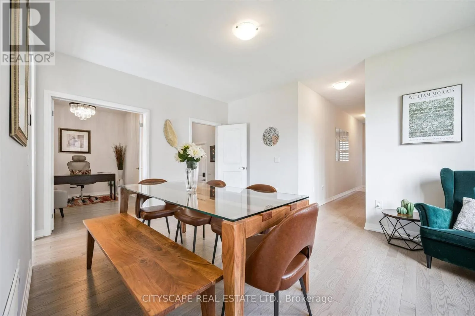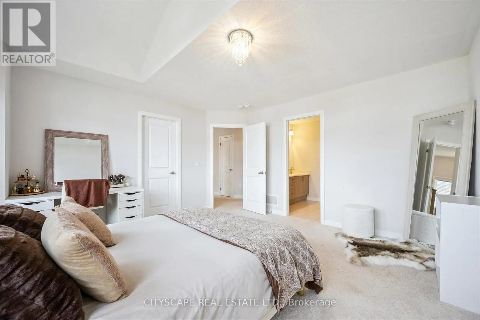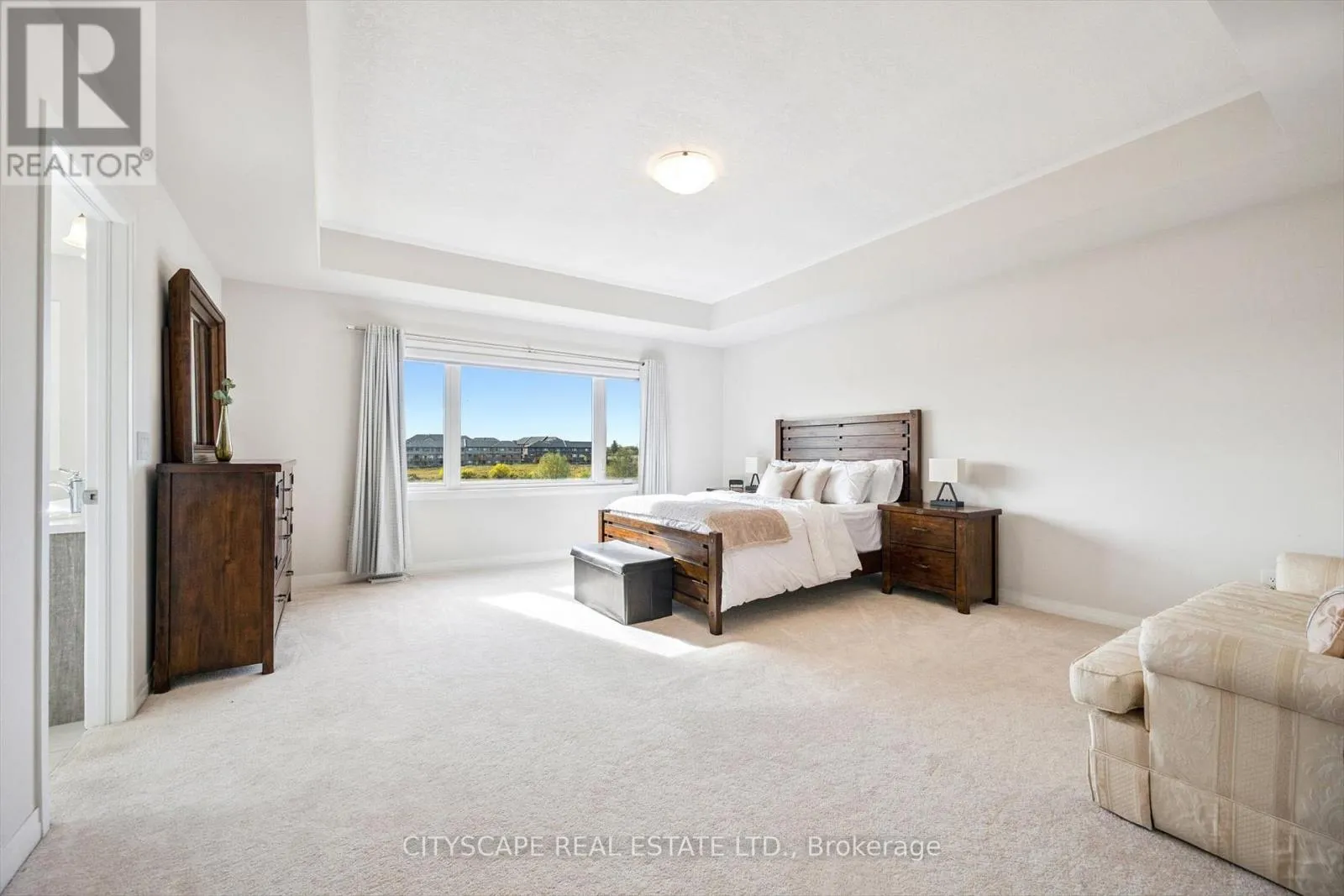 Newman Drive This exquisite, nearly new two-year-old detached residence showcases exceptional craftsmanship, thoughtful upgrades, and modern elegance throughout. Meticulously maintained, the 5-bedroom home is perfectly positioned on a premium pond-backing lot in one of Cambridge's most sought-after neighbourhoods. The property features an oversized backyard that opens directly onto tranquil green space, offering breathtaking permanent views and ultimate privacy. Step inside to a bright, open-concept main floor designed for contemporary family living. The inviting living room features a cozy fireplace and large windows that flood the space with natural light, creating a warm and welcoming ambience. The main level also includes a spacious library, a formal dining area, and a Selba designer kitchen - a true chef's delight - complete with a large island, quartz counter tops, upgraded backslash, Bosch gas cook top, built-in oven and microwave, Garburator, and sleek custom cabinetry. Elegant finishes continue throughout, highlighted by smooth ceilings, hardwood flooring, and a custom oak staircase with a titanium stain. Upstairs, the second floor features soft carpeting and a luxurious primary suite with a generous walk-in closet and a spa-inspired 5-piece en- suite showcasing a freestanding tub and glass shower. Modern conveniences include a high-efficiency heat pump, General Aire air cleaner, electric car charging point, and a BBQ gas line. The unfinished basement with a rough-in offers excellent potential for future customization. Located minutes from Conestoga College and Highway 401, this remarkable home combines style, comfort, and convenience in a premium setting. Don't miss your chance to own this move-in ready residence loaded with builder upgrades and surrounded by nature's beauty. (id:27476)