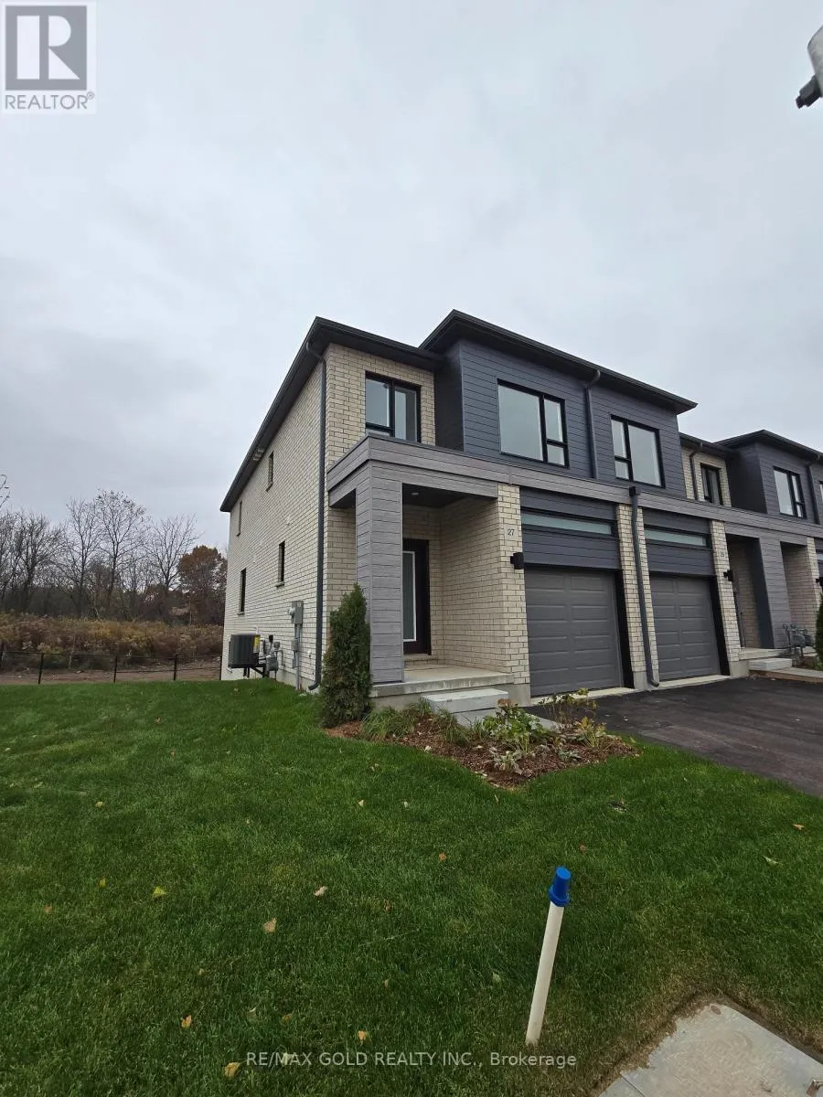 Cross Streets: BLENHEIM RD TO QUEENSBROOK CRES. ** Directions: BLENHEIM RD. Brand New Never Lived In, End Unit Townhouse, Feel Like Semi-Detached. Finished Walk Out Basement With 3 Piece Bathroom, Almost 1700 sq ft. Filled with natural light throughout. This open-concept main floor features a updated kitchen with a central island perfect for entertaining or family meals. Upstairs, you'll find a Large Master Bedroom with big windows a full en-suite bathroom and a walk-in closet. Two additional well-sized bedrooms and a convenient second-floor laundry complete the upper level. Ideally situated close to Highway 401, top-rated schools, shopping malls, and other major amenities.. (id:27476)