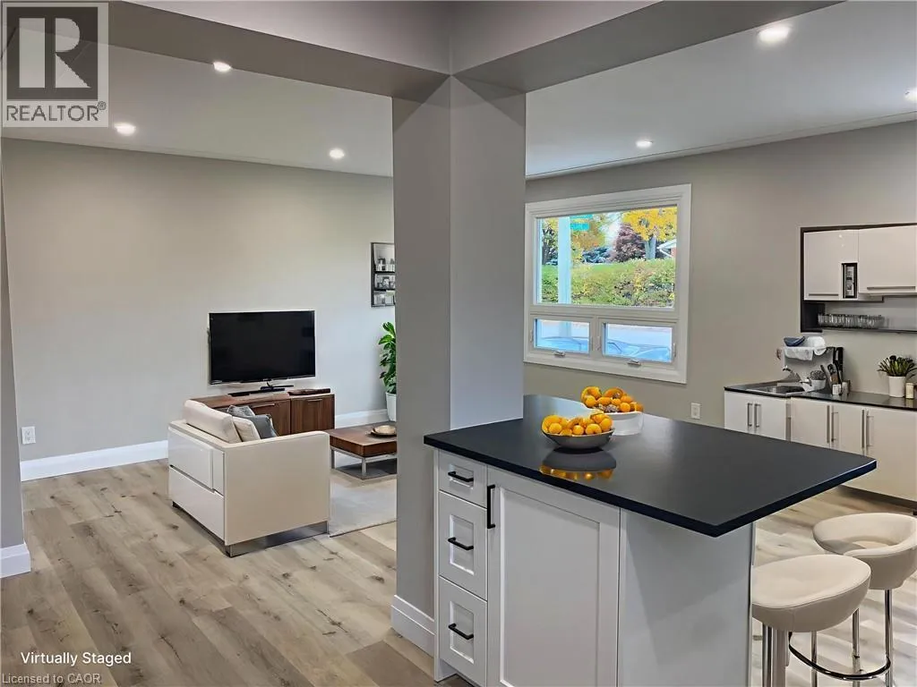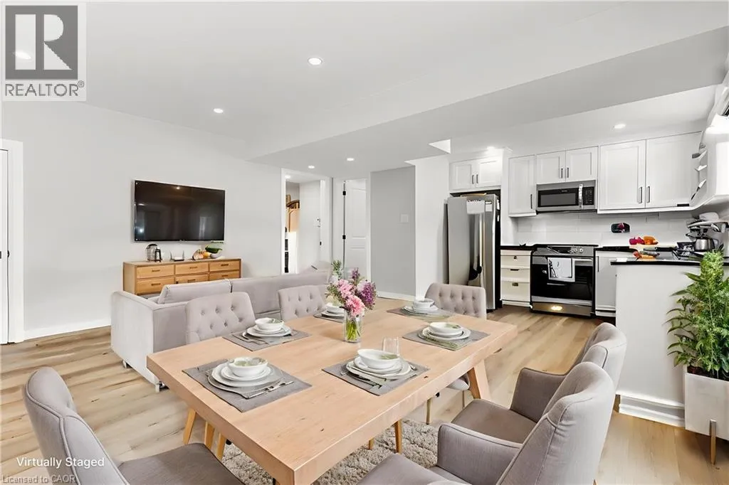 KING ST. E. TO MONTROSE ST. TO BERNHARDT ST. This fully updated property offers exceptional versatility and modern living. Featuring two kitchens and two private entrances, the home is thoughtfully designed for multi-generational living or income potential. The upper level includes 3 spacious bedrooms, while the fully finished walkout basement offers an additional 2 bedrooms. Highlights include: Complete renovation within the last 2 years: new kitchens, flooring, plumbing, electrical, windows, roof, lighting, and stainless steel appliances. Both units contain their own separate laundry with separate utilities for each unit and independent heating and cooling. (Landlord responsibility limited to water.) Private driveway with parking for up to 4 vehicles. Large backyard and direct access to Prestonâs scenic Grand River walking trails. Currently this property stands VACANT and presents an excellent opportunity for first-time buyers seeking a mortgage helper. This home could also be converted back to a single family should the Buyer choose to do so. Flexible possession is available. (id:27476)